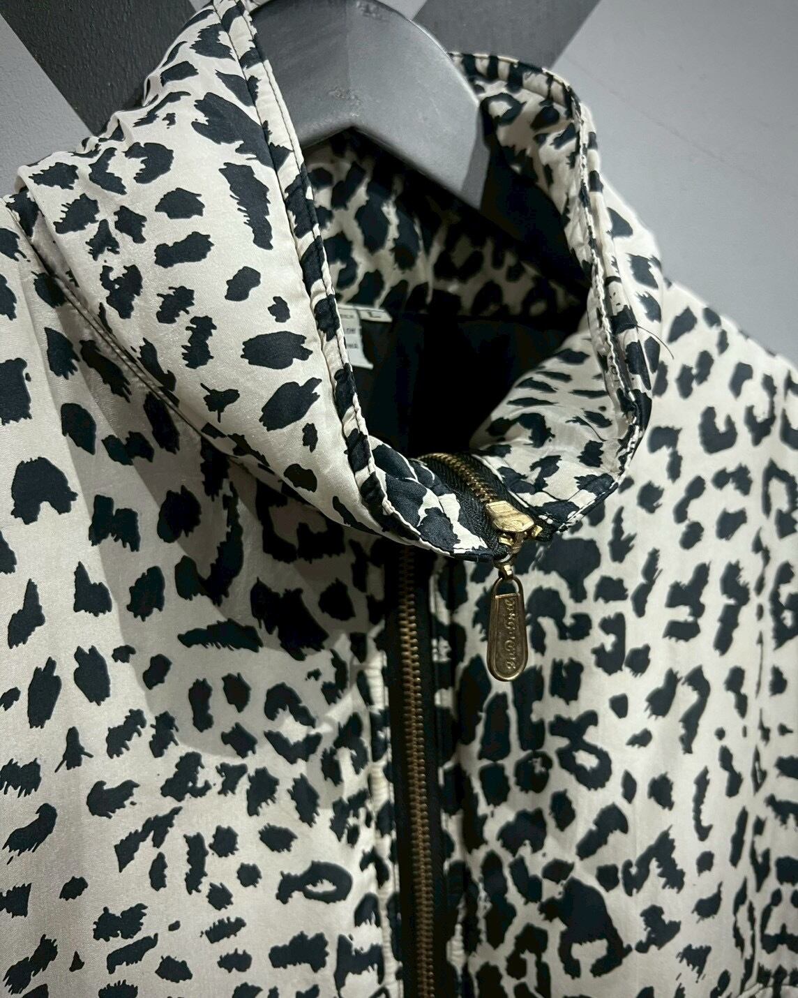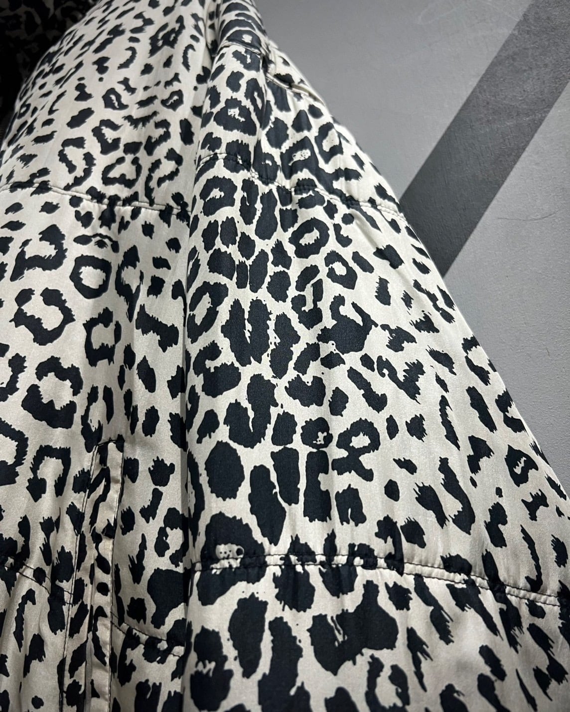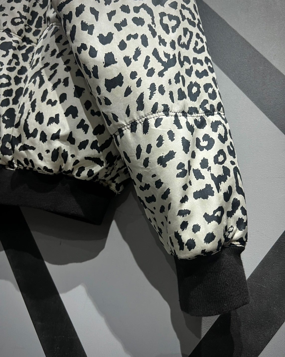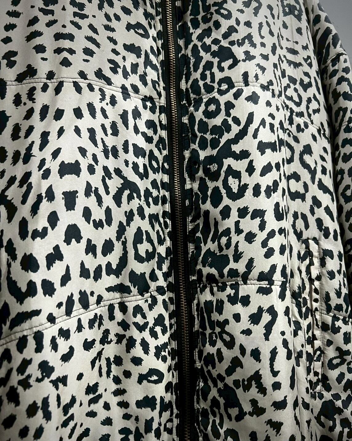 白のボディをベースに、レオパード柄をモノトーンで載せたシルクのジャケット。