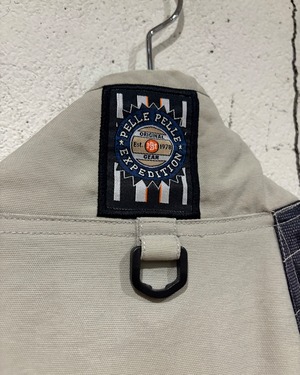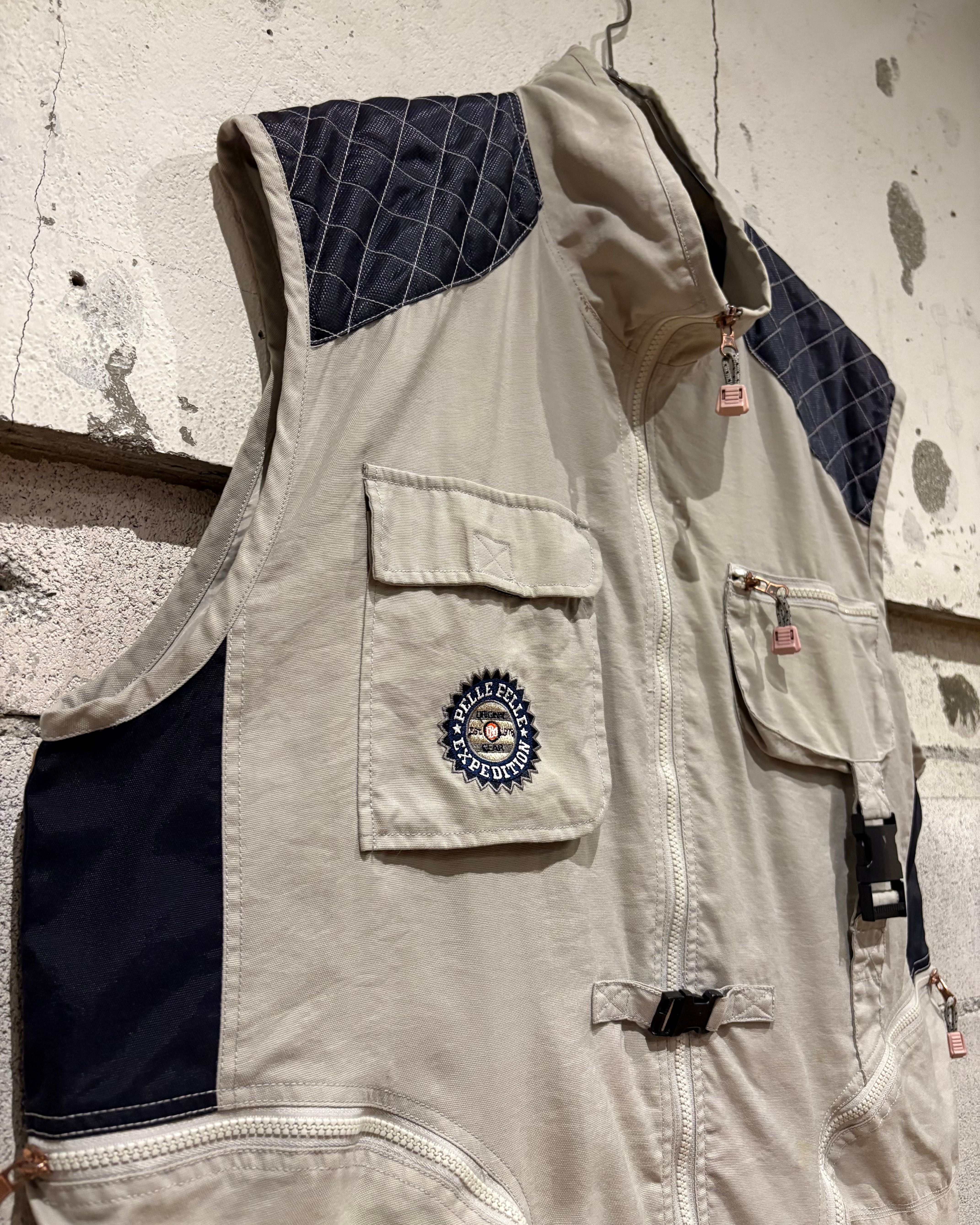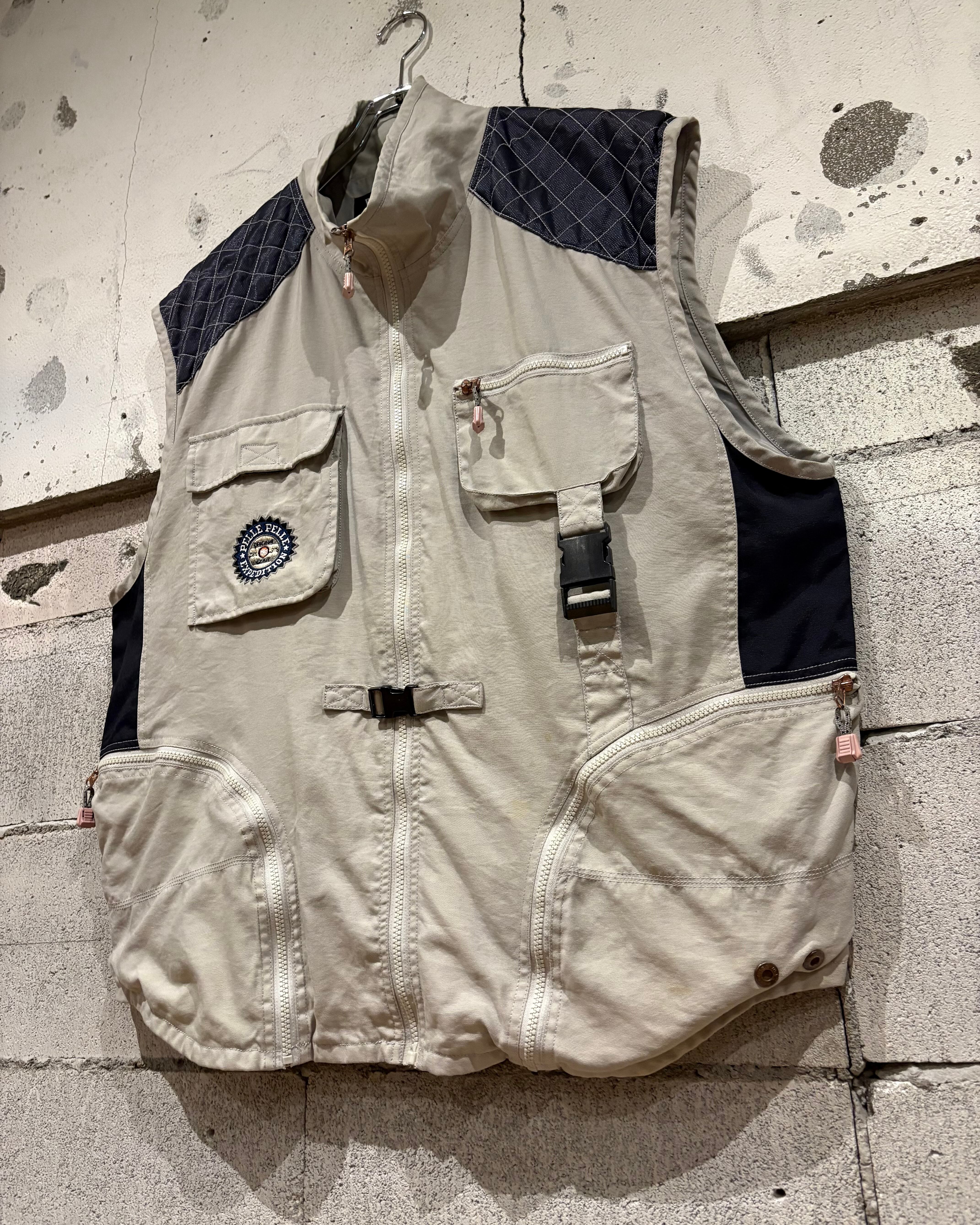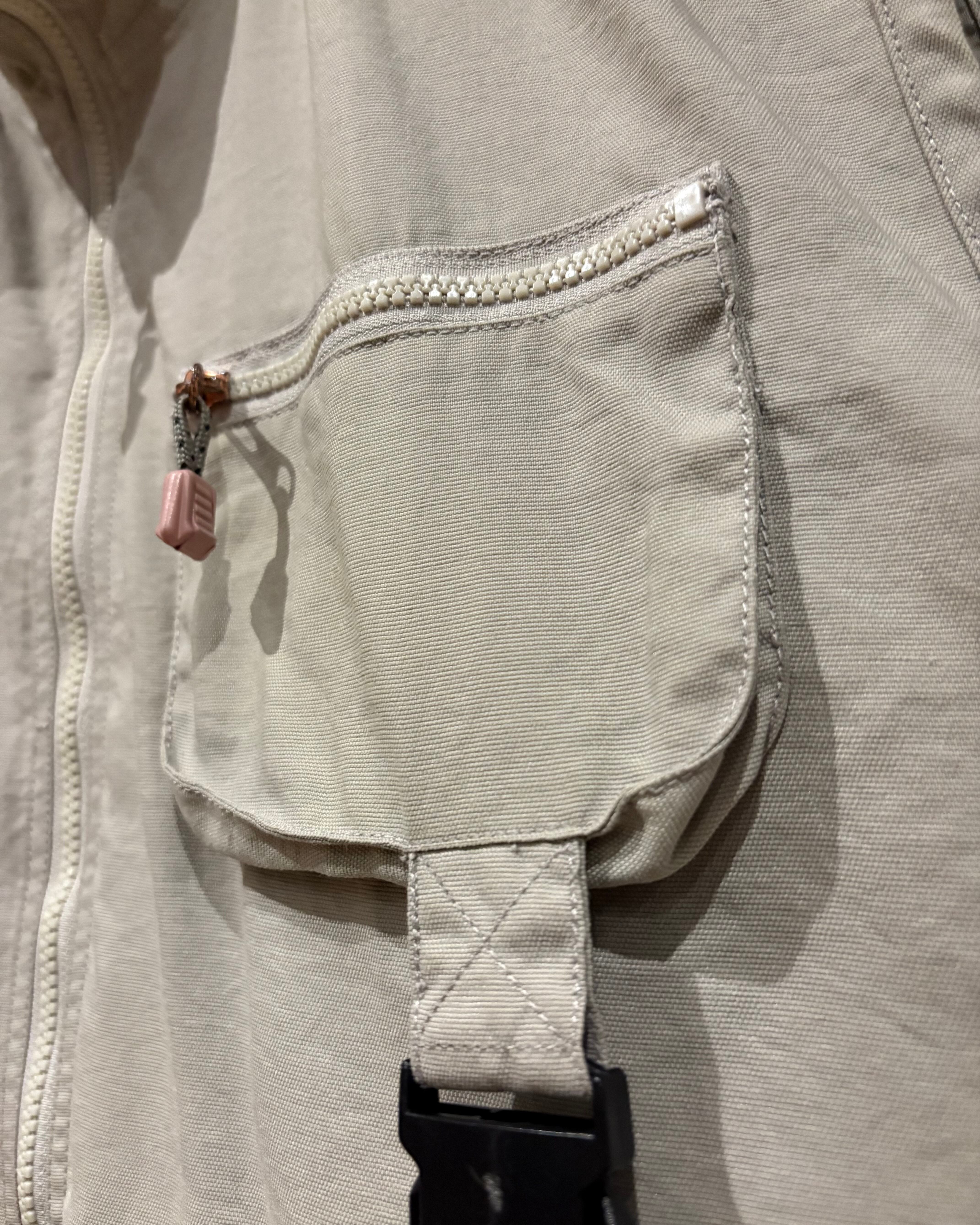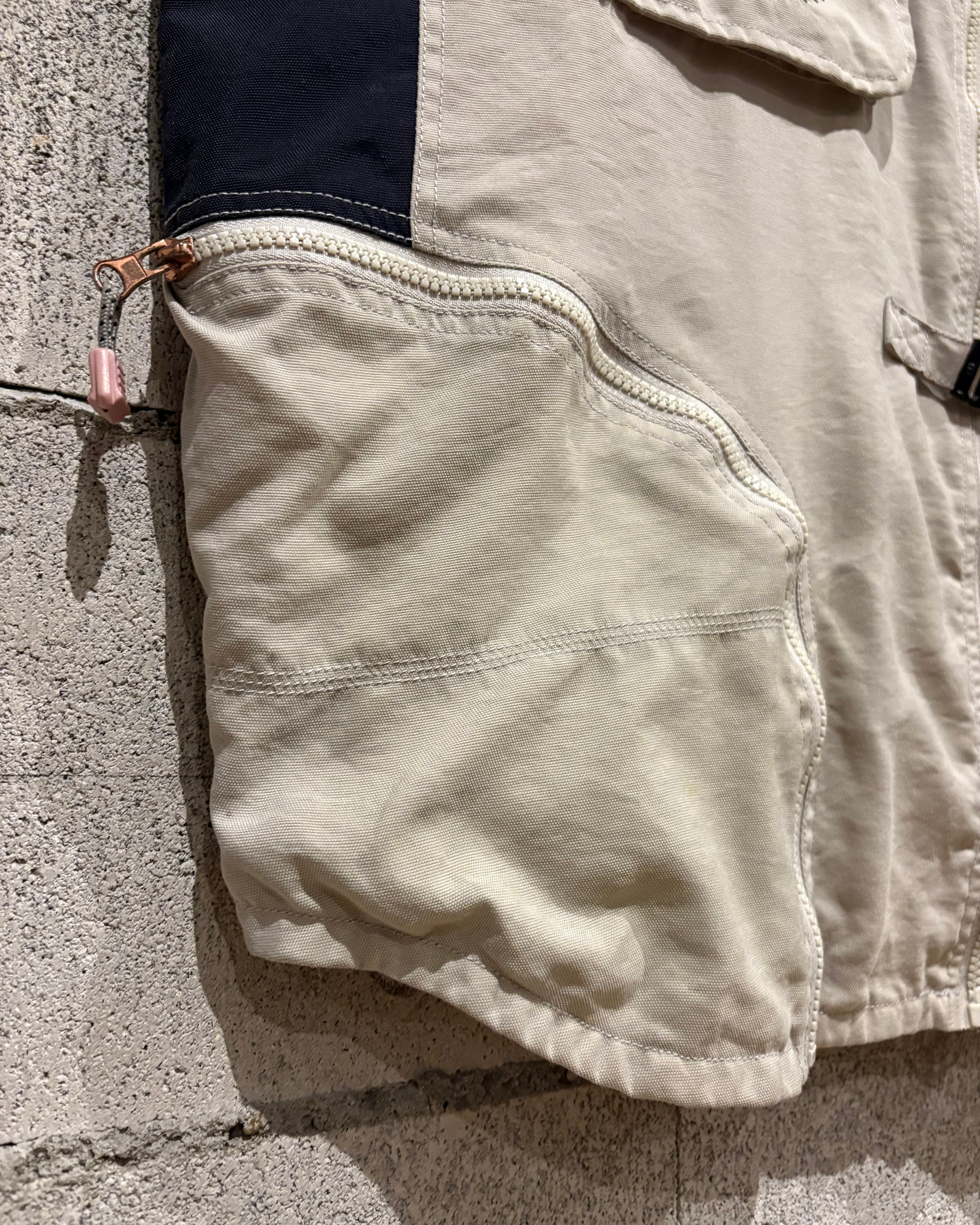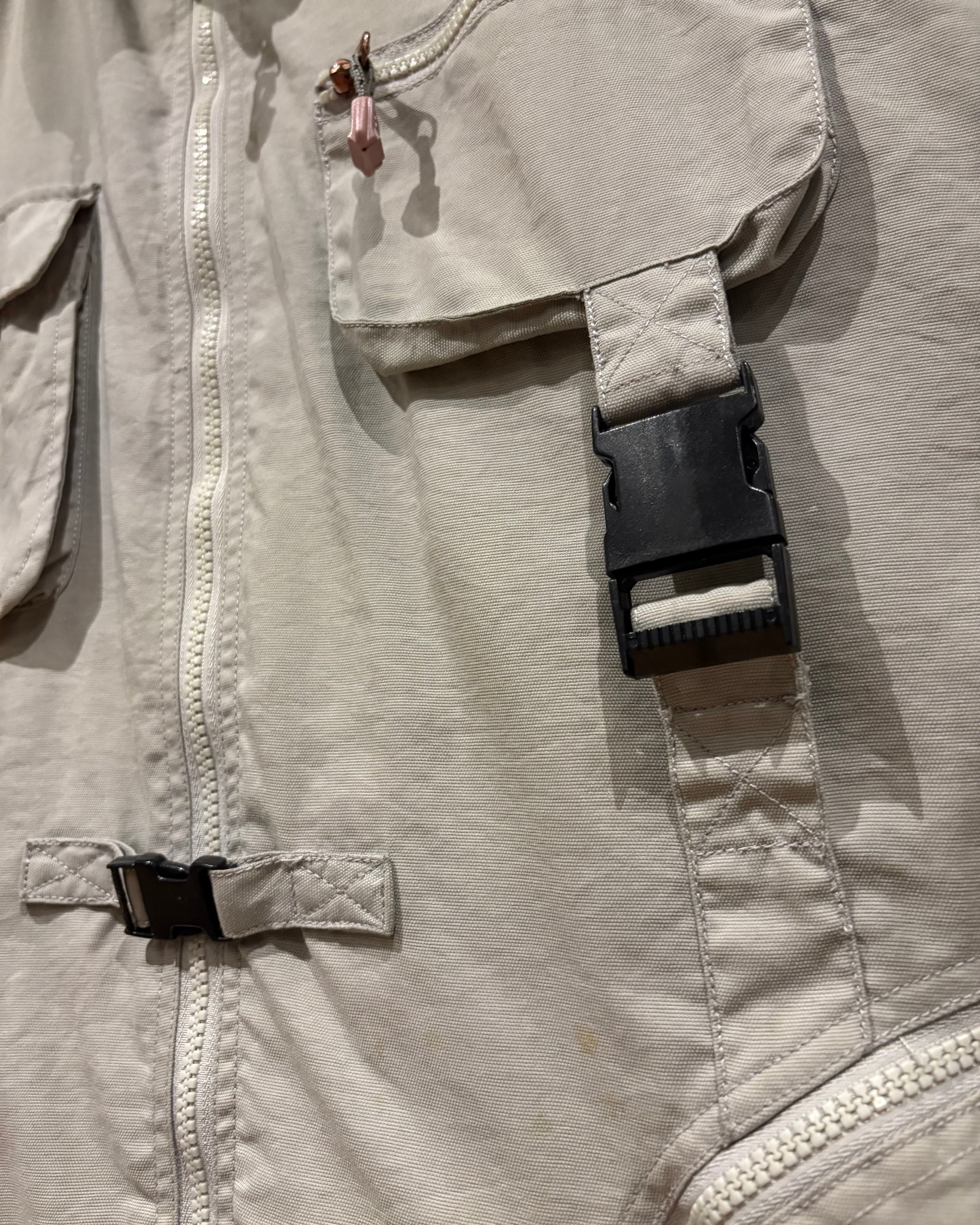 ベージュのボディに、ハンティングをモチーフにギミックを落とし込んだベスト。