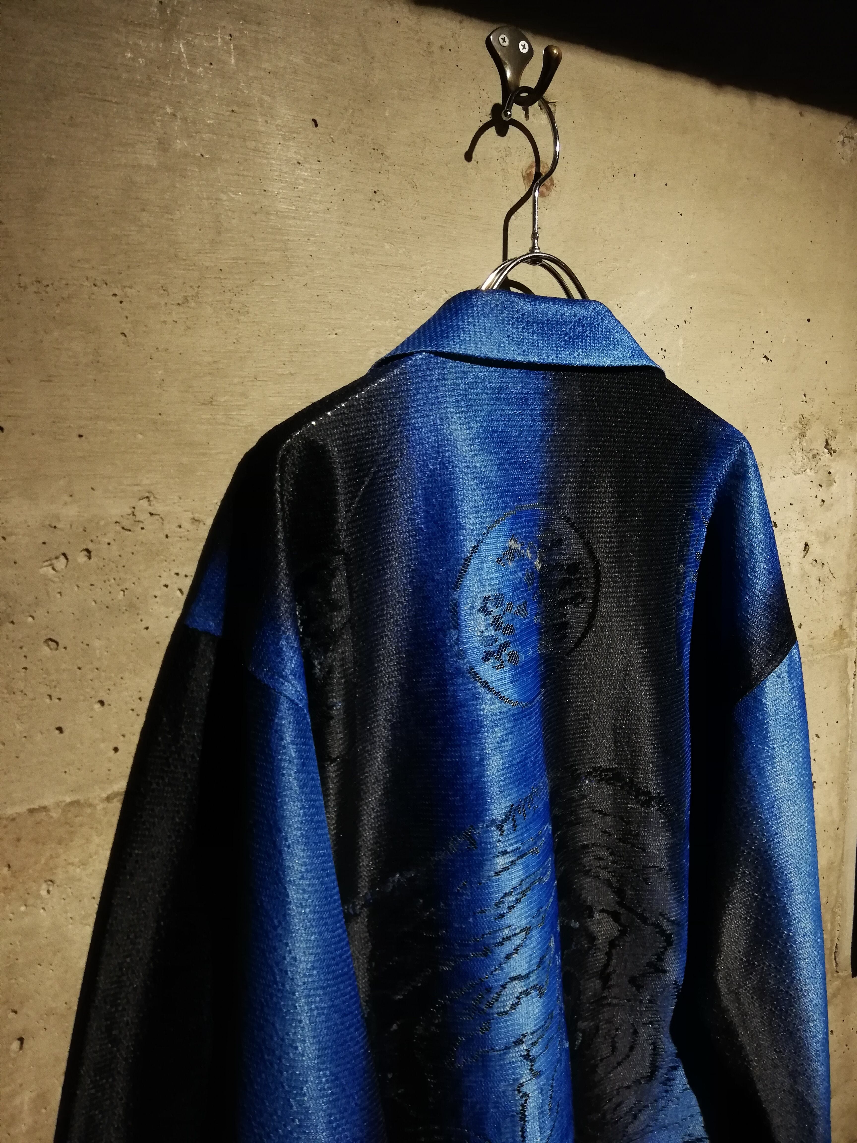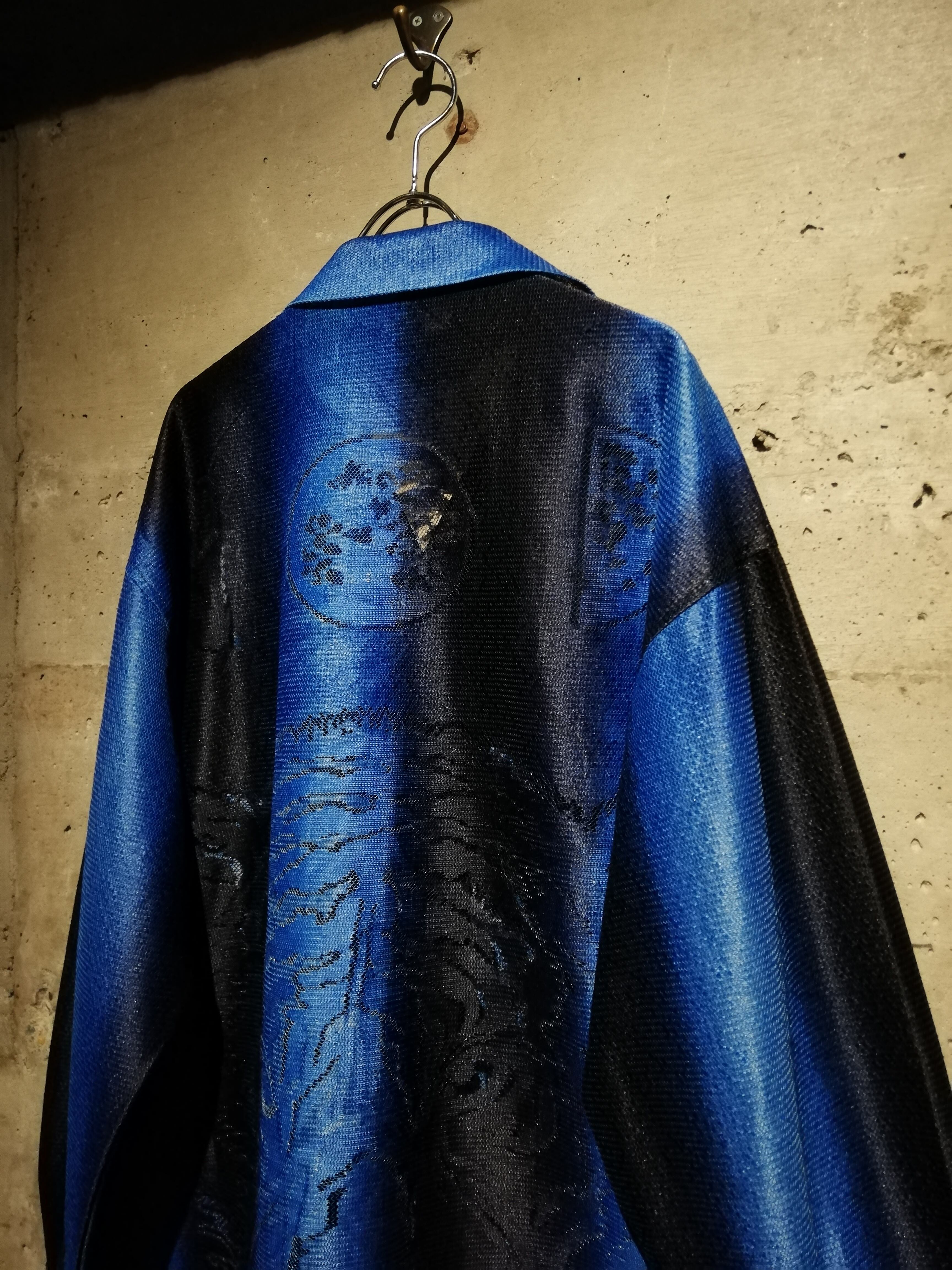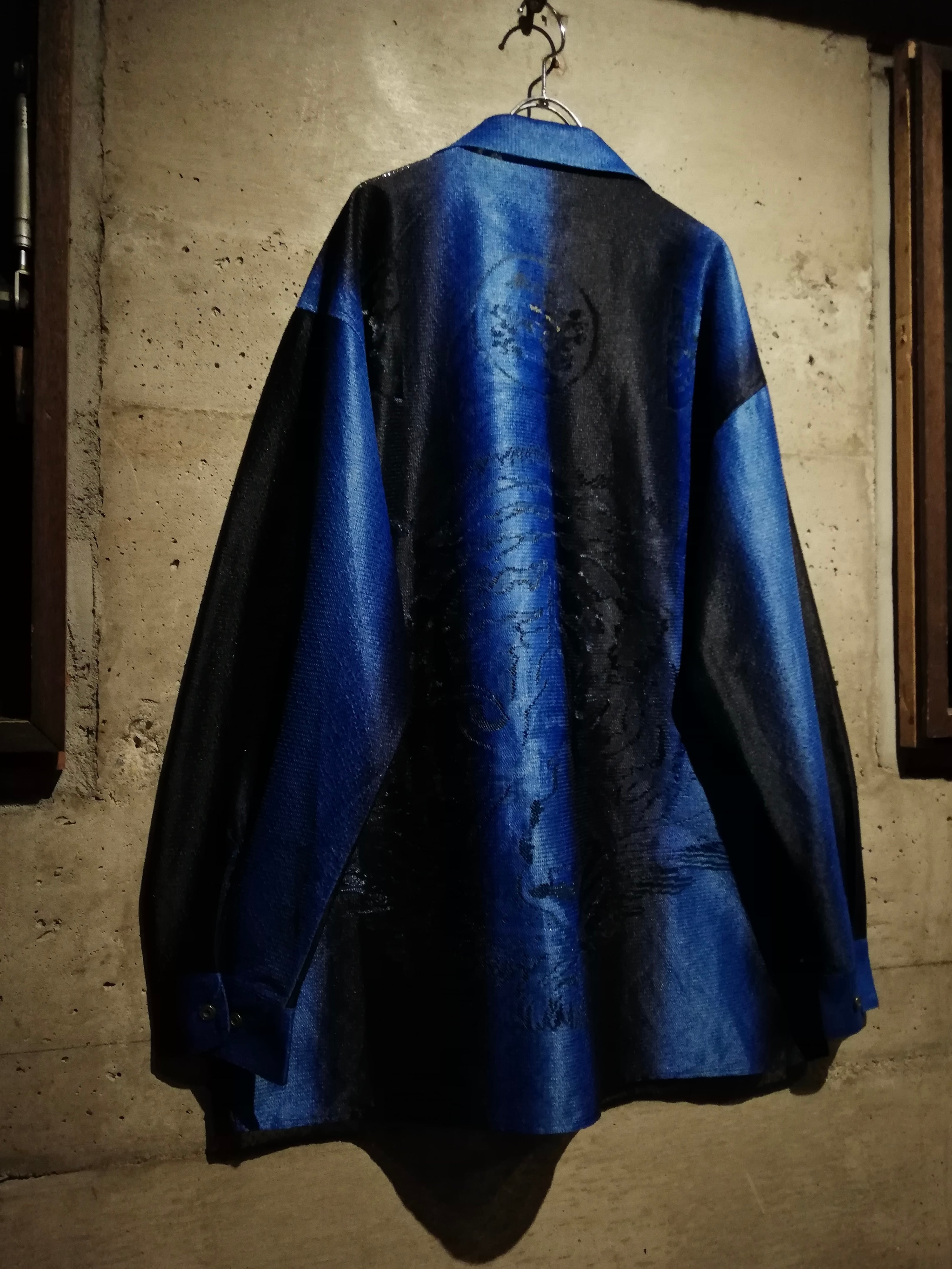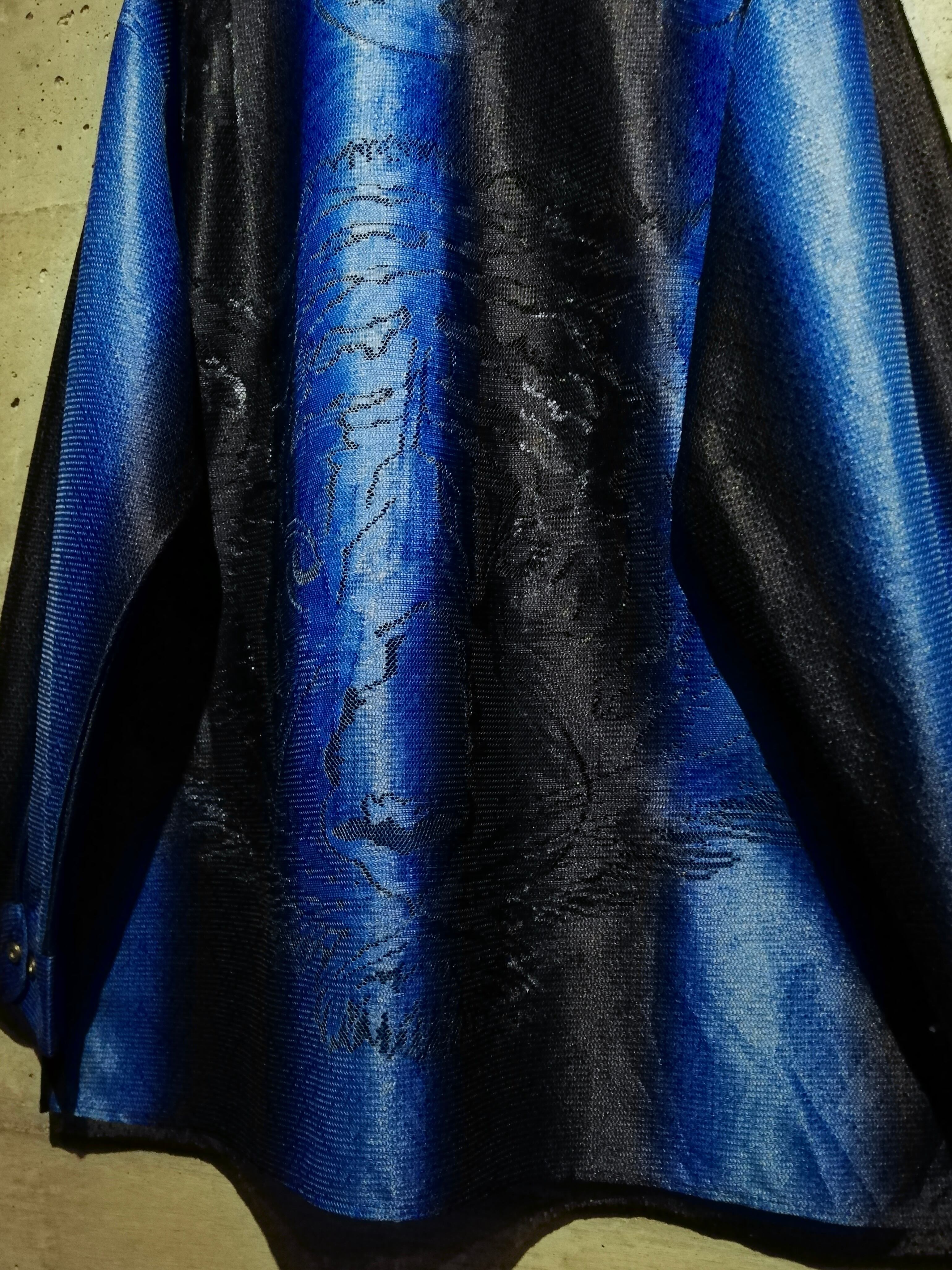 ブルー×ブラックのグラデーションと艶やかな光沢を放つメッシュボディに、虎のモチーフを織り込みデザインされたスペシャルな長袖シャツ。
