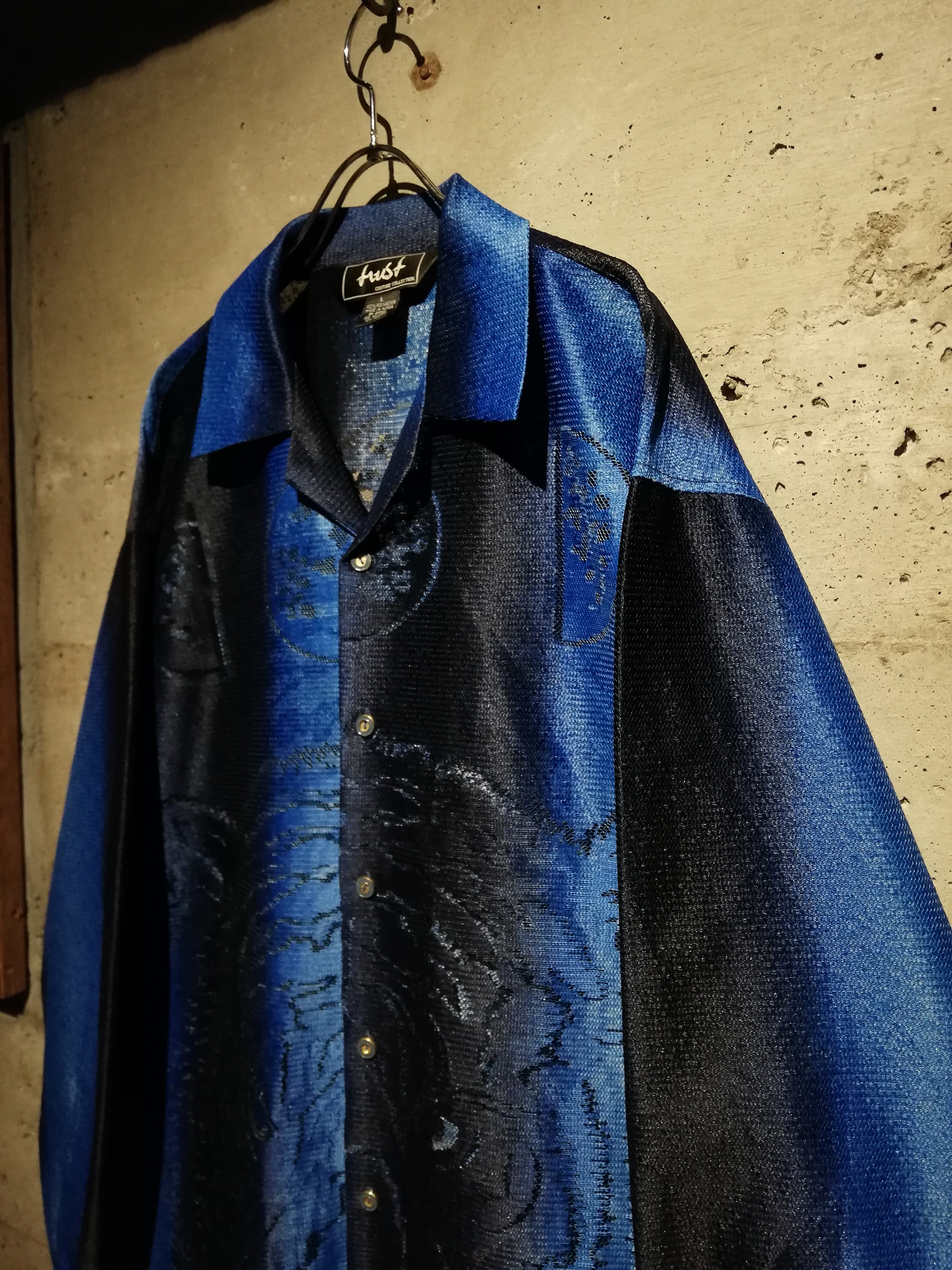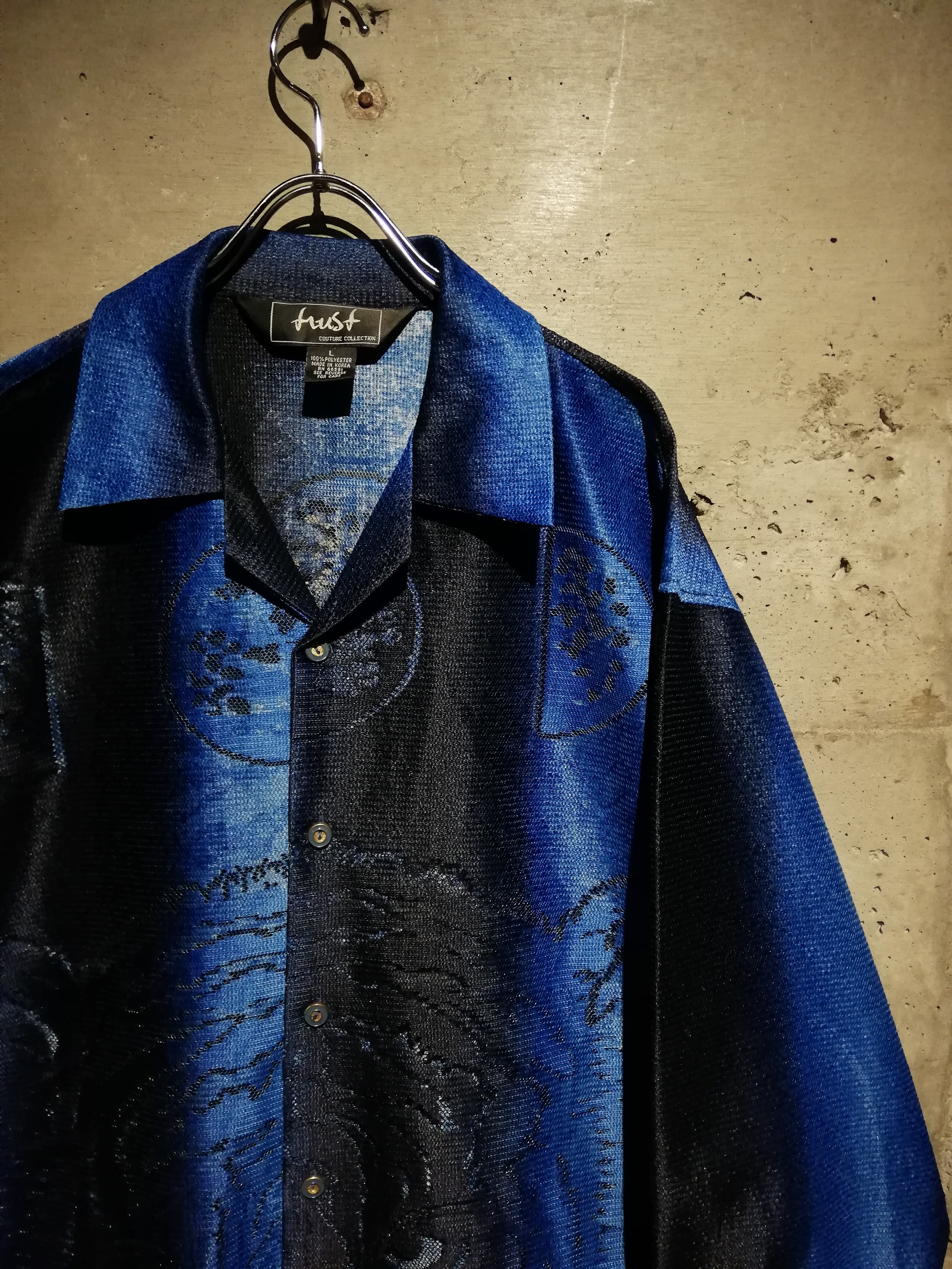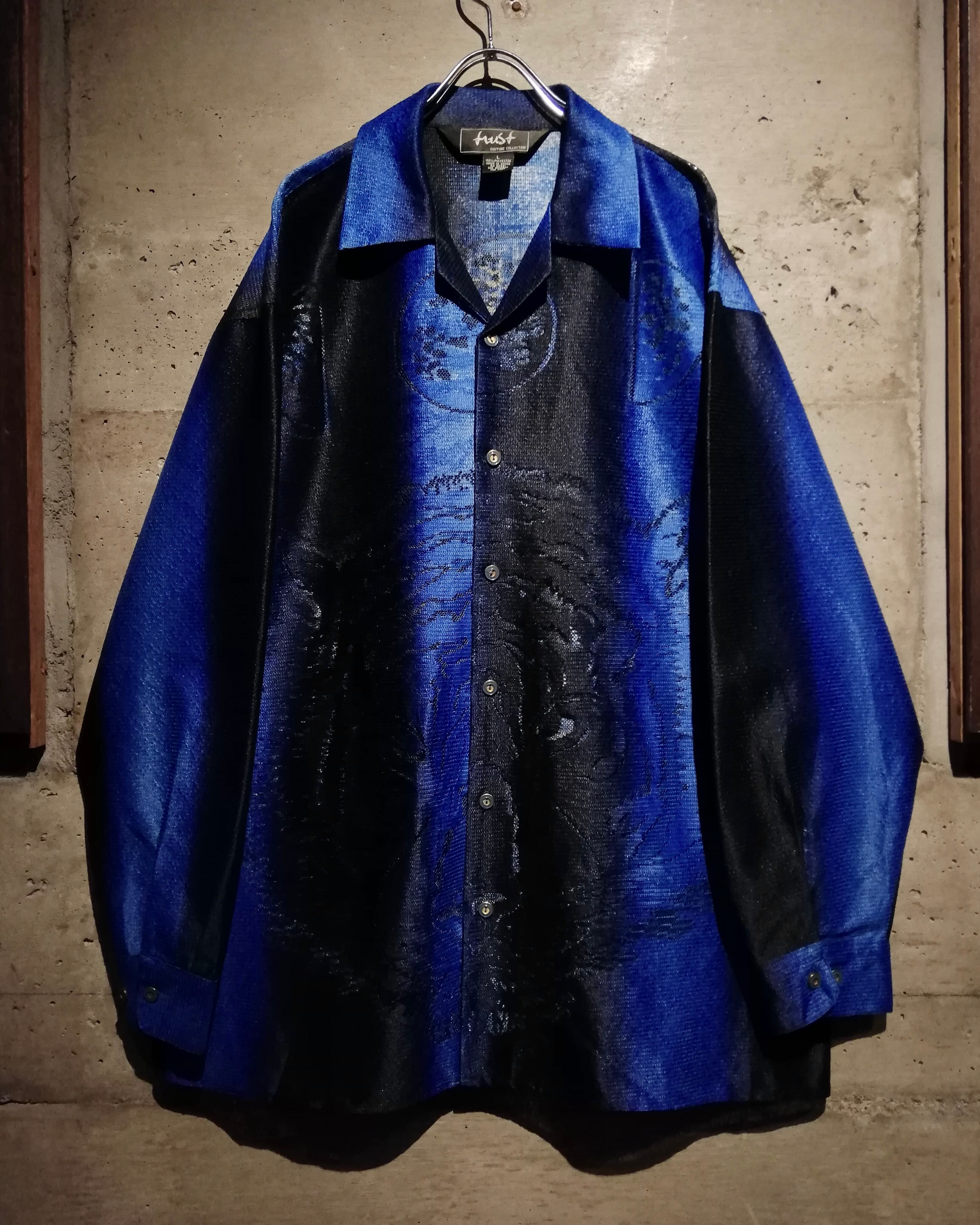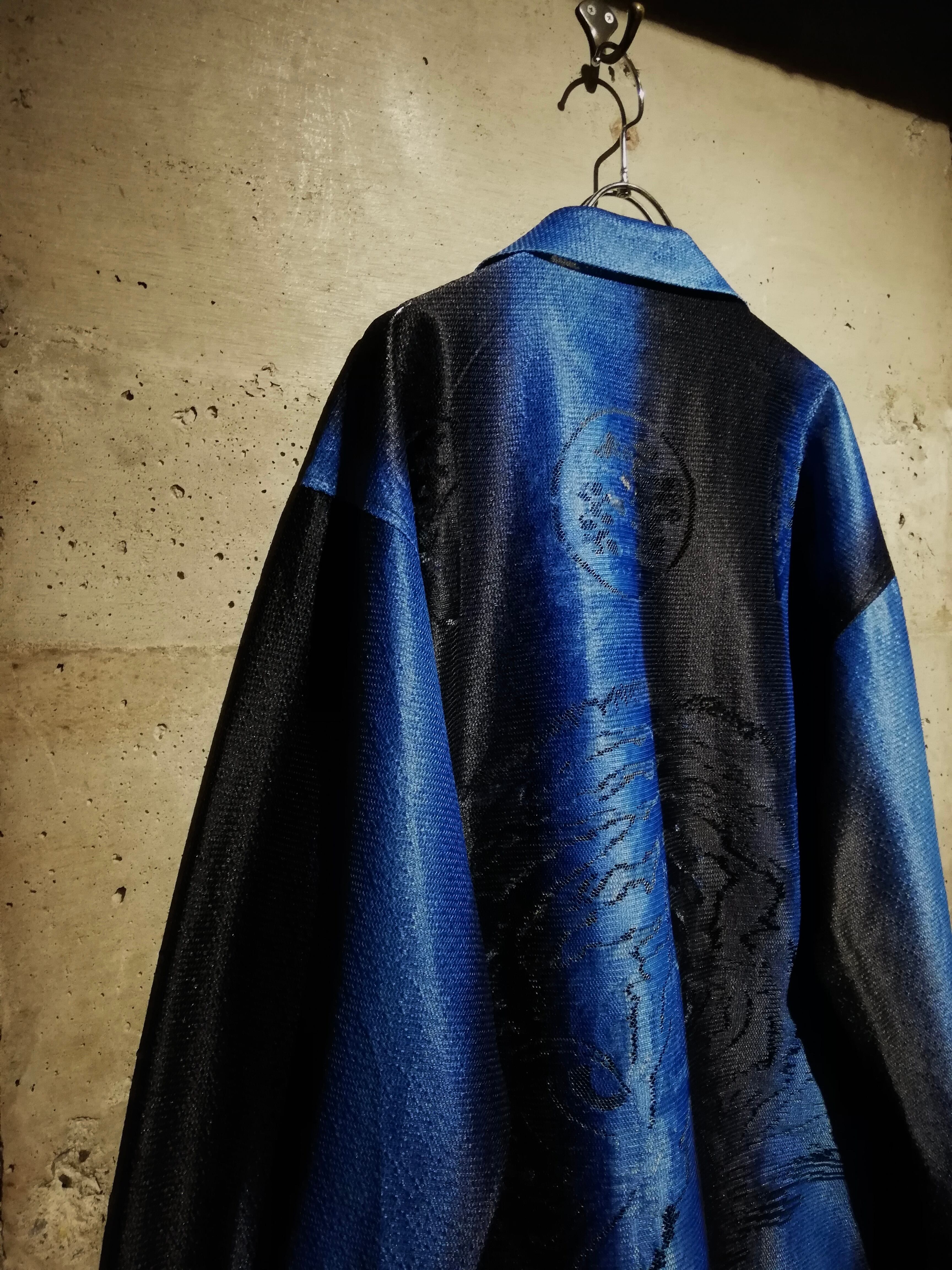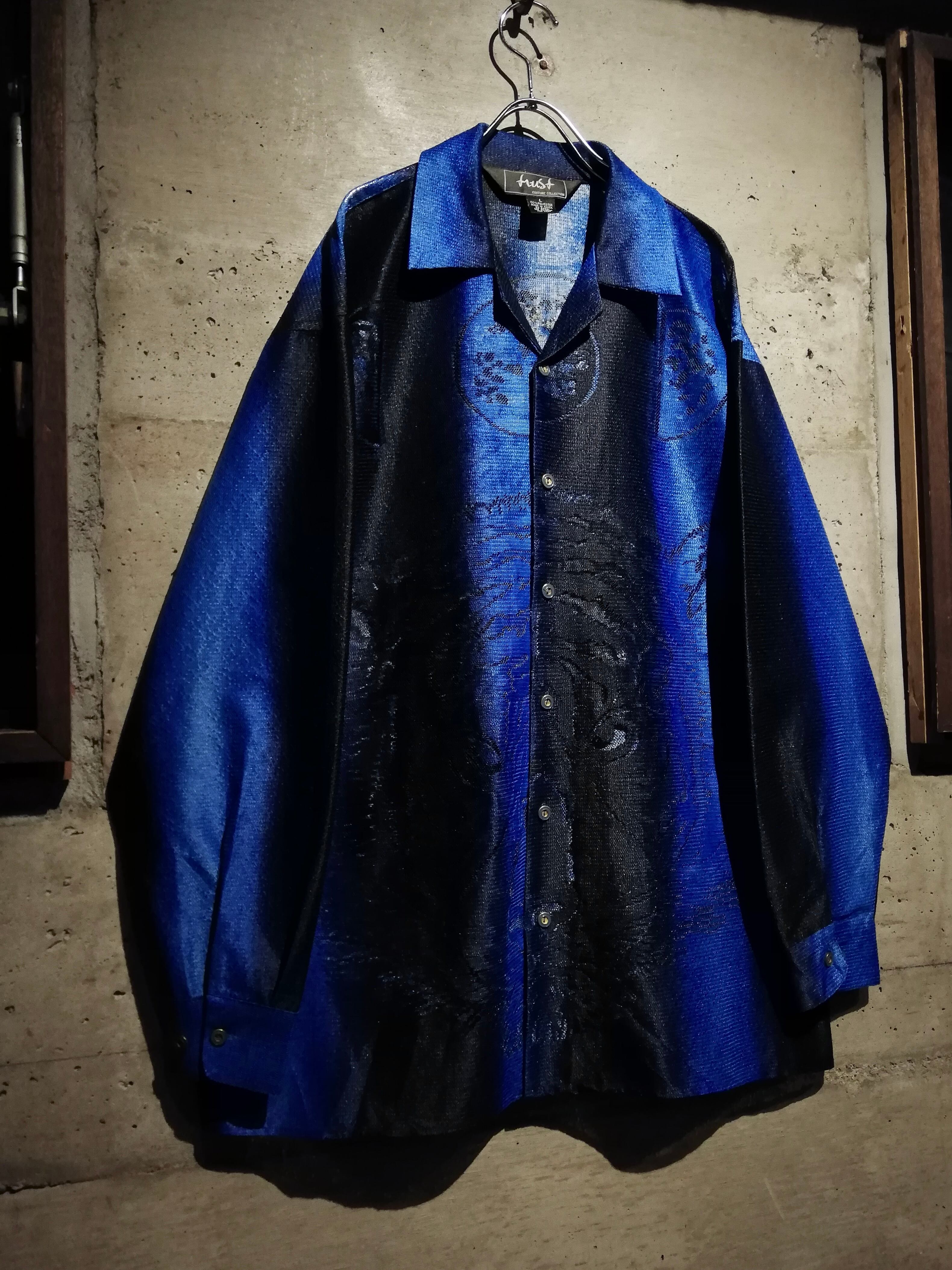 ブルー×ブラックのグラデーションと艶やかな光沢を放つメッシュボディに、虎のモチーフを織り込みデザインされたスペシャルな長袖シャツ。