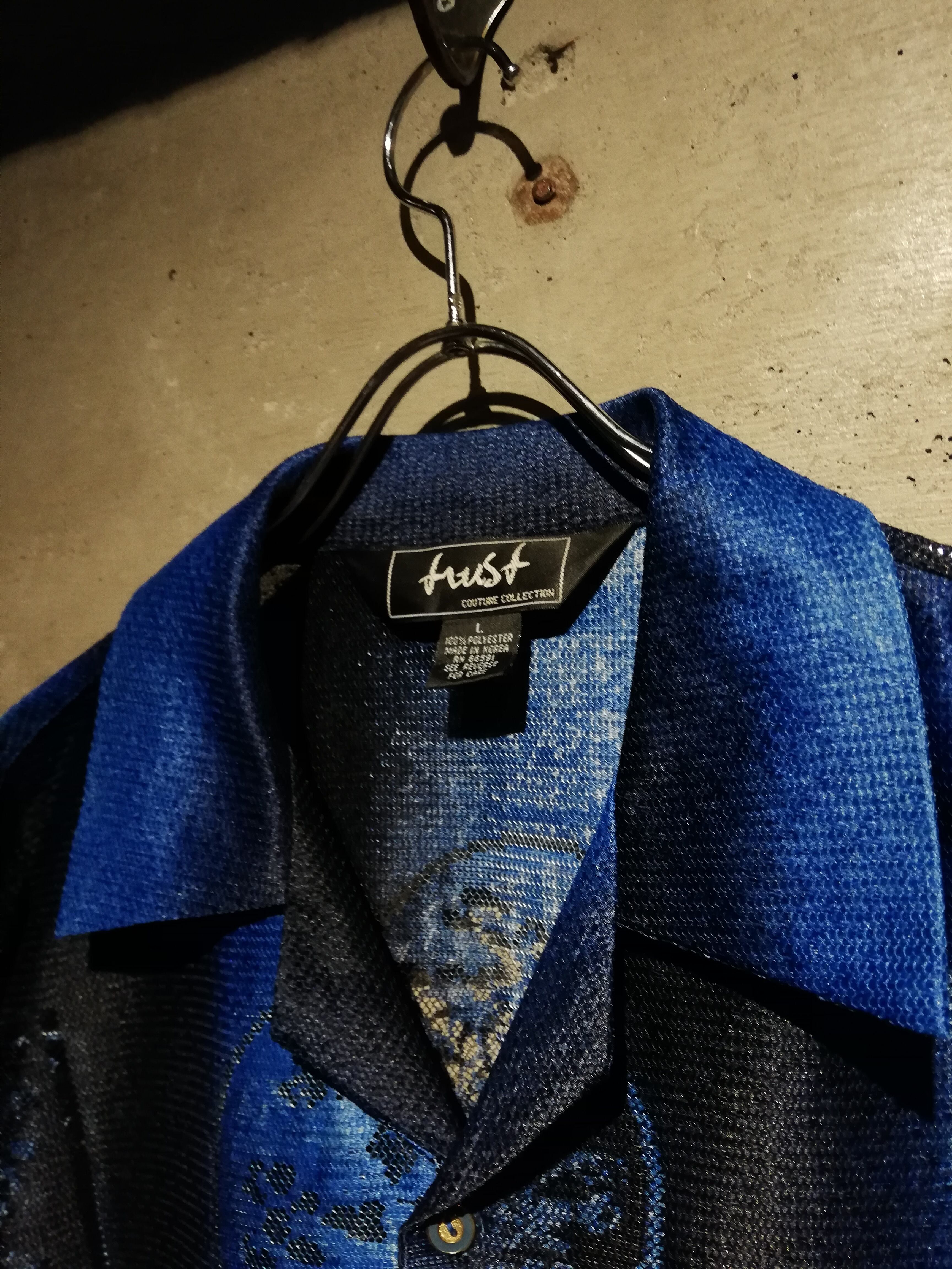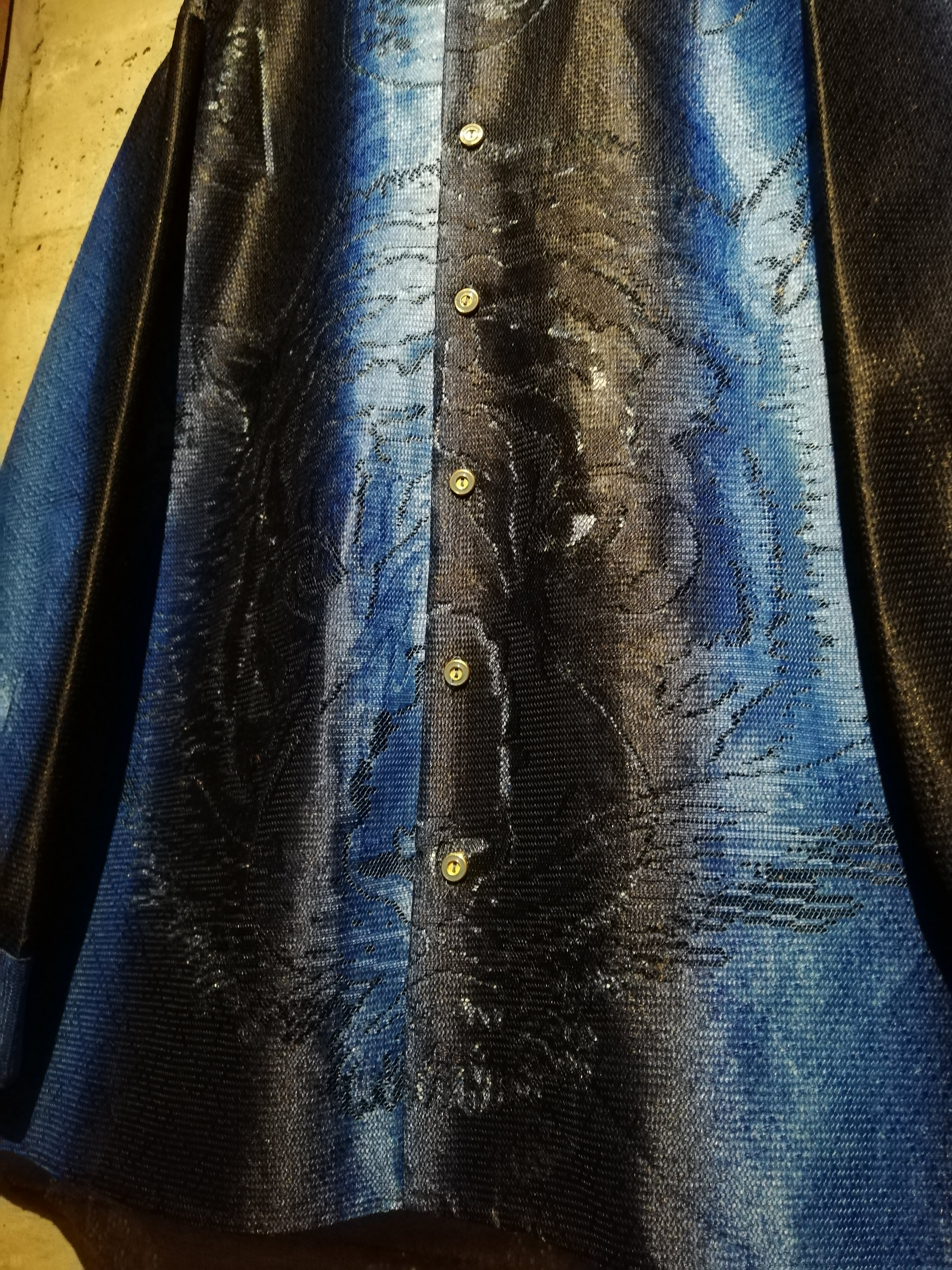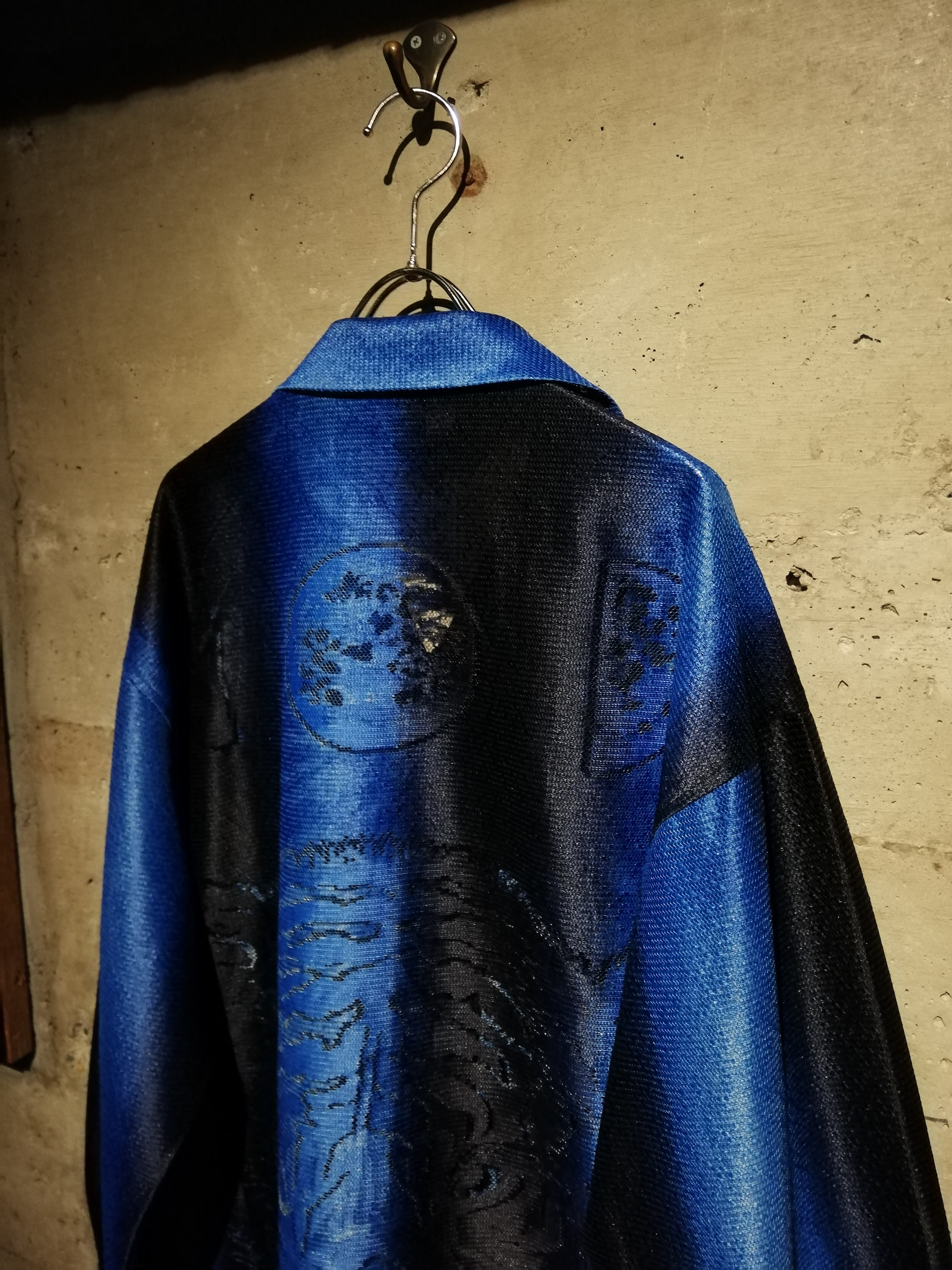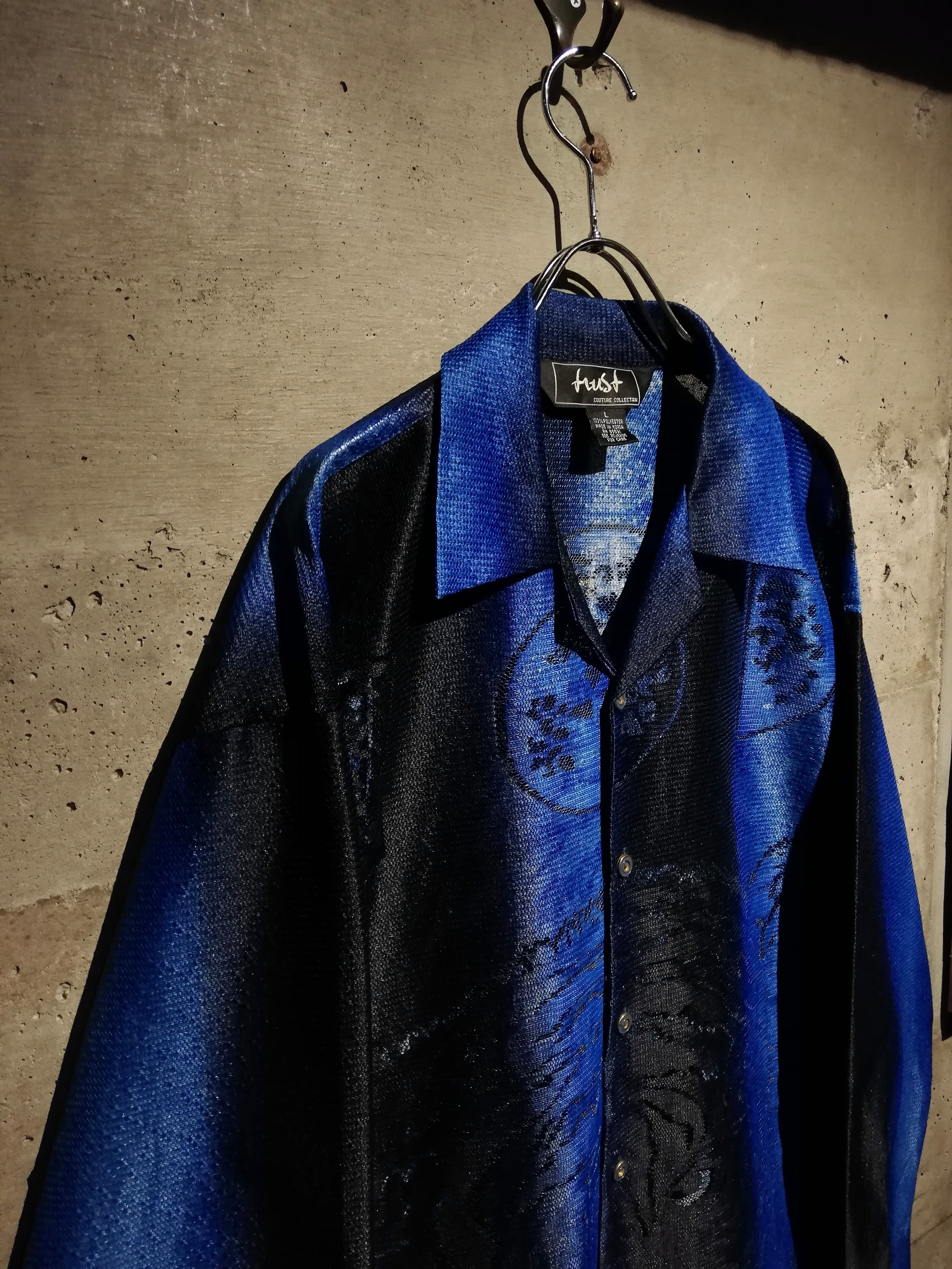 ブルー×ブラックのグラデーションと艶やかな光沢を放つメッシュボディに、虎のモチーフを織り込みデザインされたスペシャルな長袖シャツ。