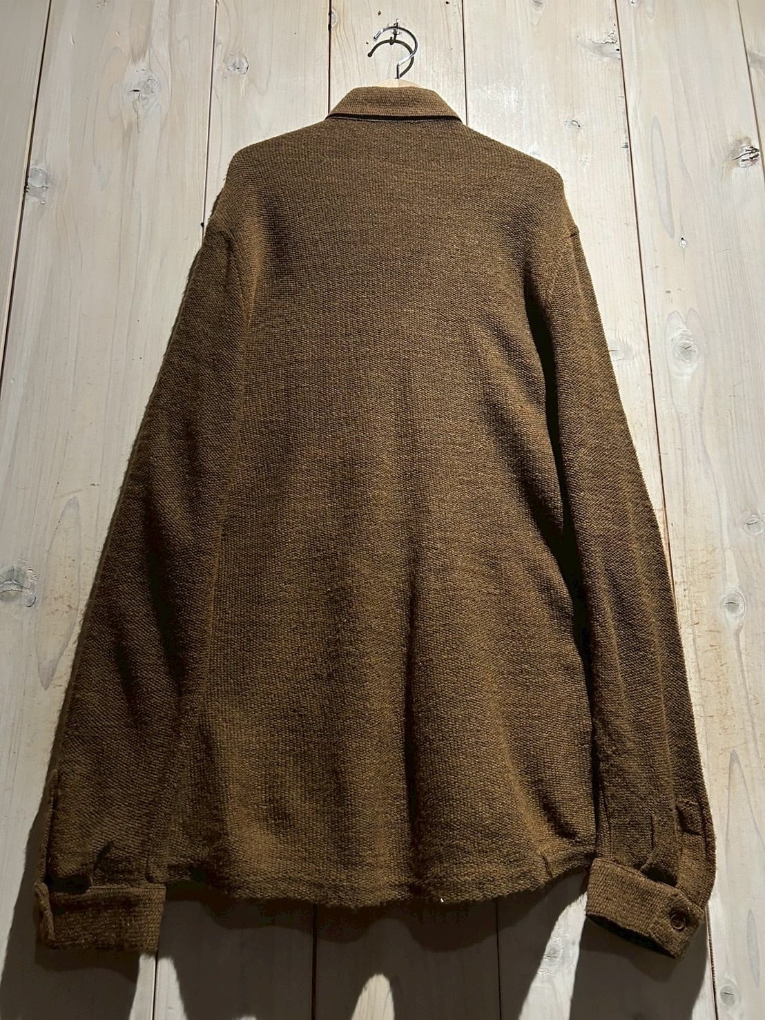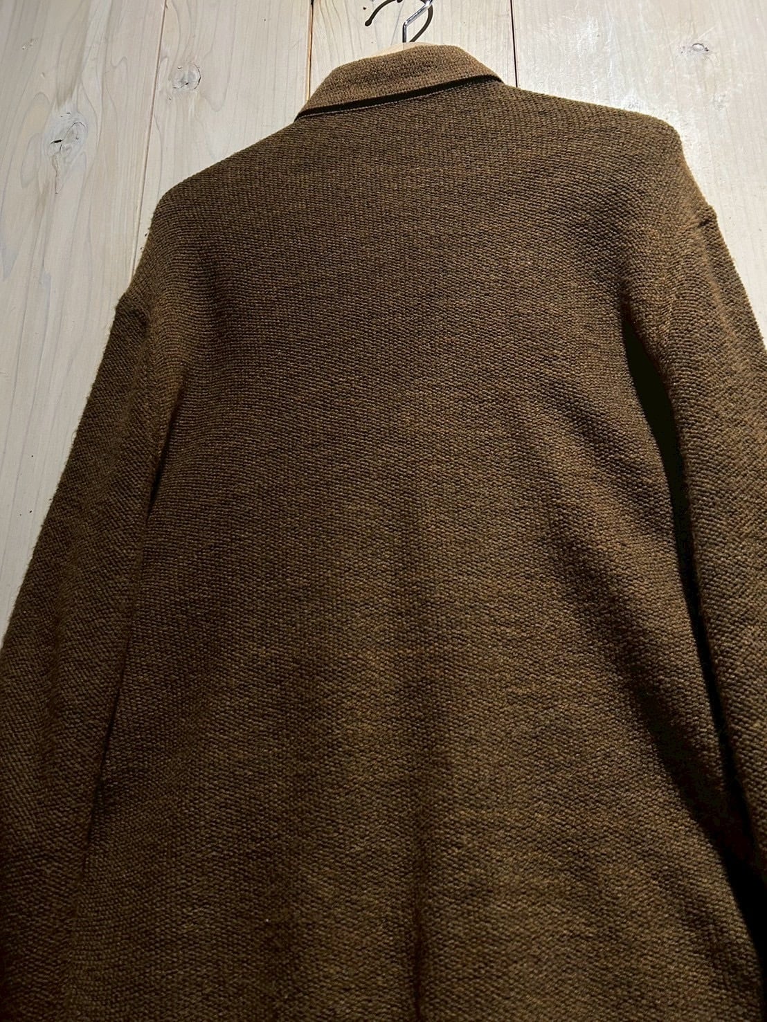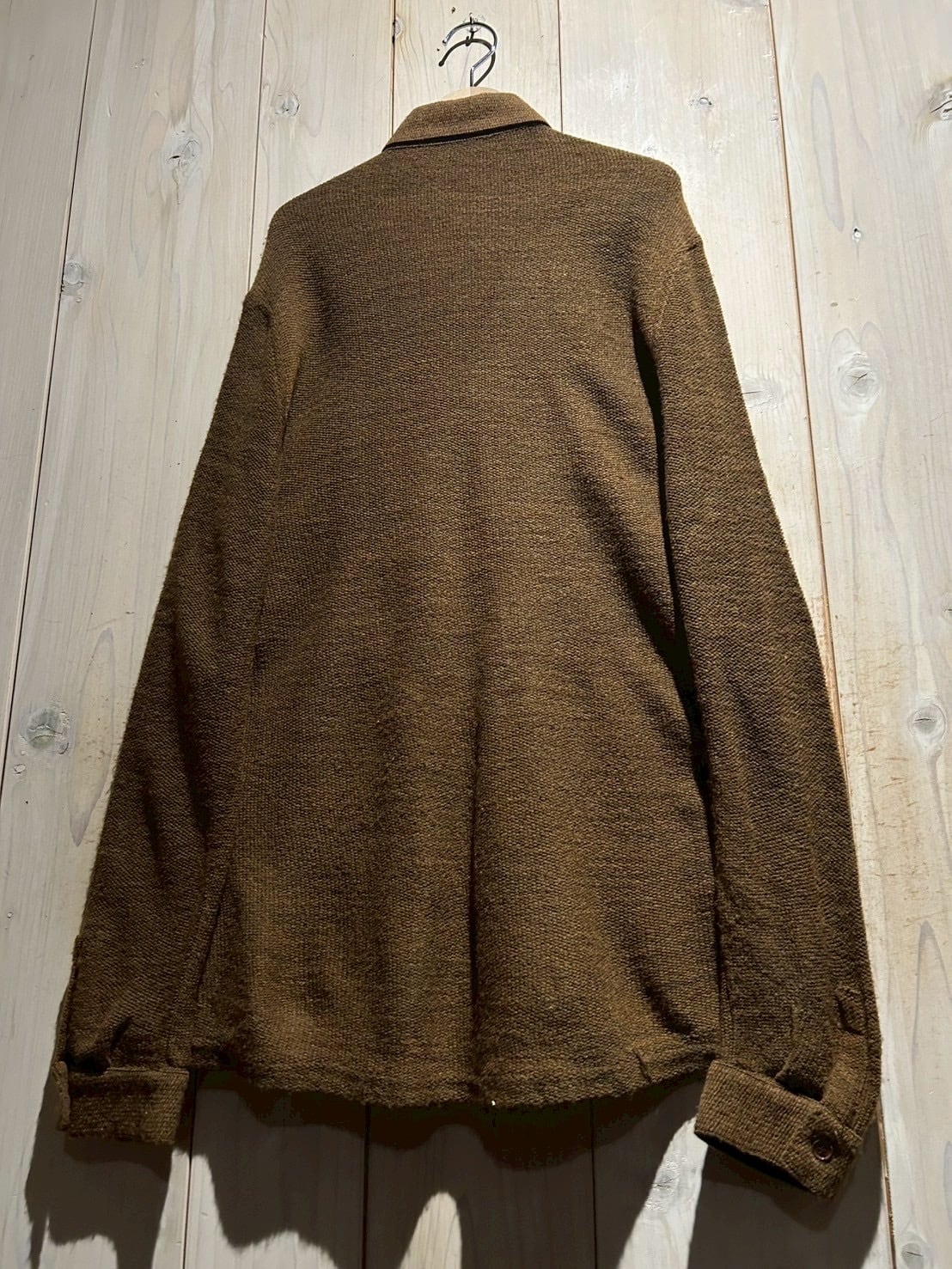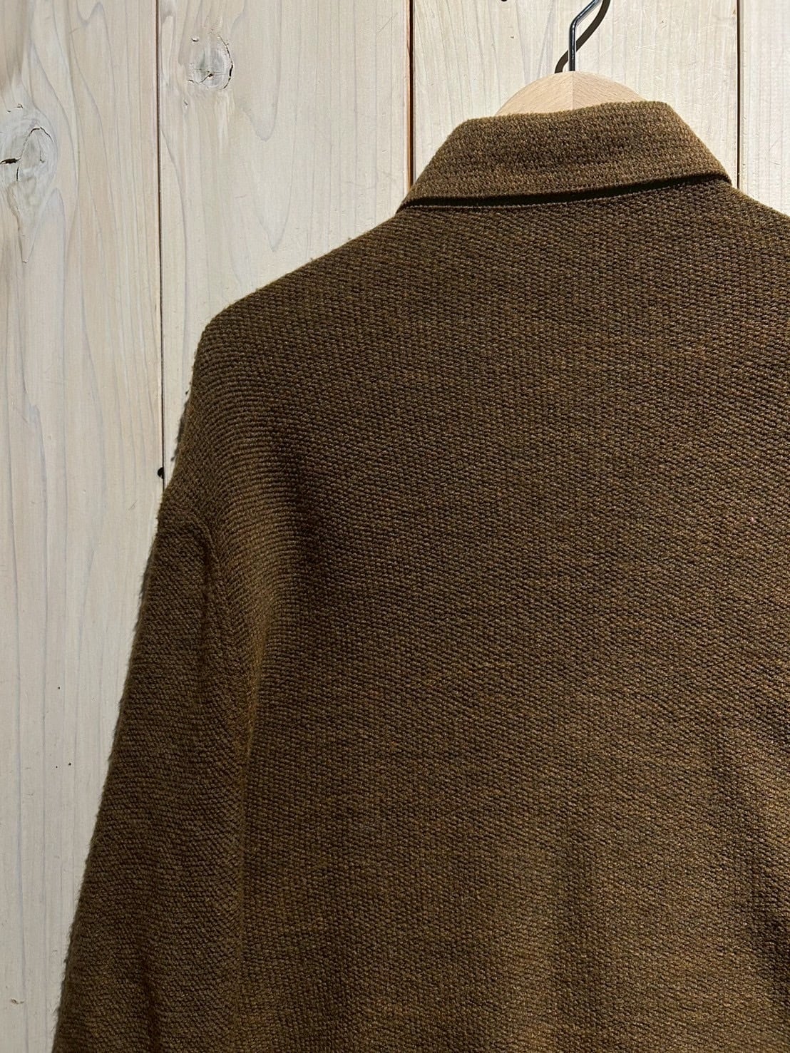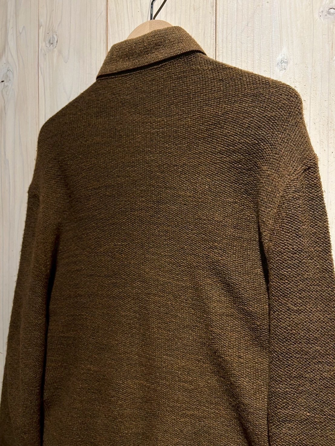 粗野な質感と温かみのあるブラウンカラーが絶妙に調和し、秋冬らしいシーズナルな空気感を纏っています。ざらっとしたドライタッチの風合いが雰囲気抜群で、着込むほどに馴染み、経年による深みを楽しめるのも大きな魅力です。