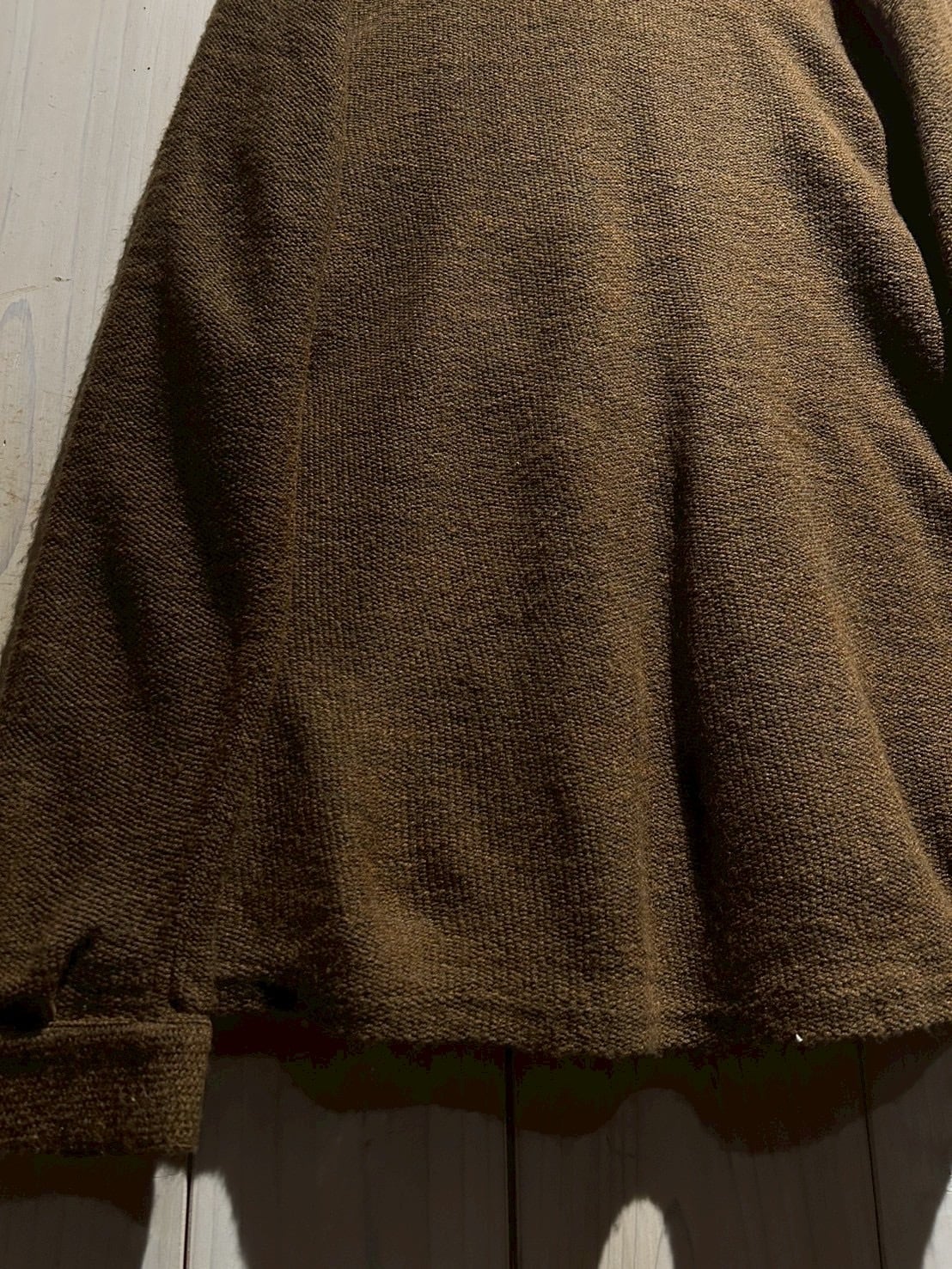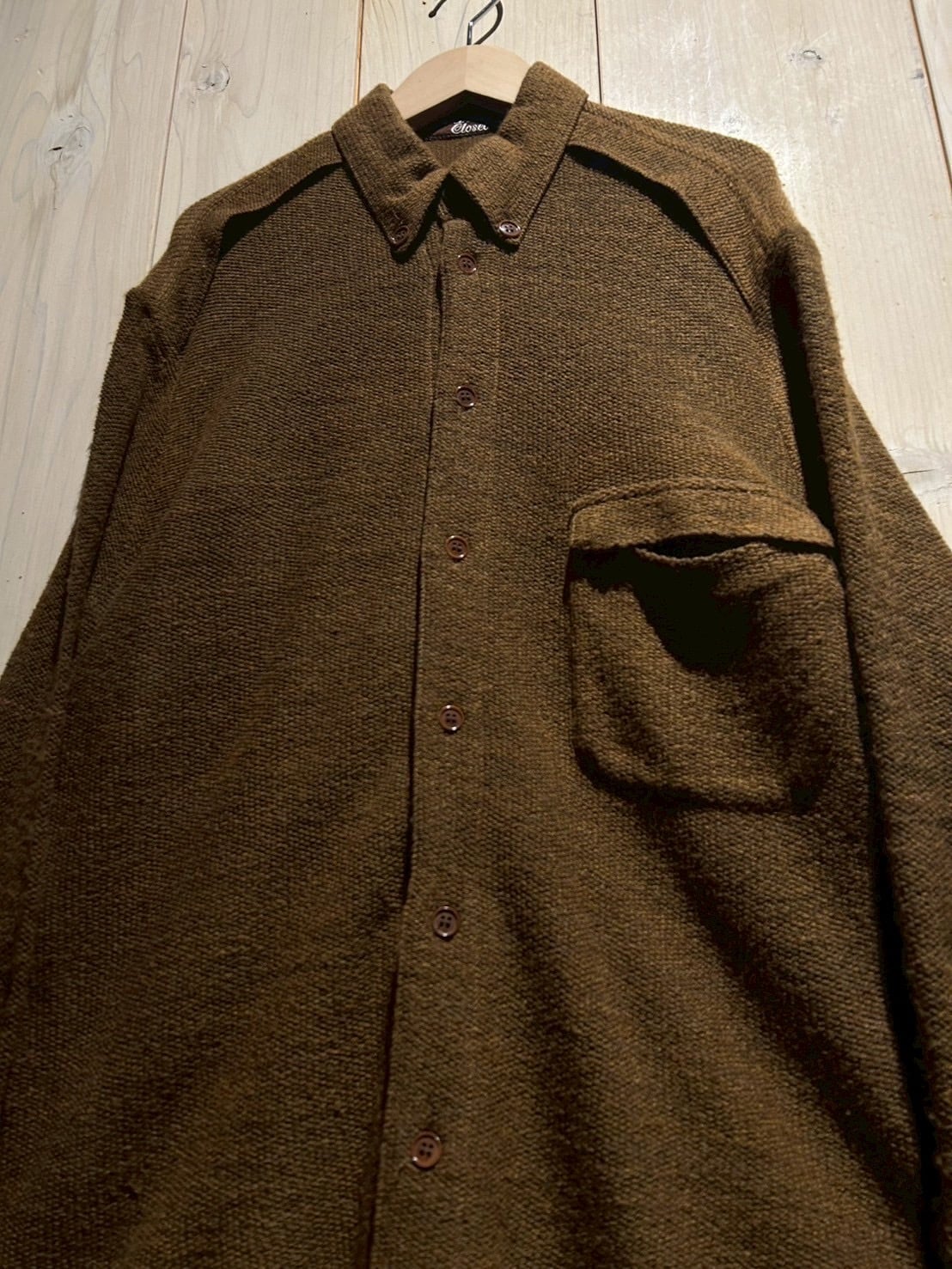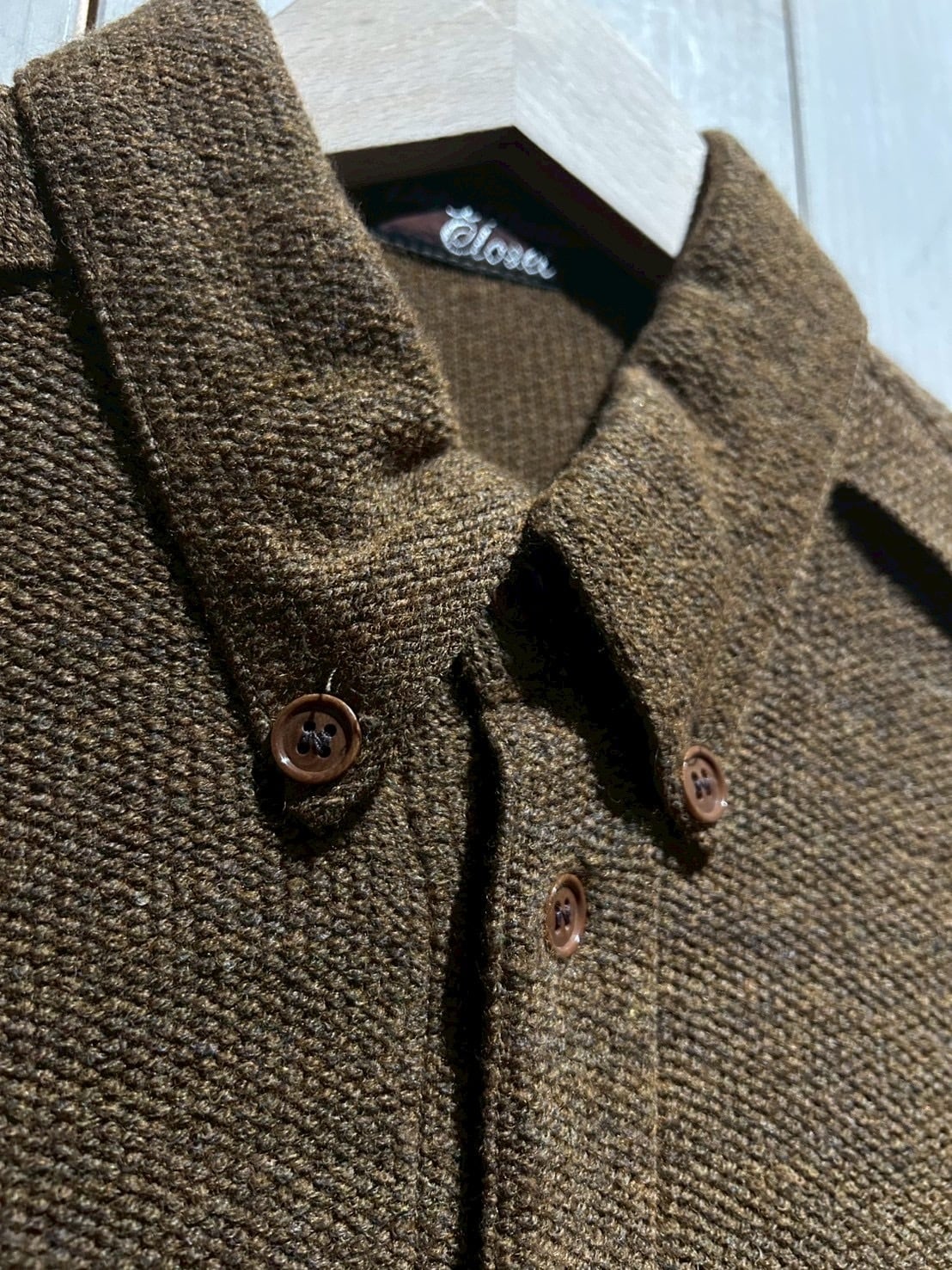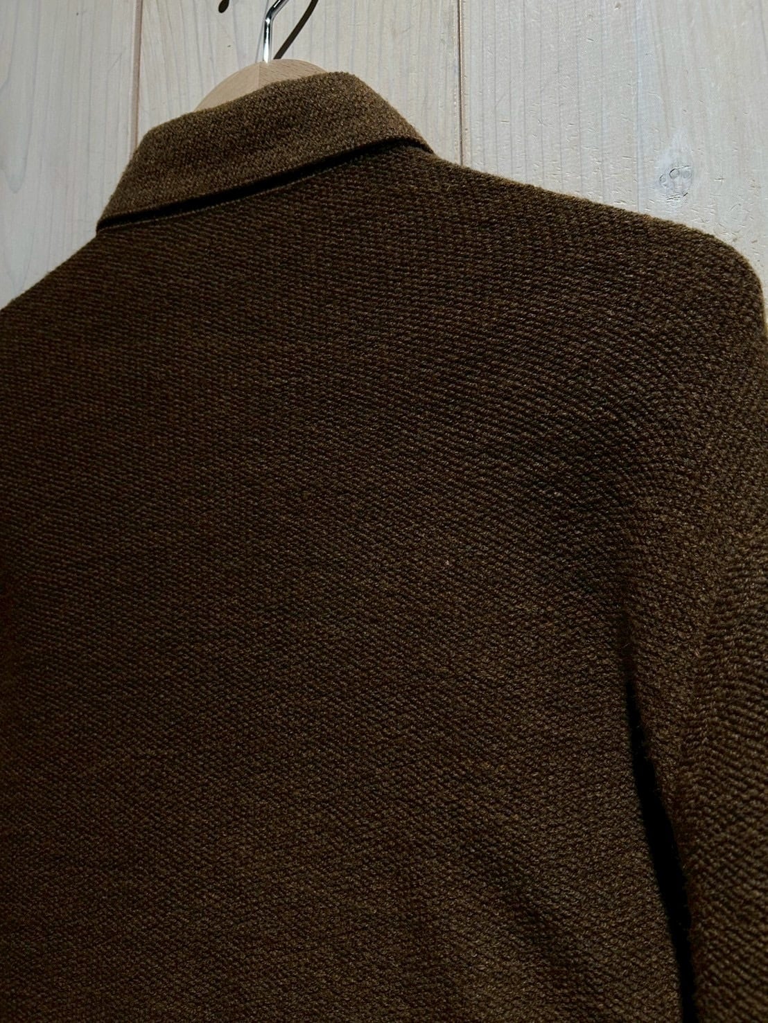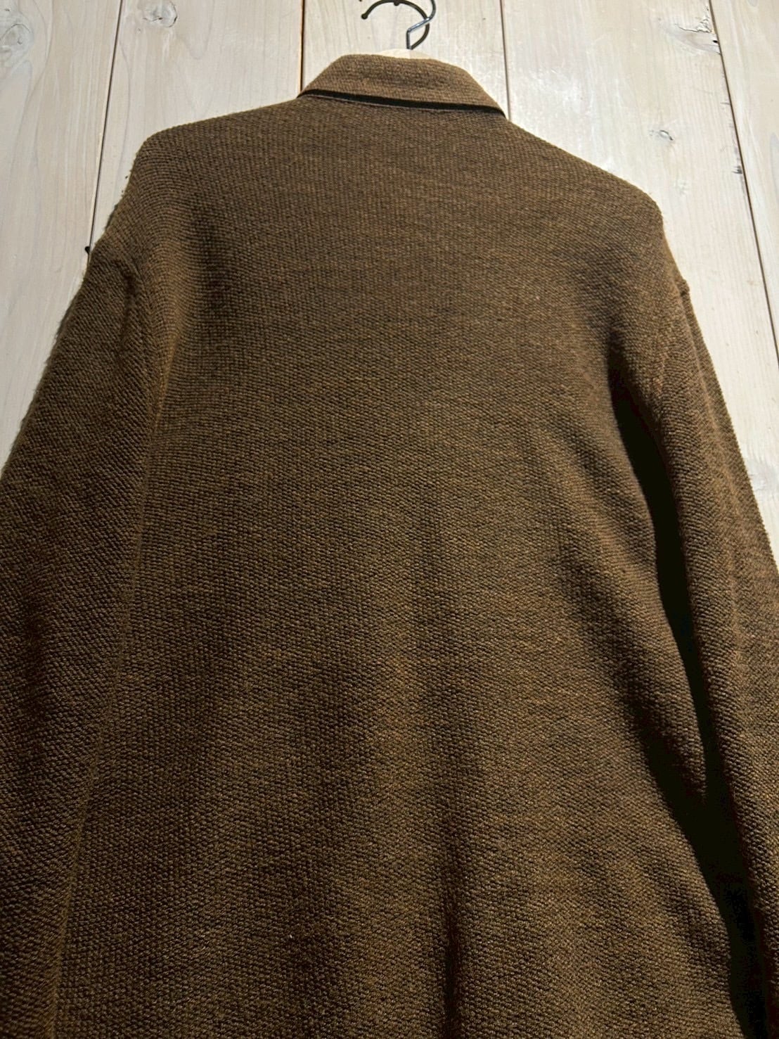 粗野な質感と温かみのあるブラウンカラーが絶妙に調和し、秋冬らしいシーズナルな空気感を纏っています。ざらっとしたドライタッチの風合いが雰囲気抜群で、着込むほどに馴染み、経年による深みを楽しめるのも大きな魅力です。