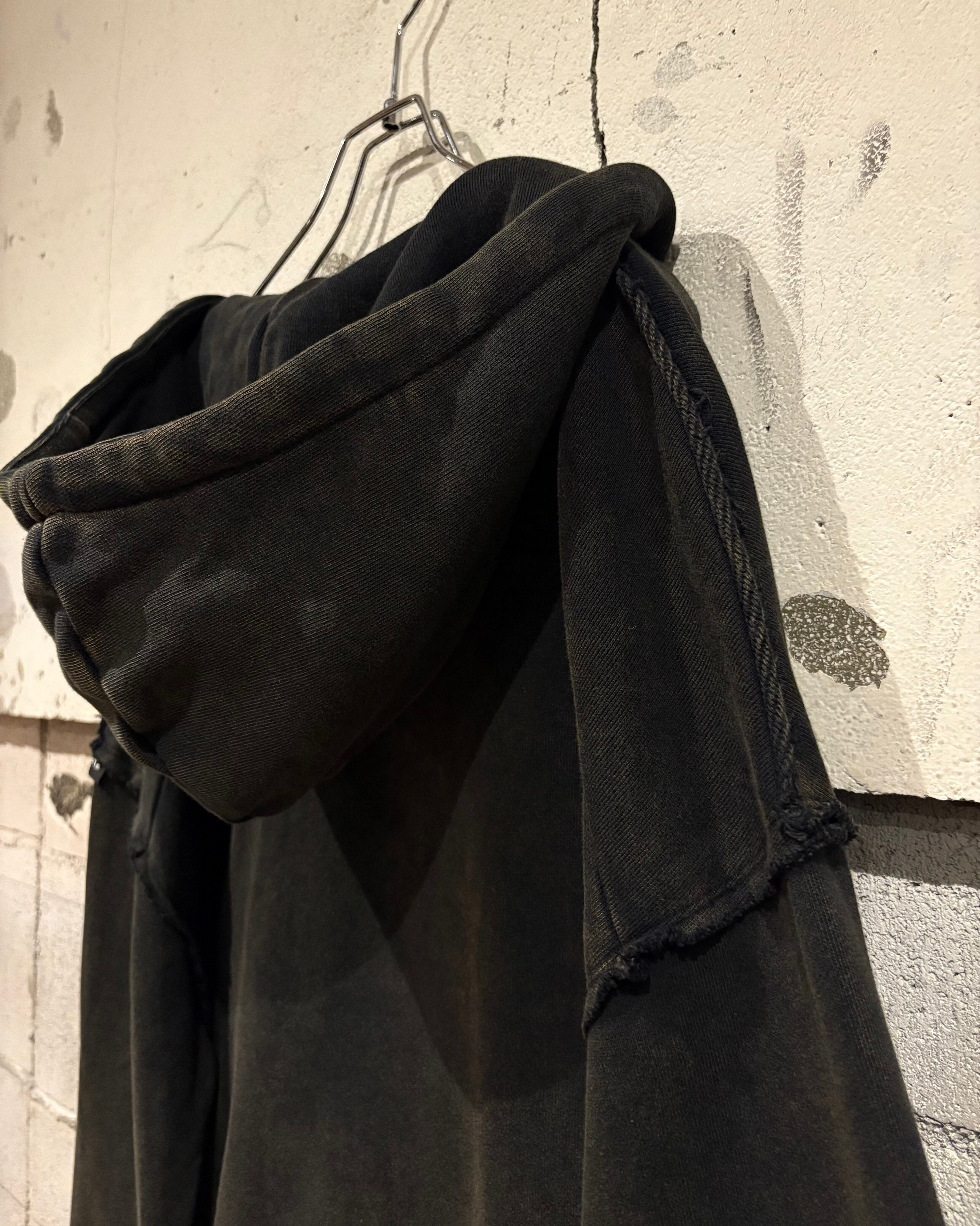 断ち切り仕様のインサイドアウト風のデザインと相まって、シンプルでありながら一枚で存在感を放ち、良い退廃的な雰囲気を漂わせています。