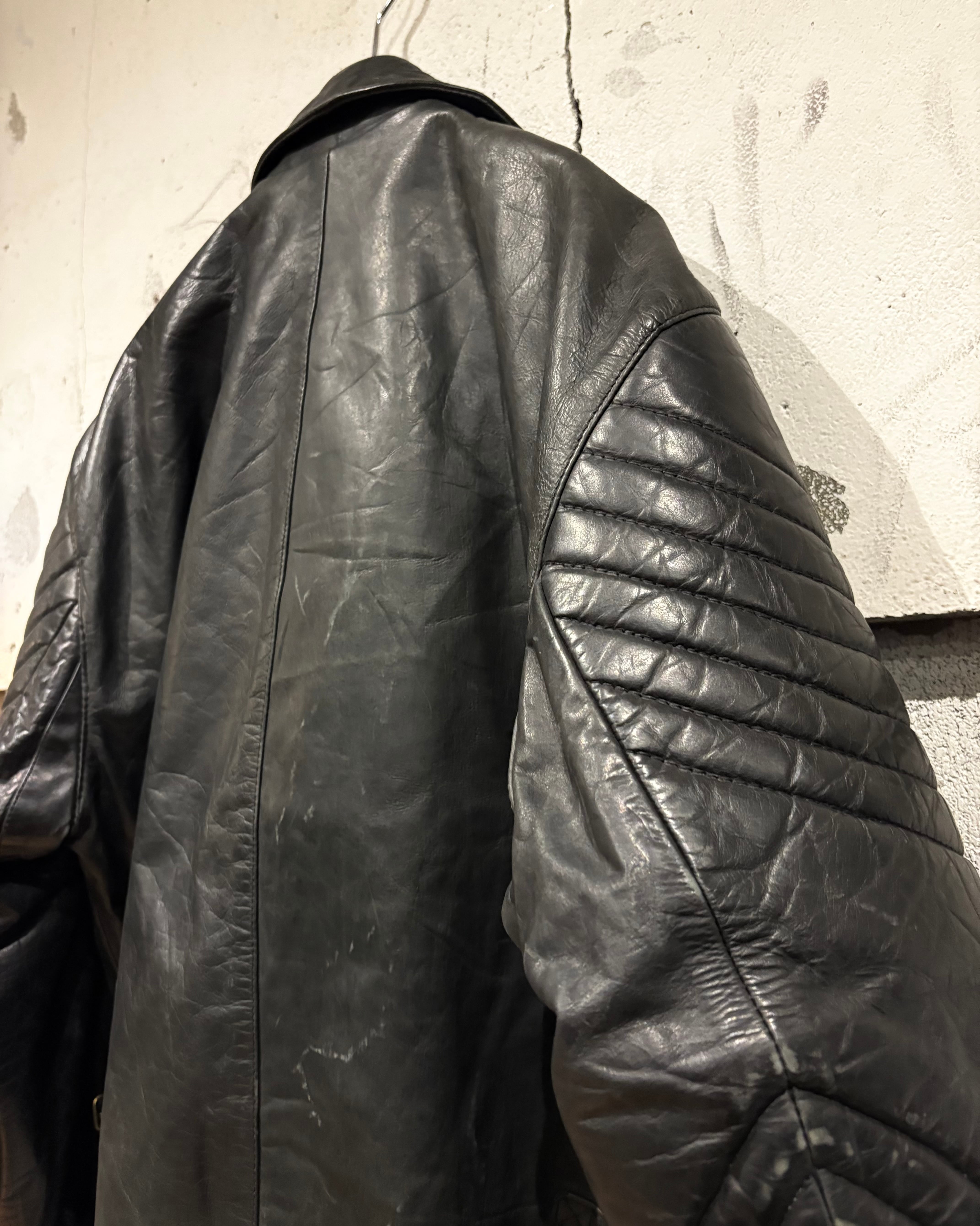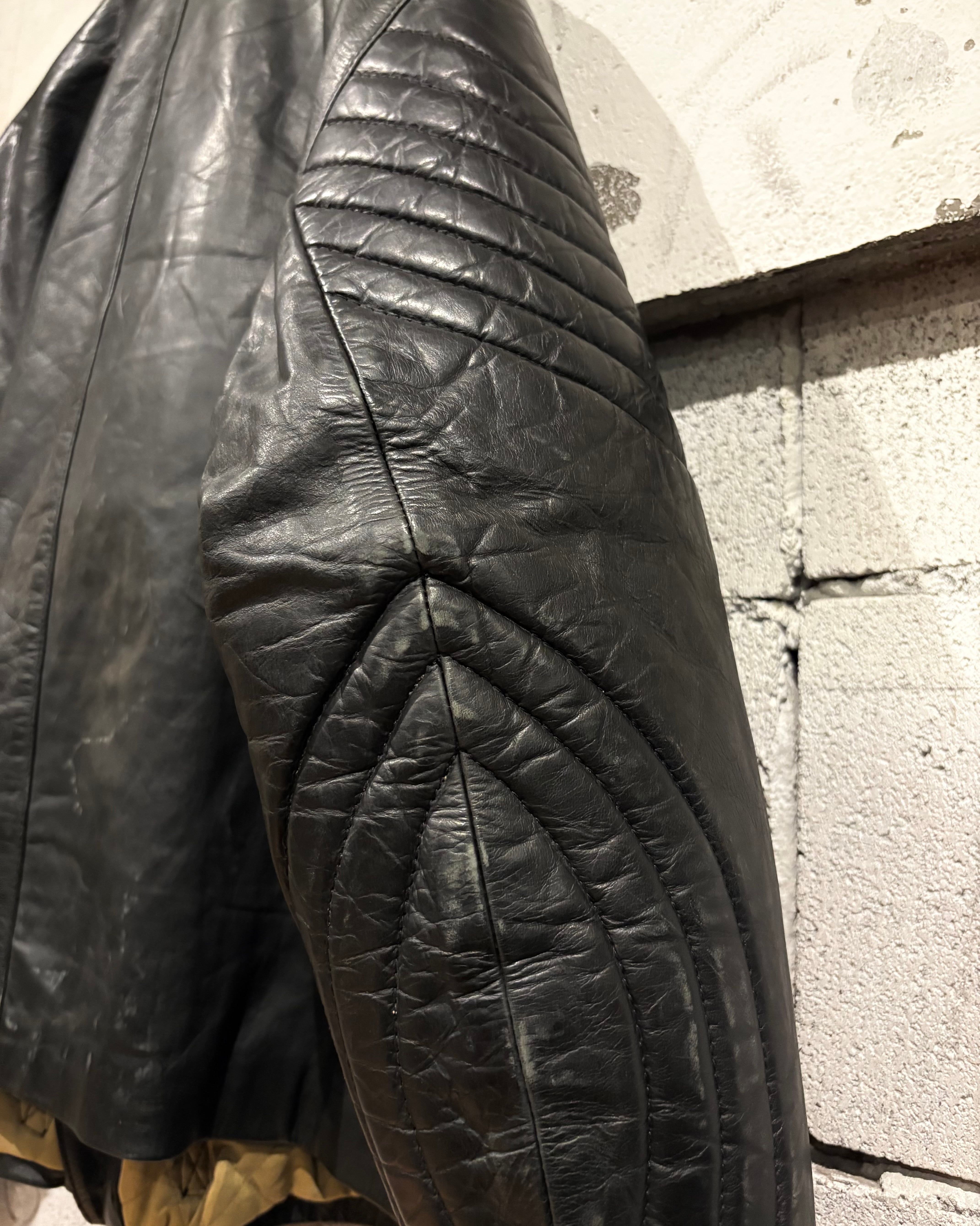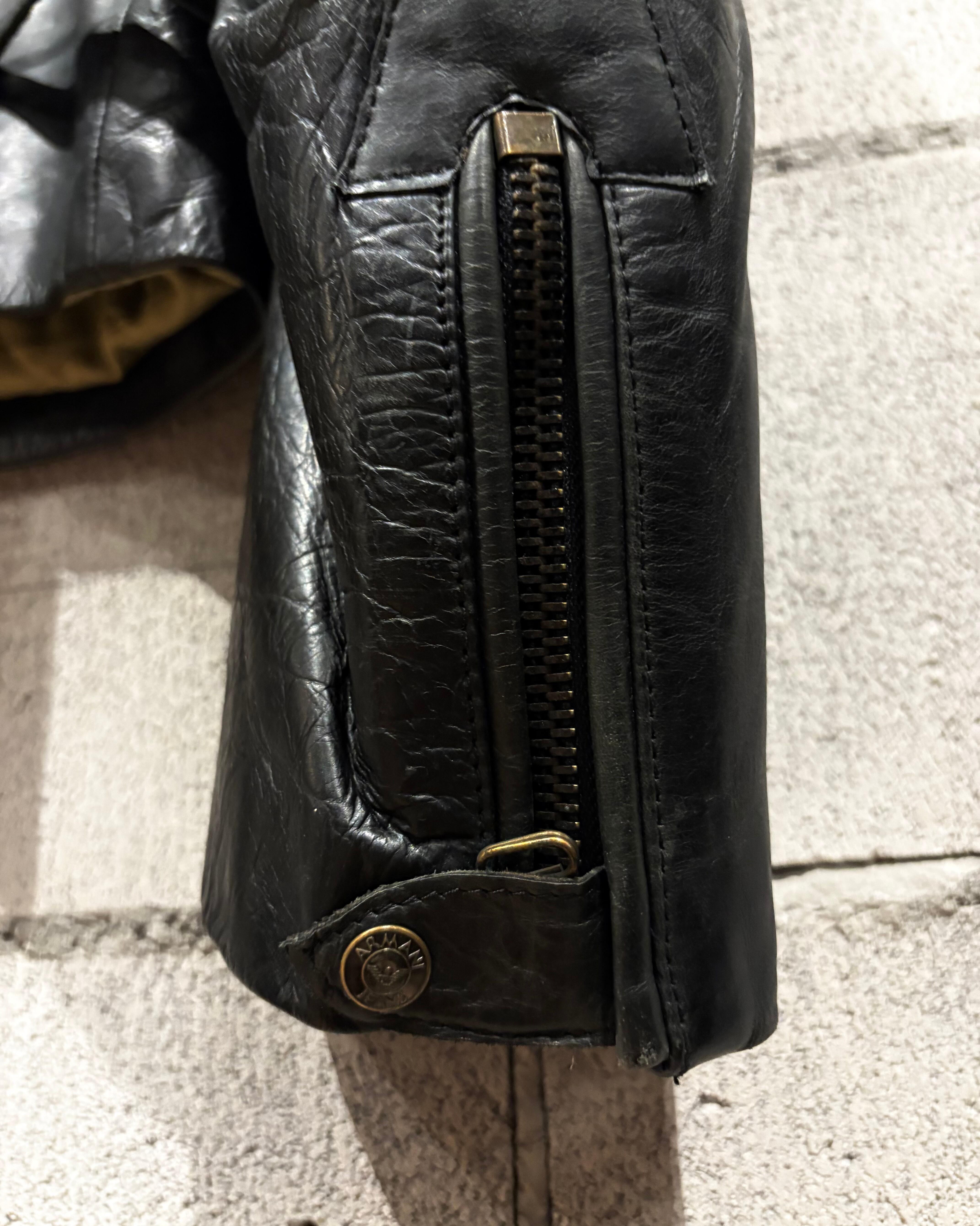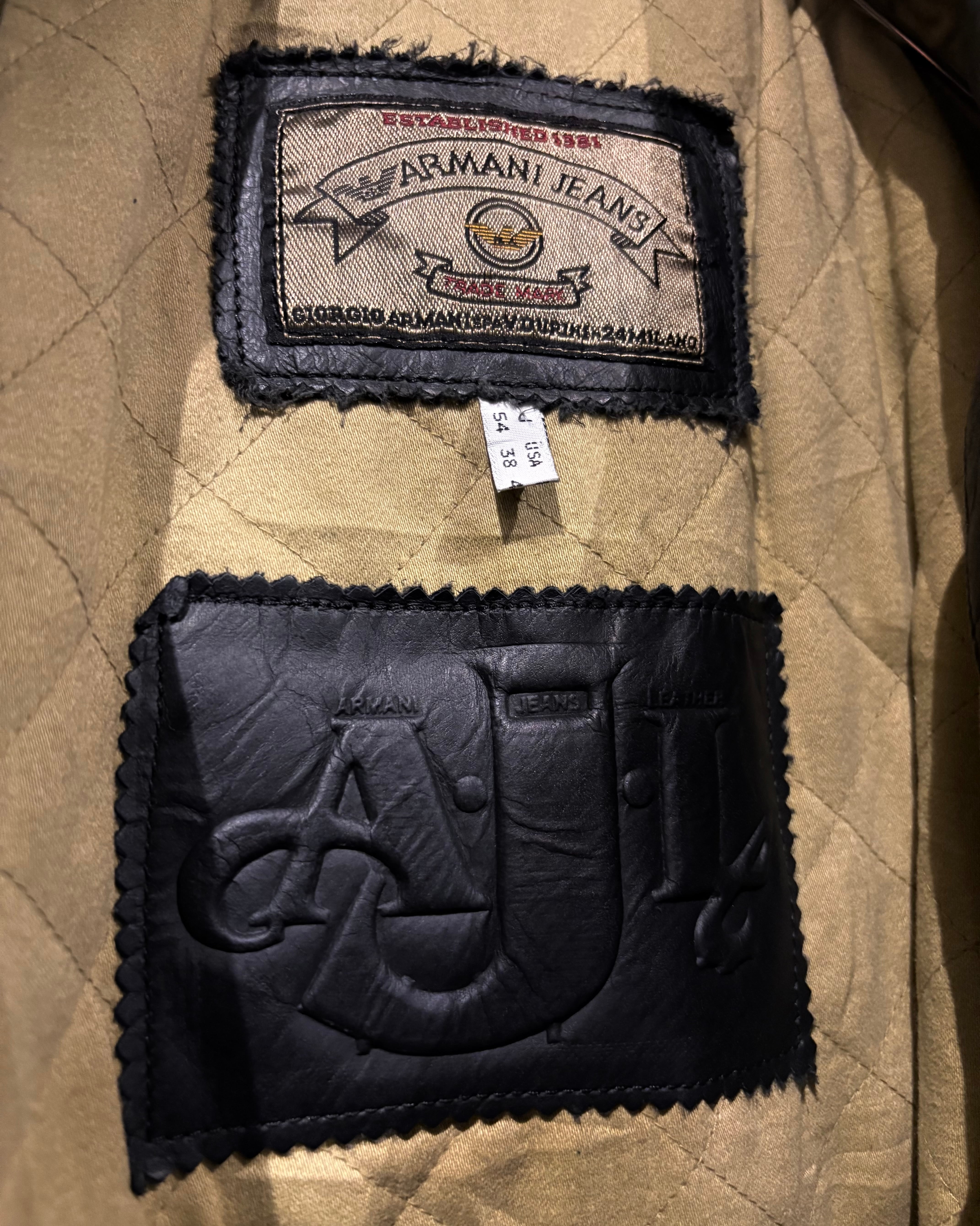 アルマーニが持つモードのエレガンスと、バイカージャケットのハードな要素が見事に融合したスペシャルな逸品。ヴィンテージレザージャケットの中でも頭一つ抜けた存在感を誇る1着です。