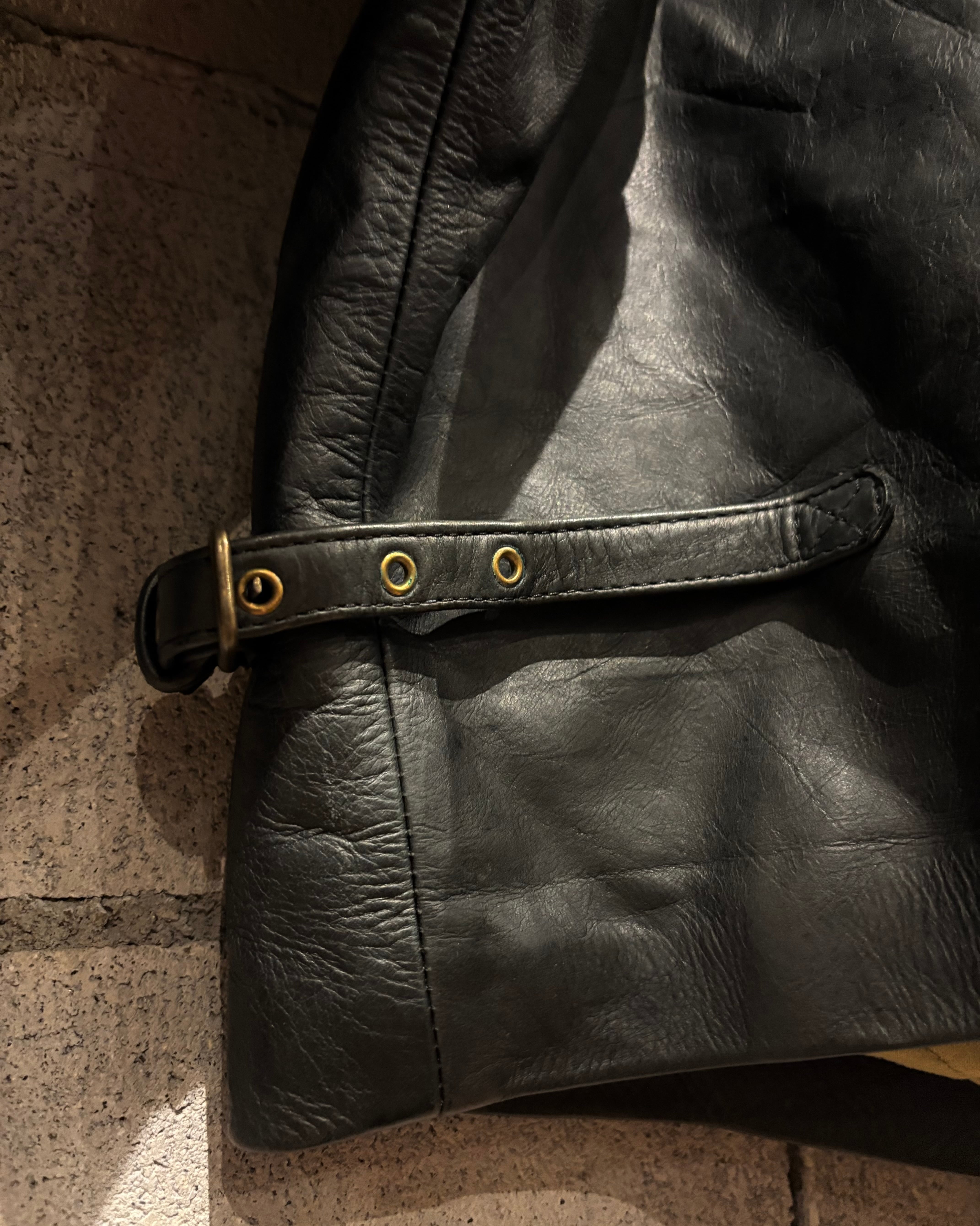 ボディのレザーは重厚な質感と鈍い光沢を備え、長い年月を経て迫力のある表情に育っています。