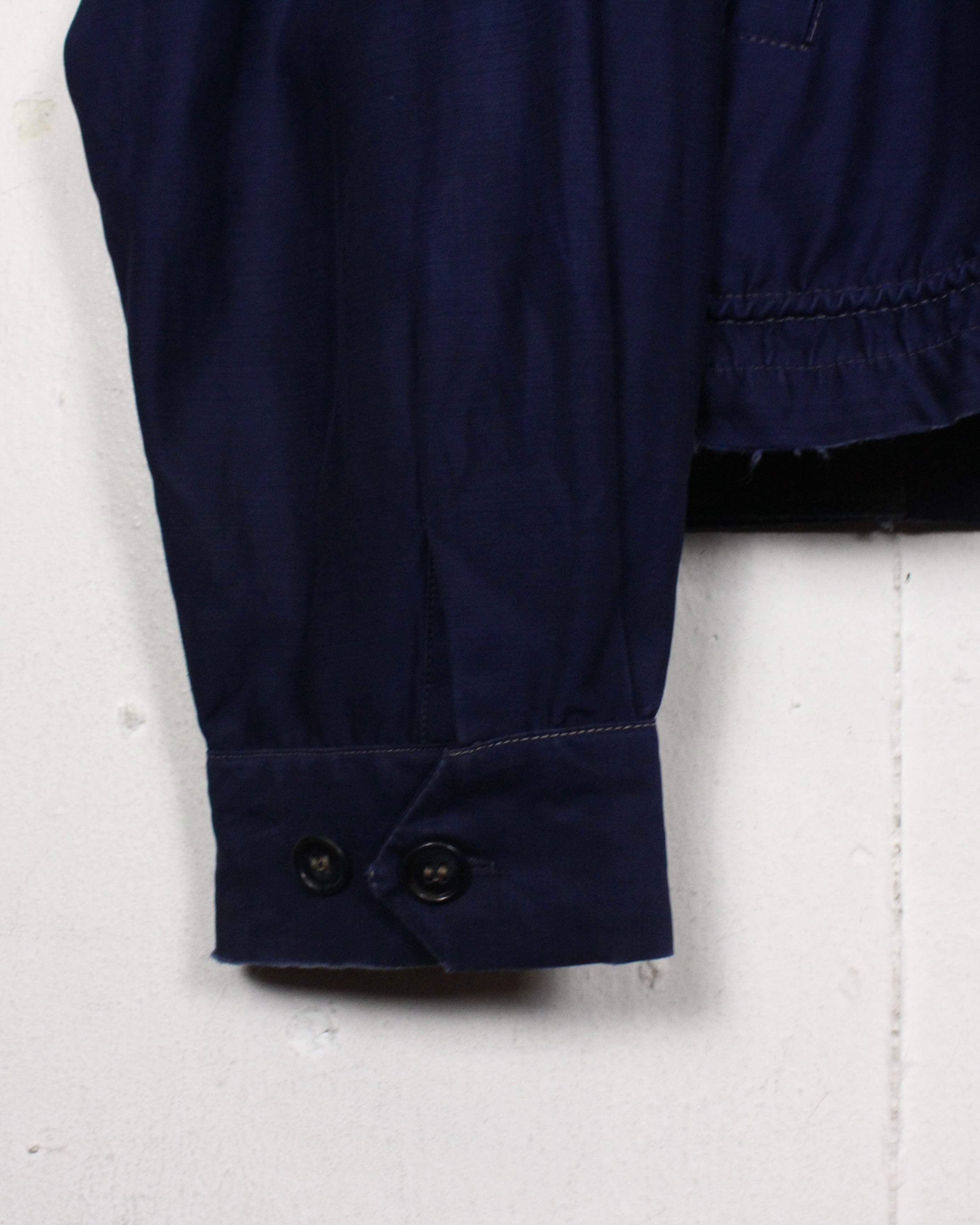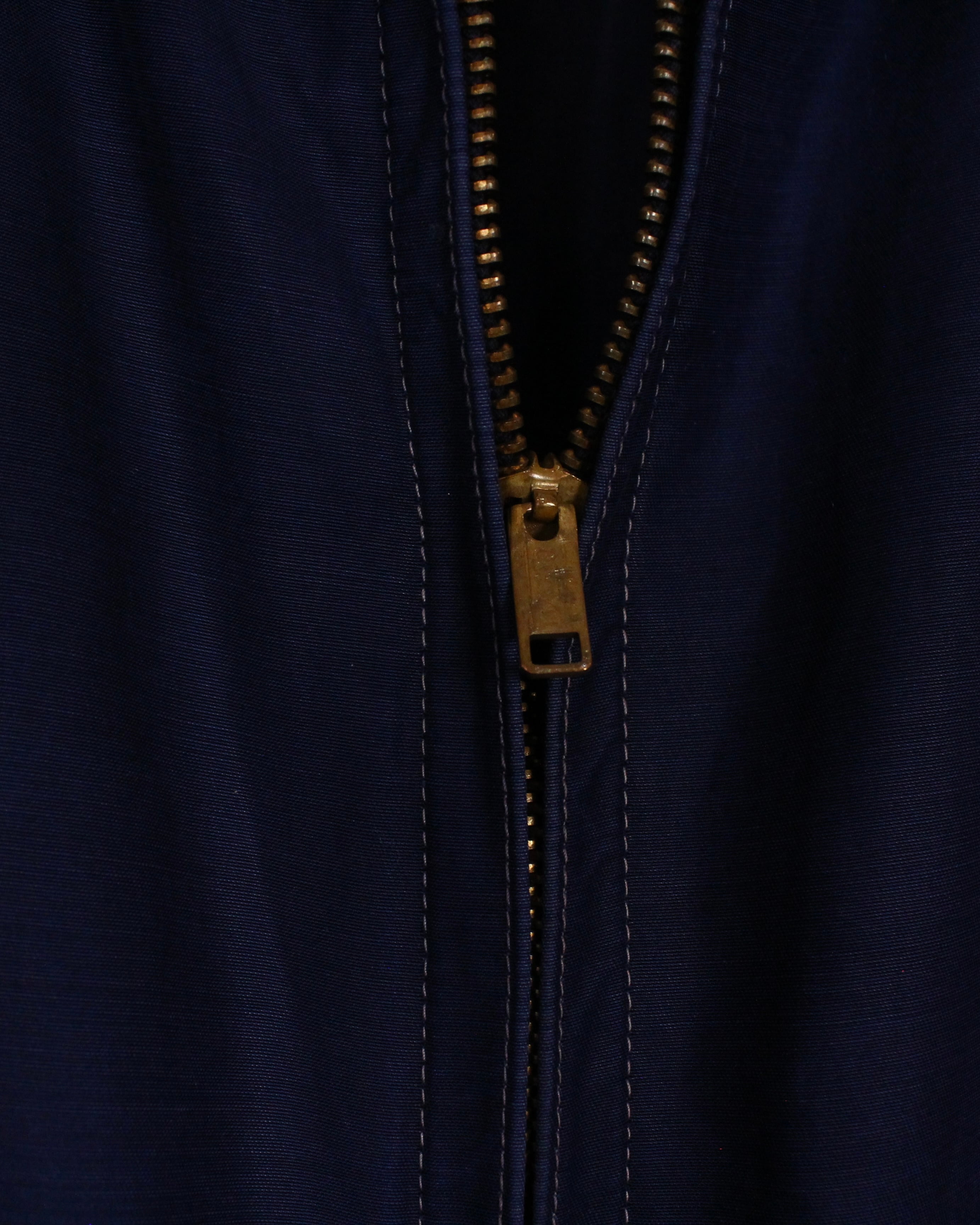 CONMARジップを採用し、経年により鈍い輝きを放ち、当時物にしか出せない渋みを纏っています。短丈でコンパクトなシルエットは、スポーティーで軽快ながら、どこかトラッドなムードを感じさせる絶妙なバランス。背面にはアンブレラヨークを備え、雨風を防ぐ実用性を兼ね備えたディテールも健在です。