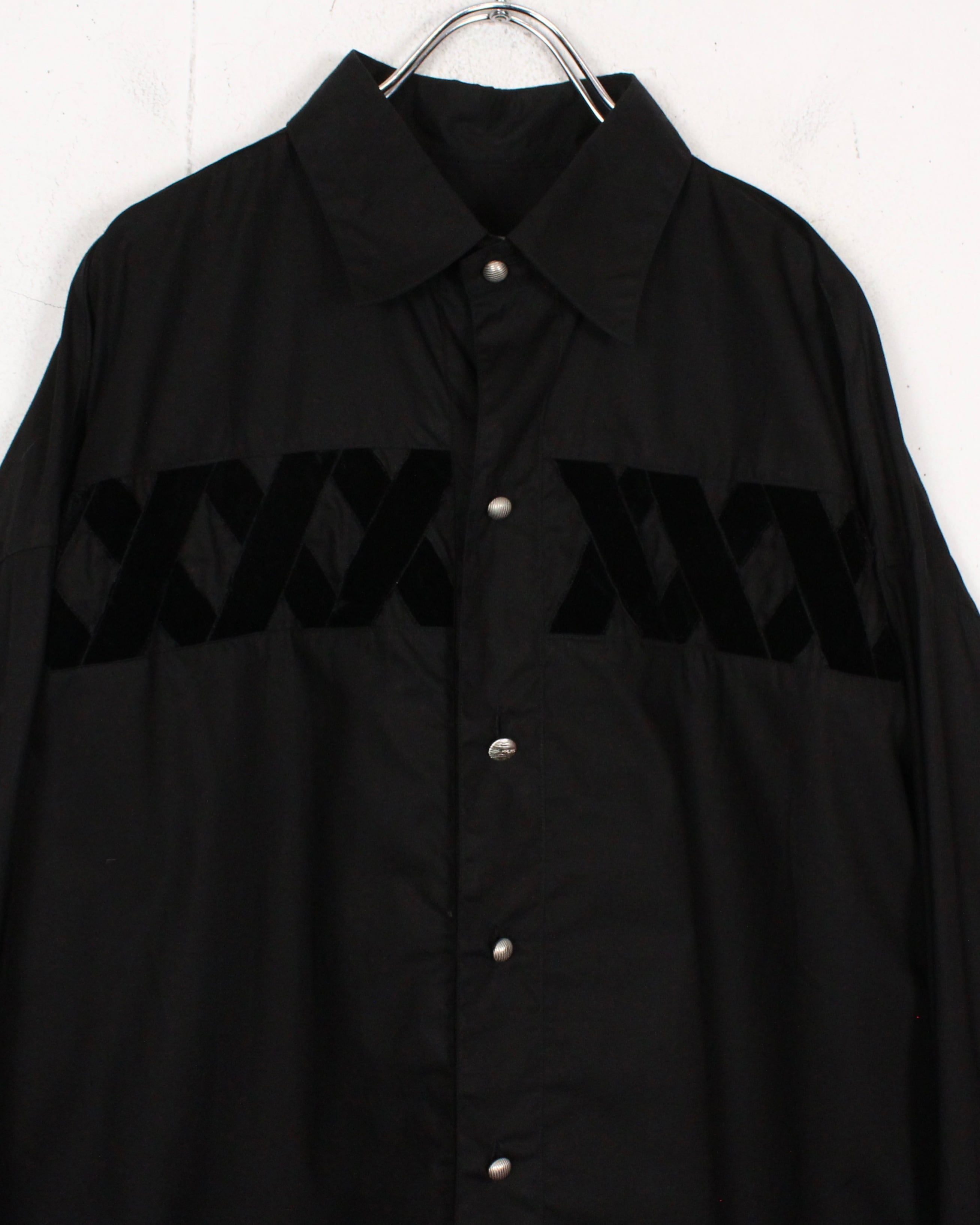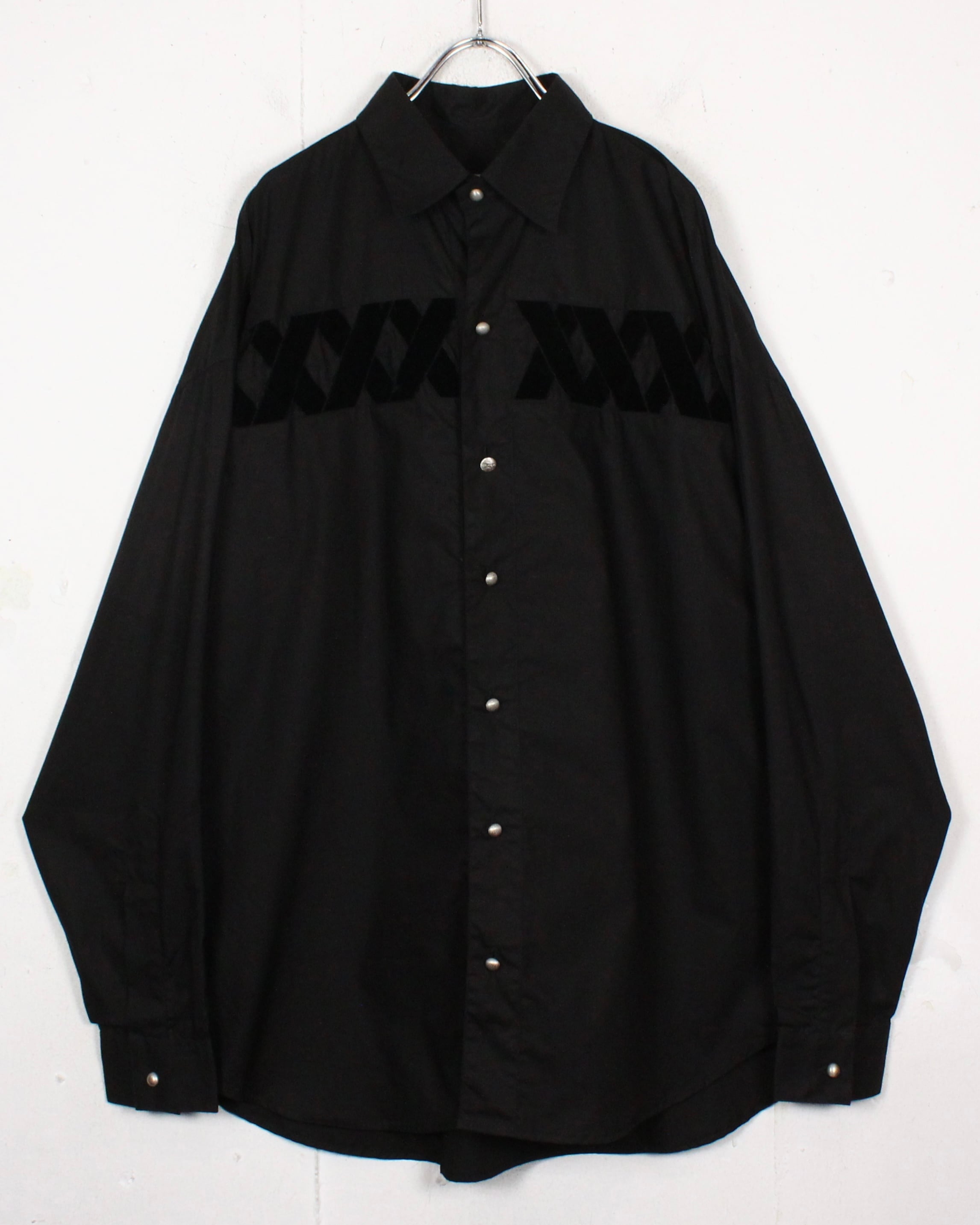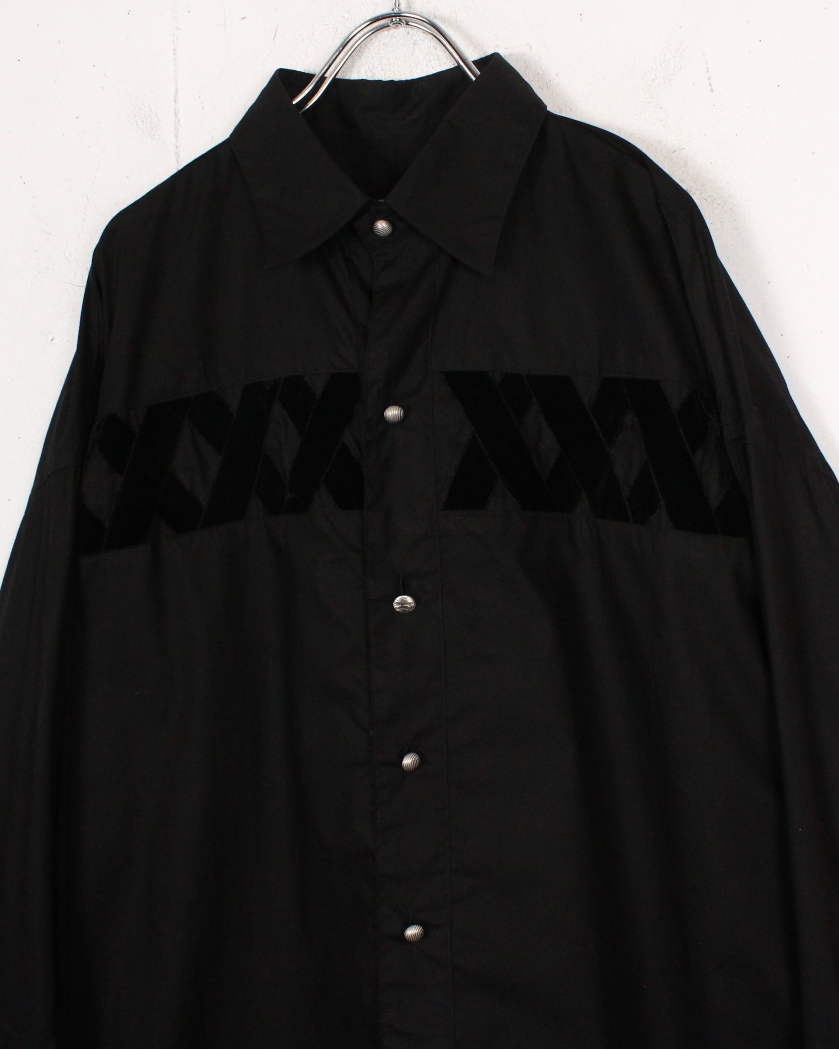 黒を基調としたボディに、起毛感をもつベロア素材でX字にベロアを施した、スペシャルな長袖シャツ。