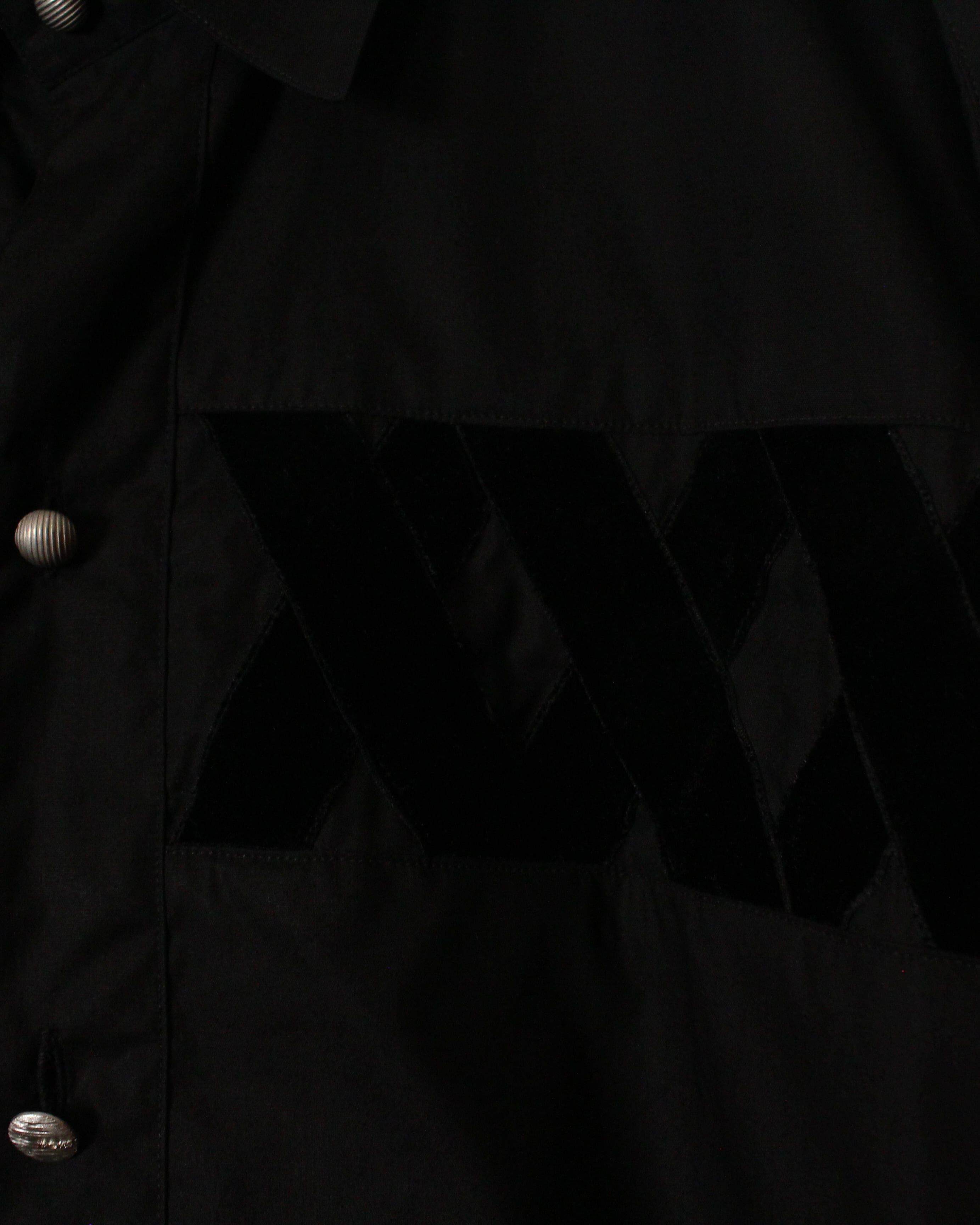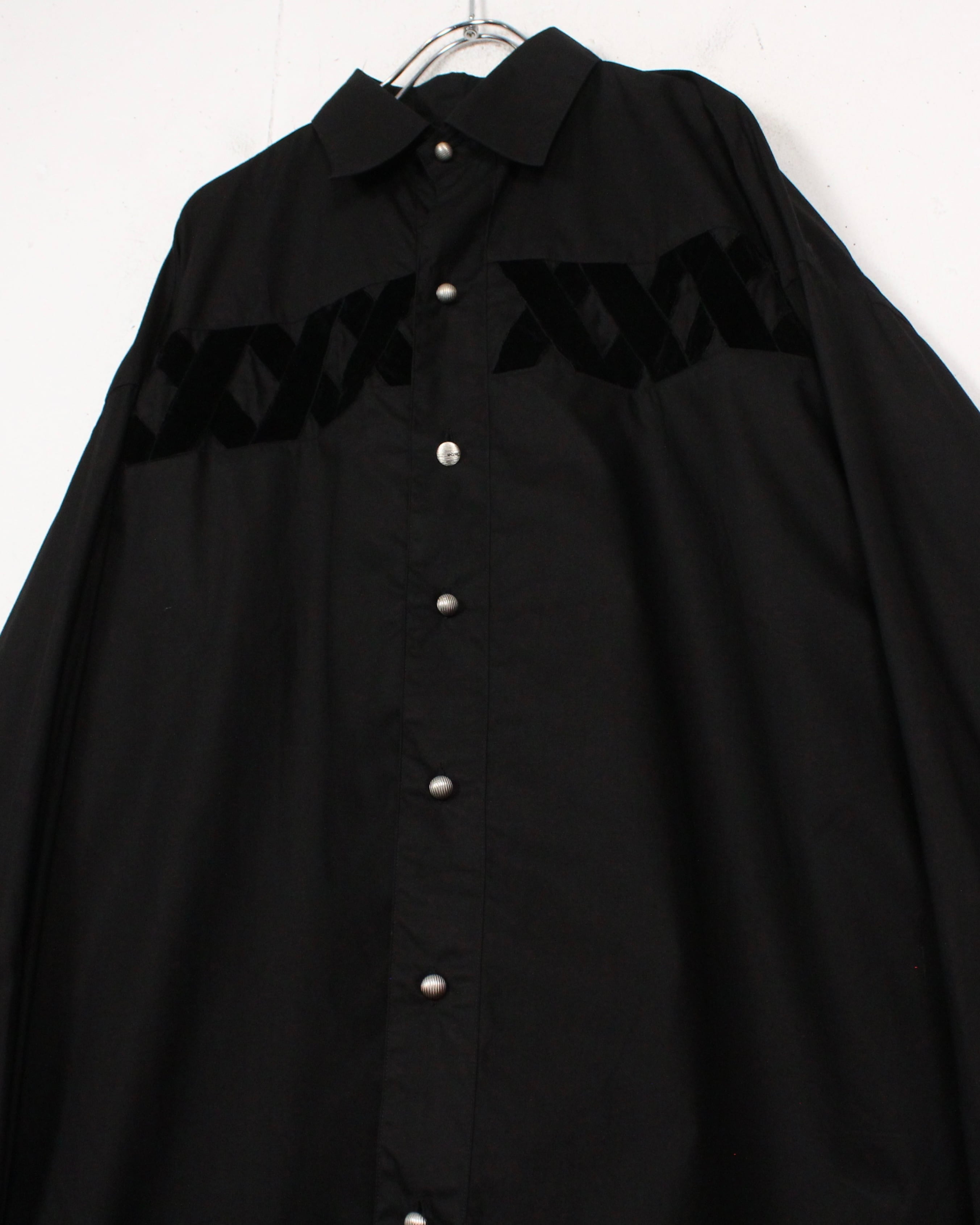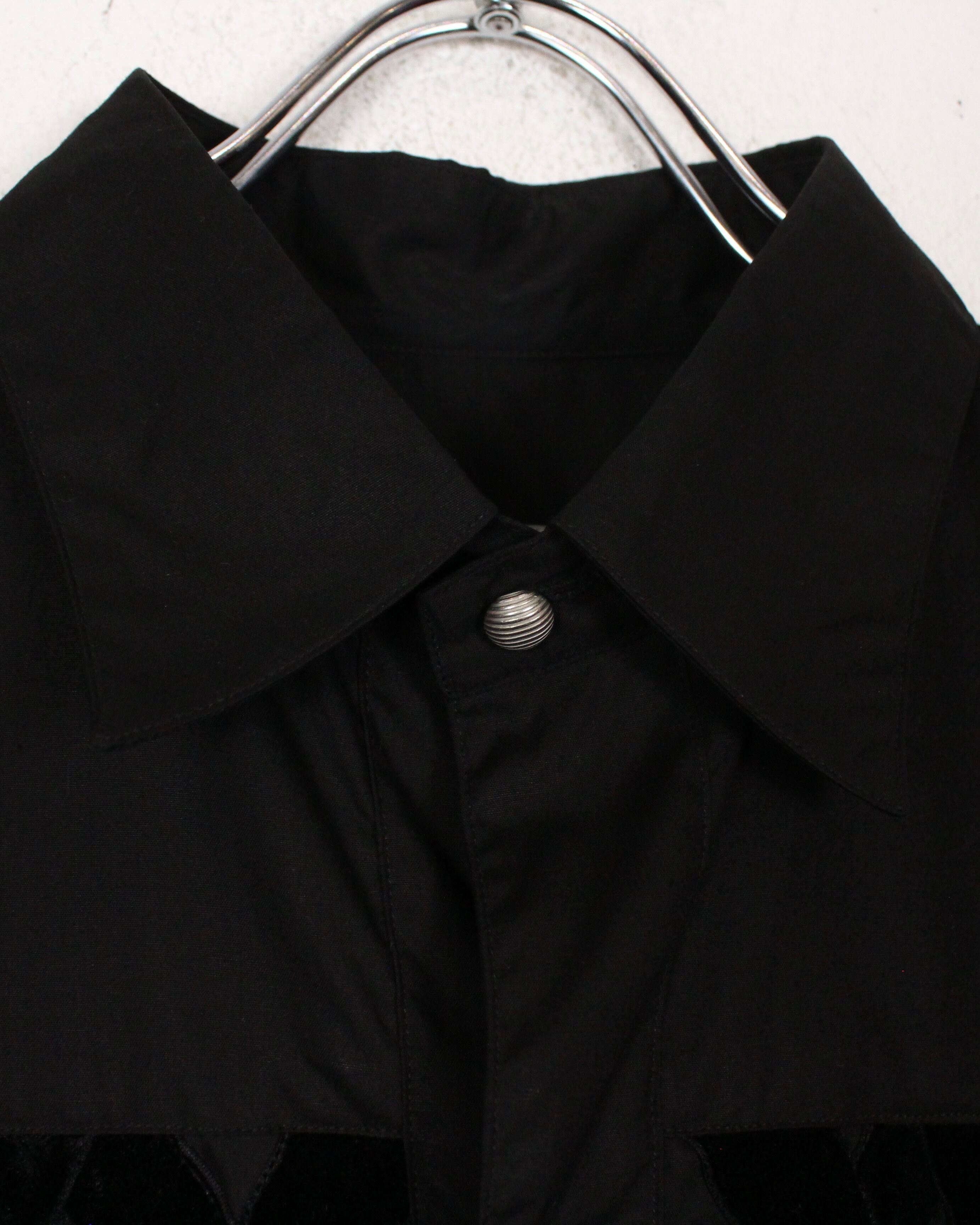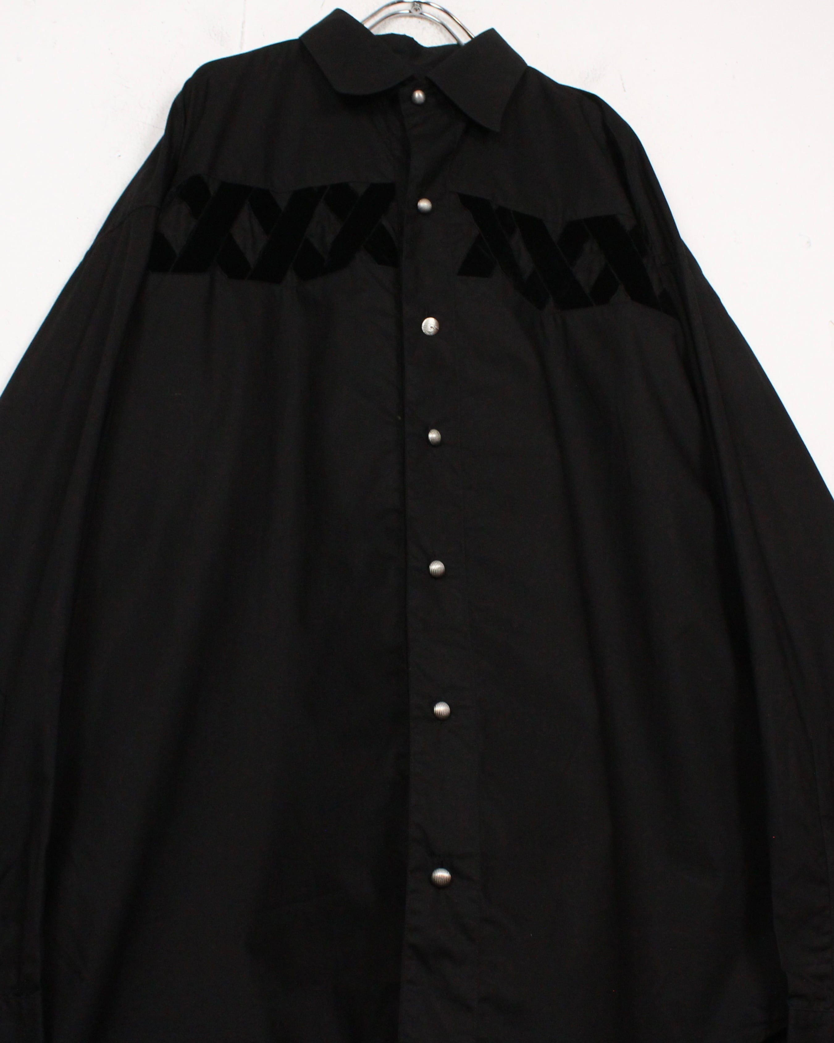 黒を基調としたボディに、起毛感をもつベロア素材でX字にベロアを施した、スペシャルな長袖シャツ。