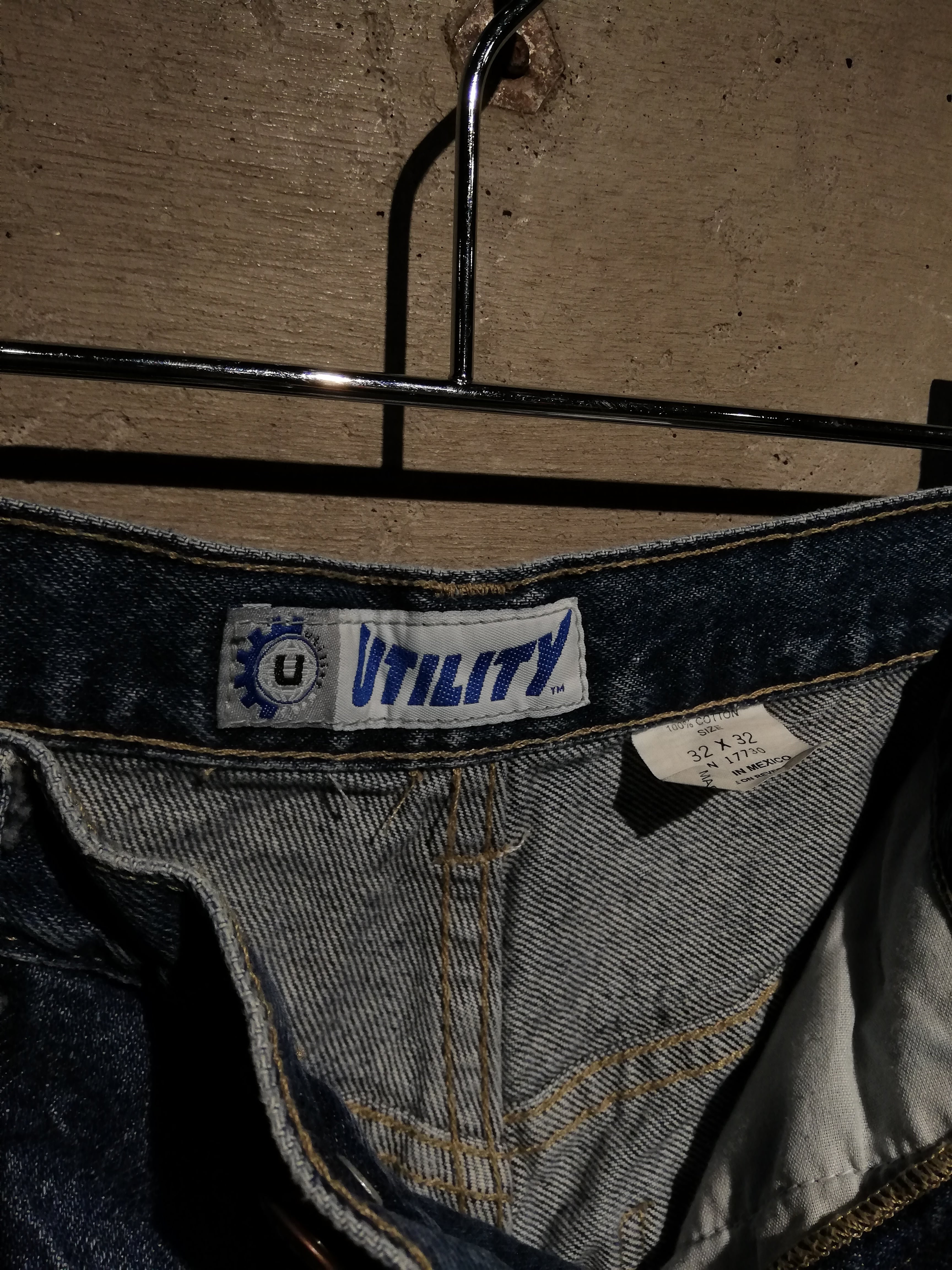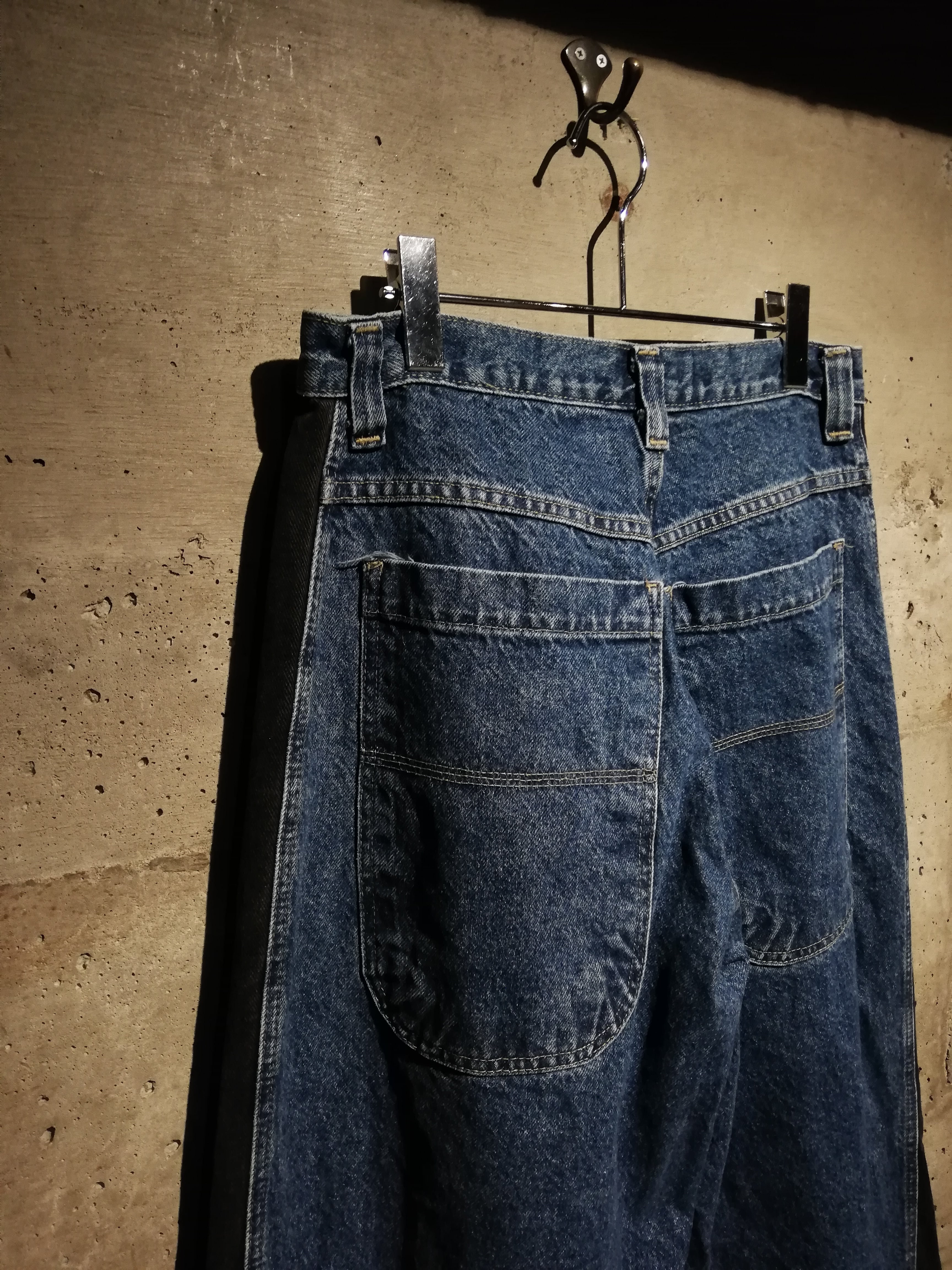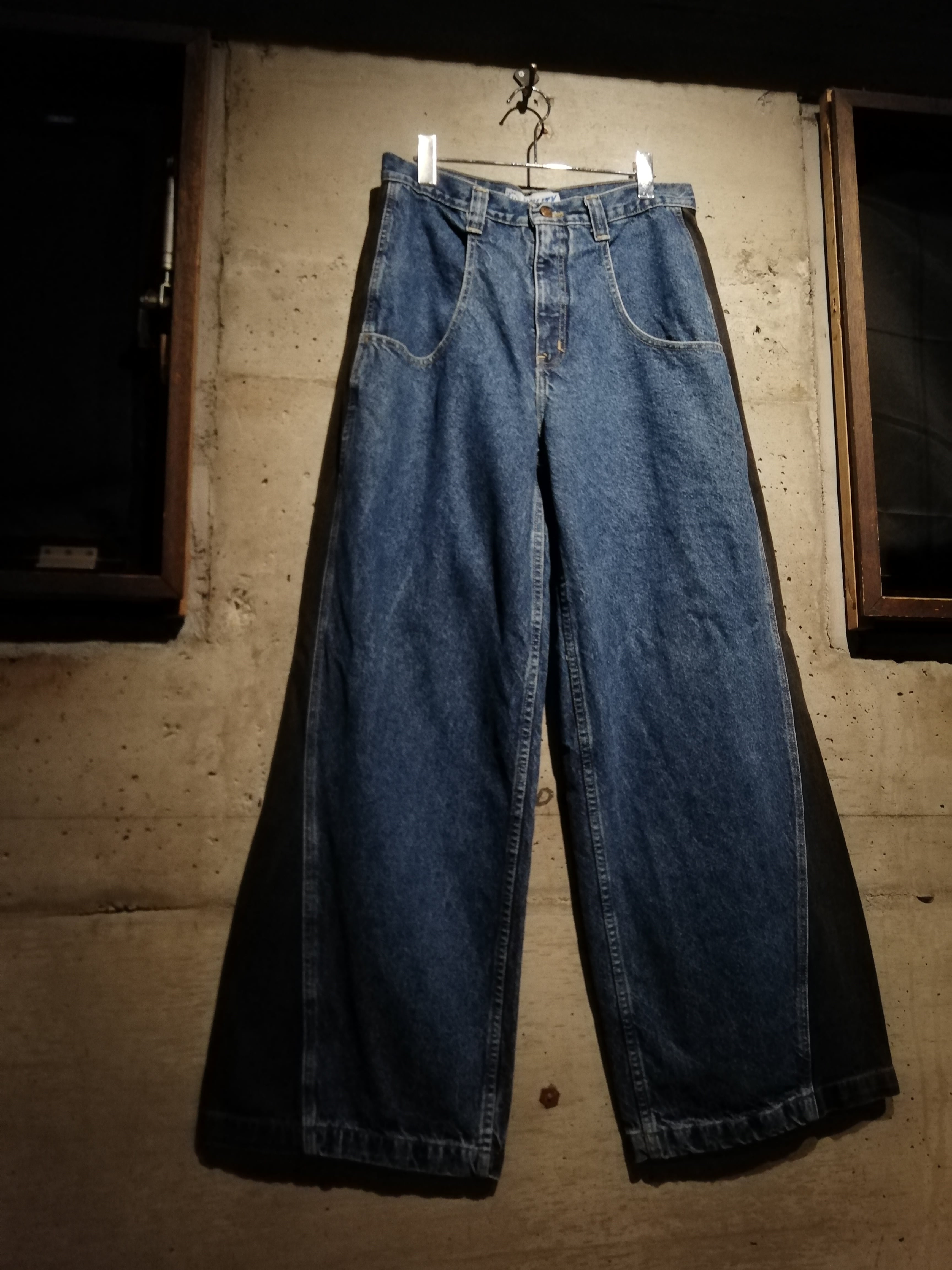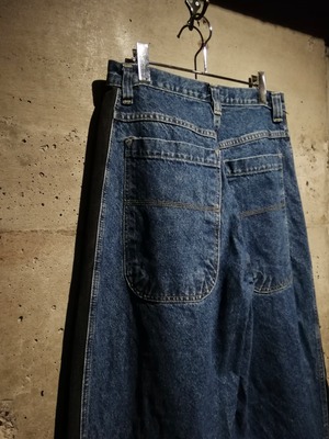 レイヴカルチャー全盛期を彷彿とさせる、独特なツートーン切り替え仕様の“UTILITY”レイヴデニムパンツ。