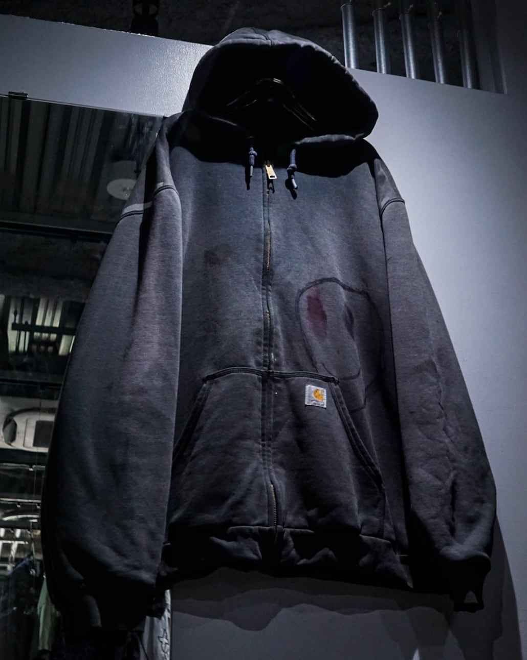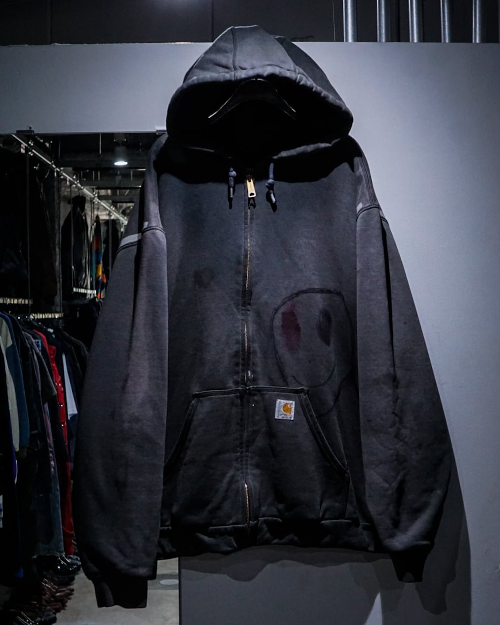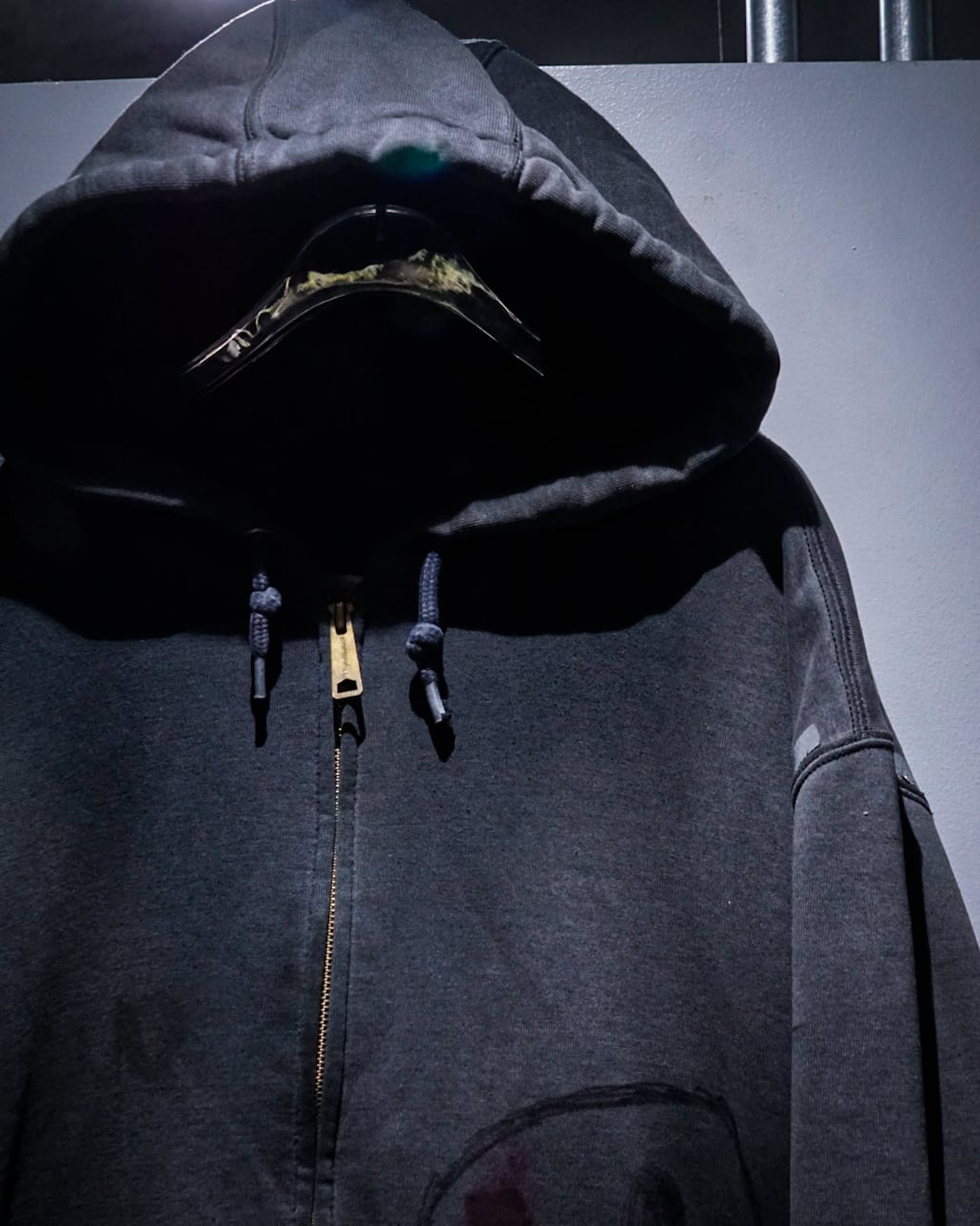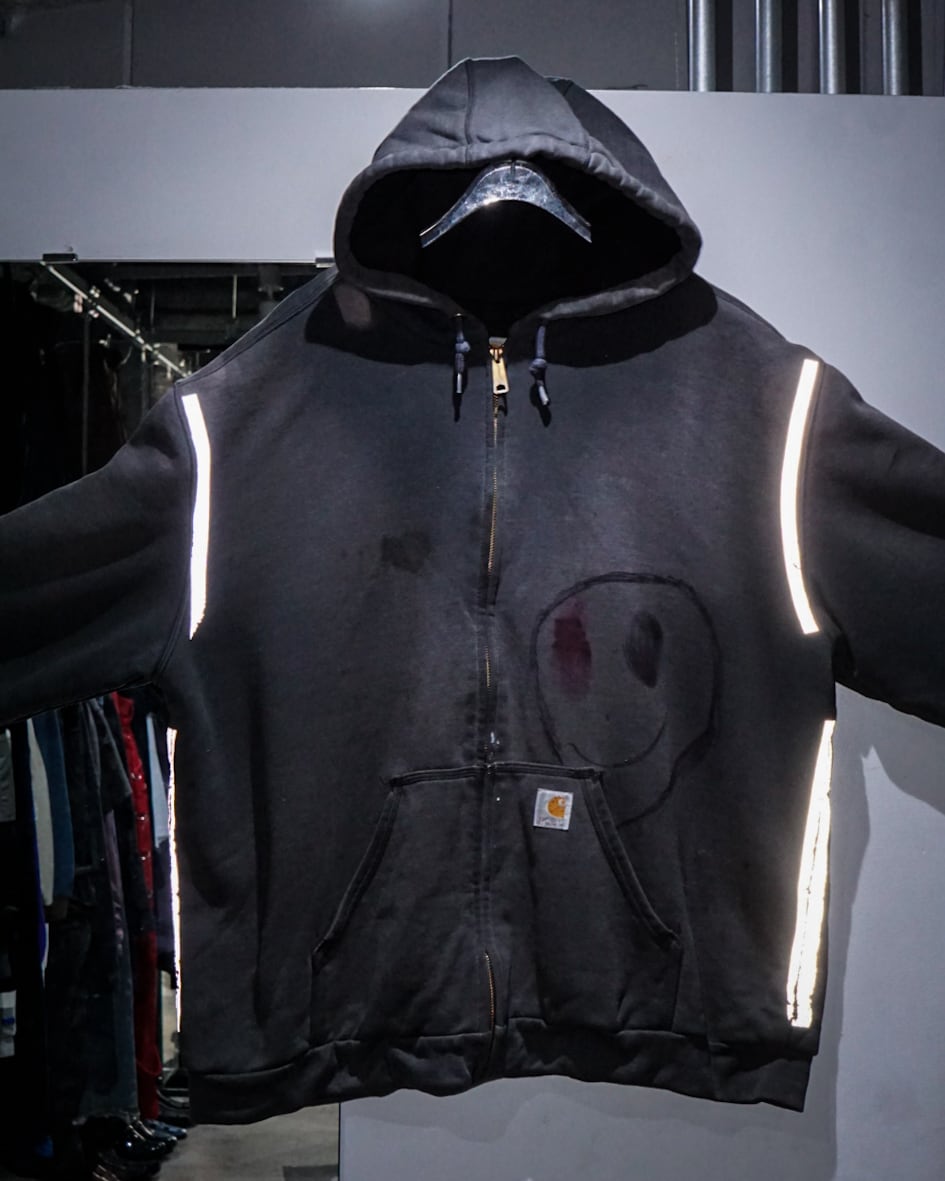 アメリカンワークウェアを語る上で欠かすことのできないブランド“Carhartt”より、リフレクターとハンドペイントによる大胆なカスタムが施された、唯一無二のジップアップフーディ。