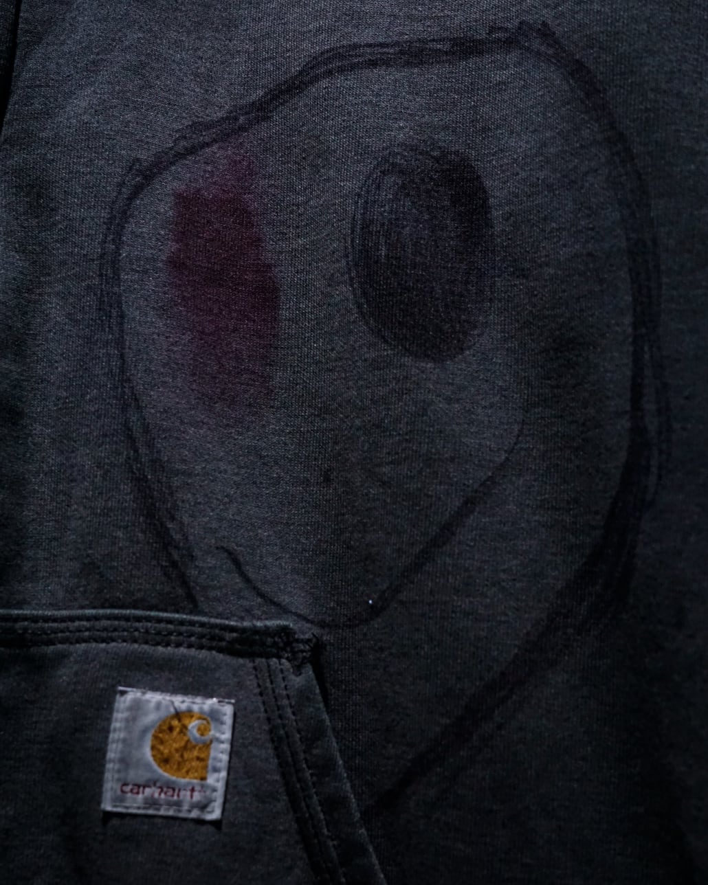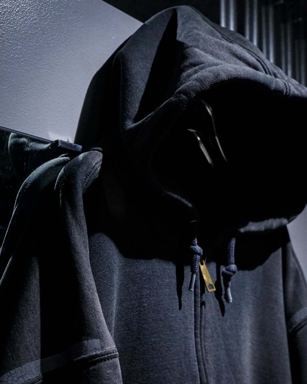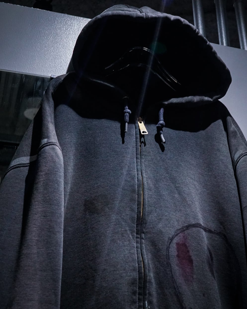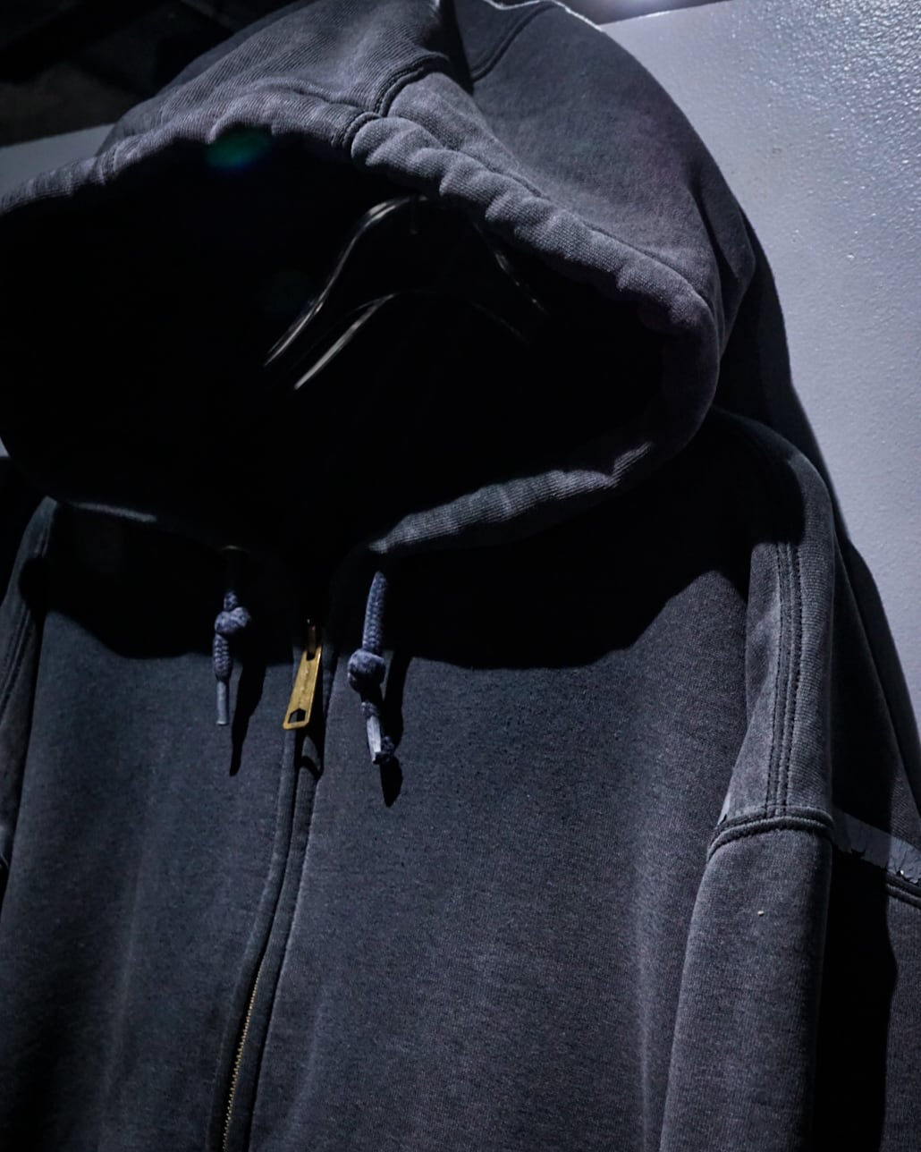 アメリカンワークウェアを語る上で欠かすことのできないブランド“Carhartt”より、リフレクターとハンドペイントによる大胆なカスタムが施された、唯一無二のジップアップフーディ。