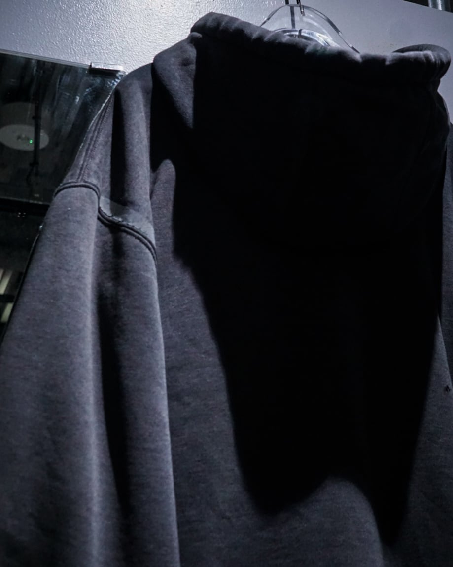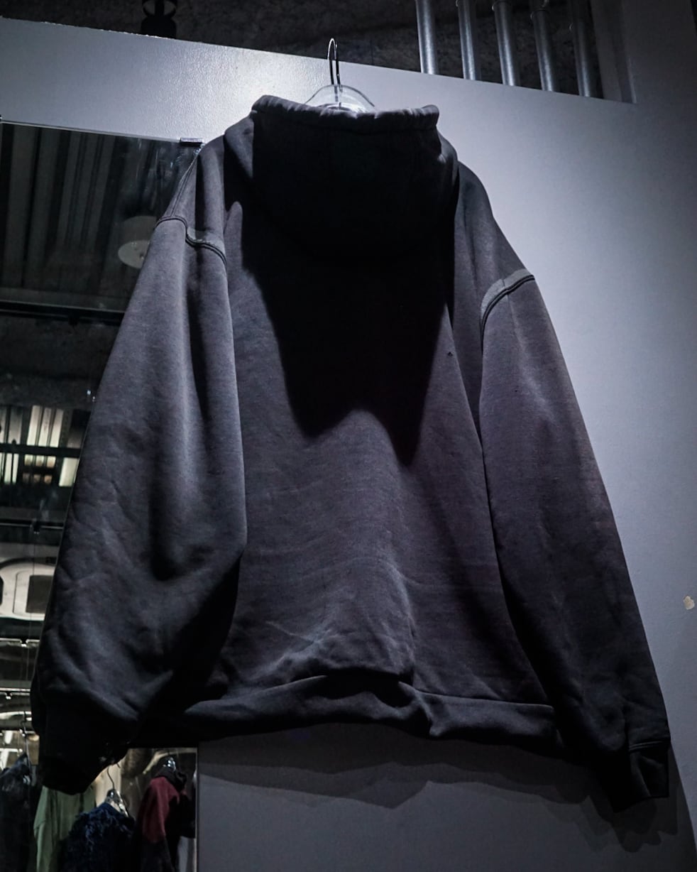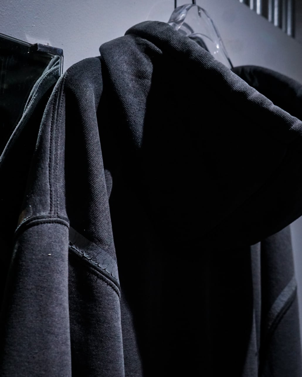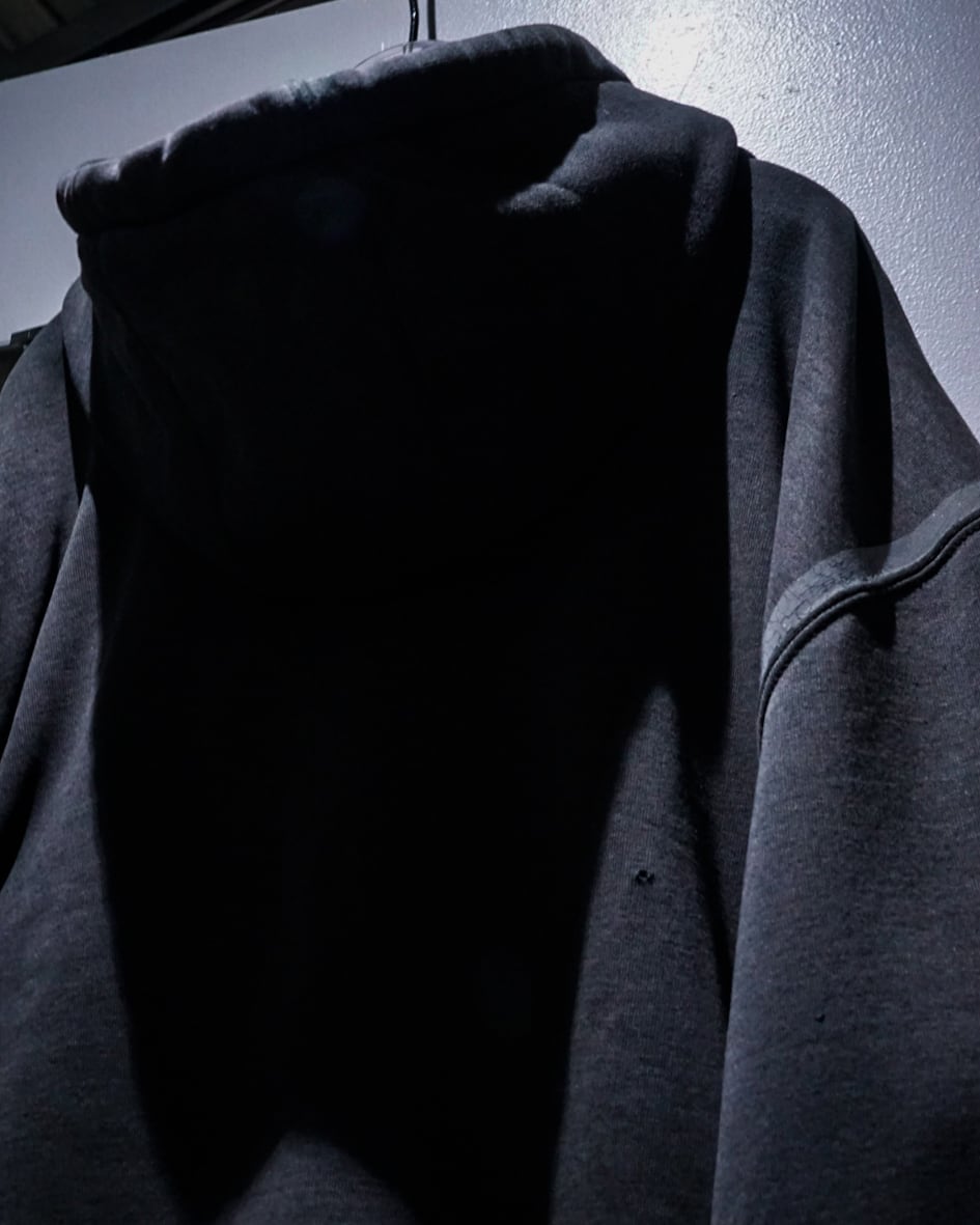 ベースとなるチャコールグレーのボディは、長年の着用によるフェード感がヴィンテージ特有の雰囲気を放ち、単なる古着では終わらない深みを演出しています。