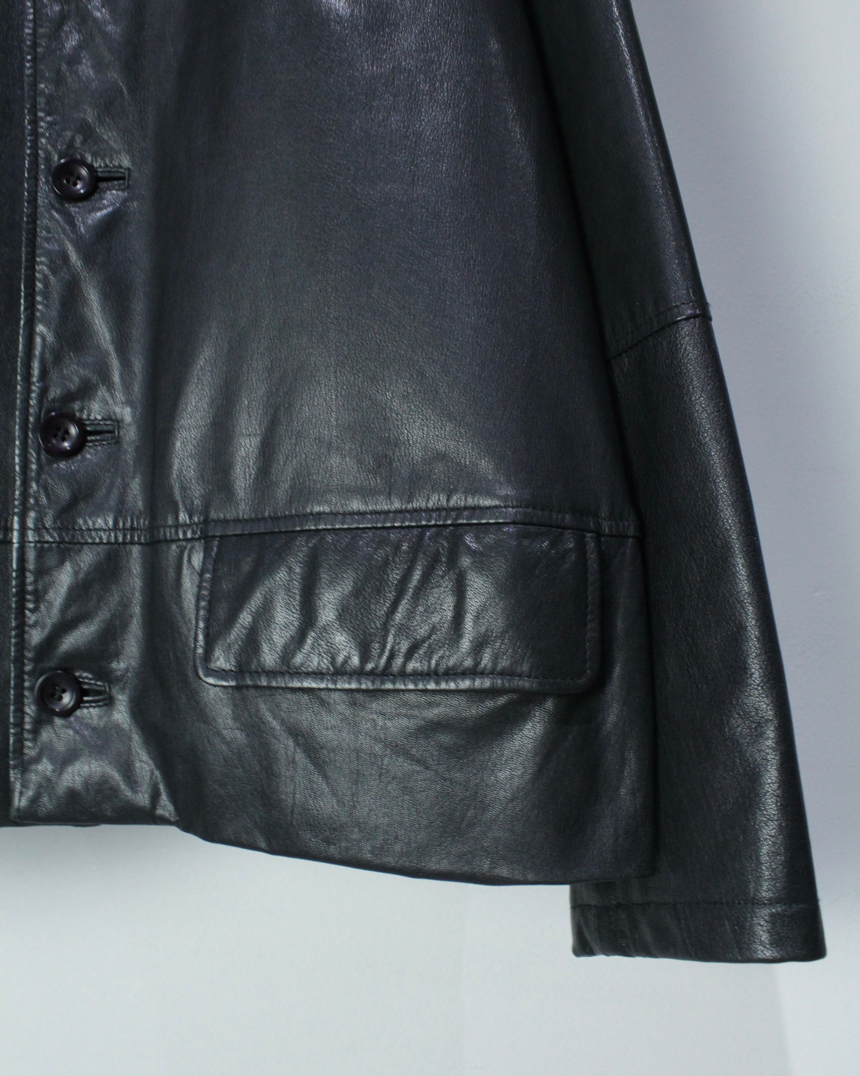 レザー特有の光沢が加わることで、力強さとモードな洗練を両立。シンプルなニットやシャツとのレイヤードはもちろん、スラックスやデニムに合わせるだけでスタイルを格上げしてくれます。