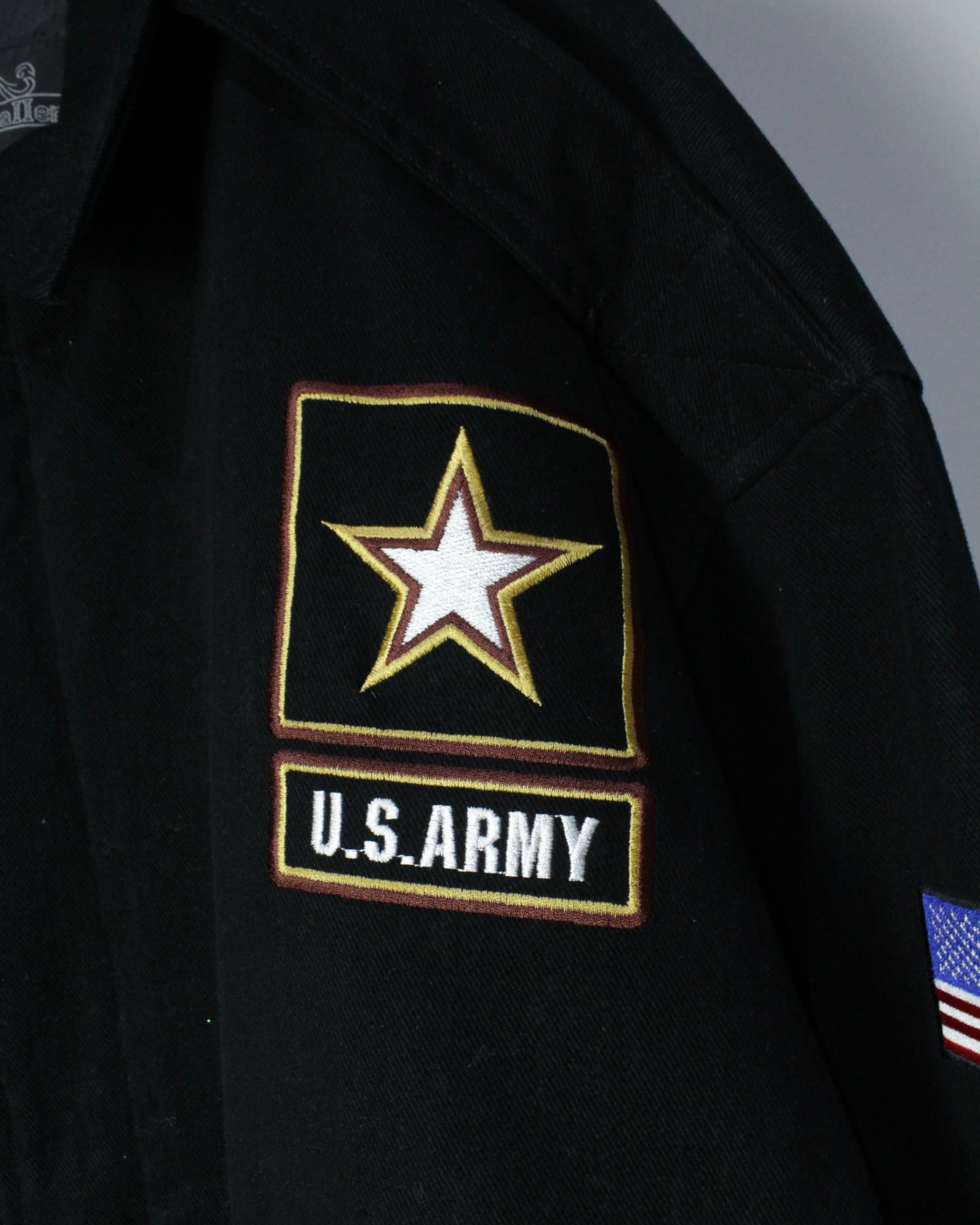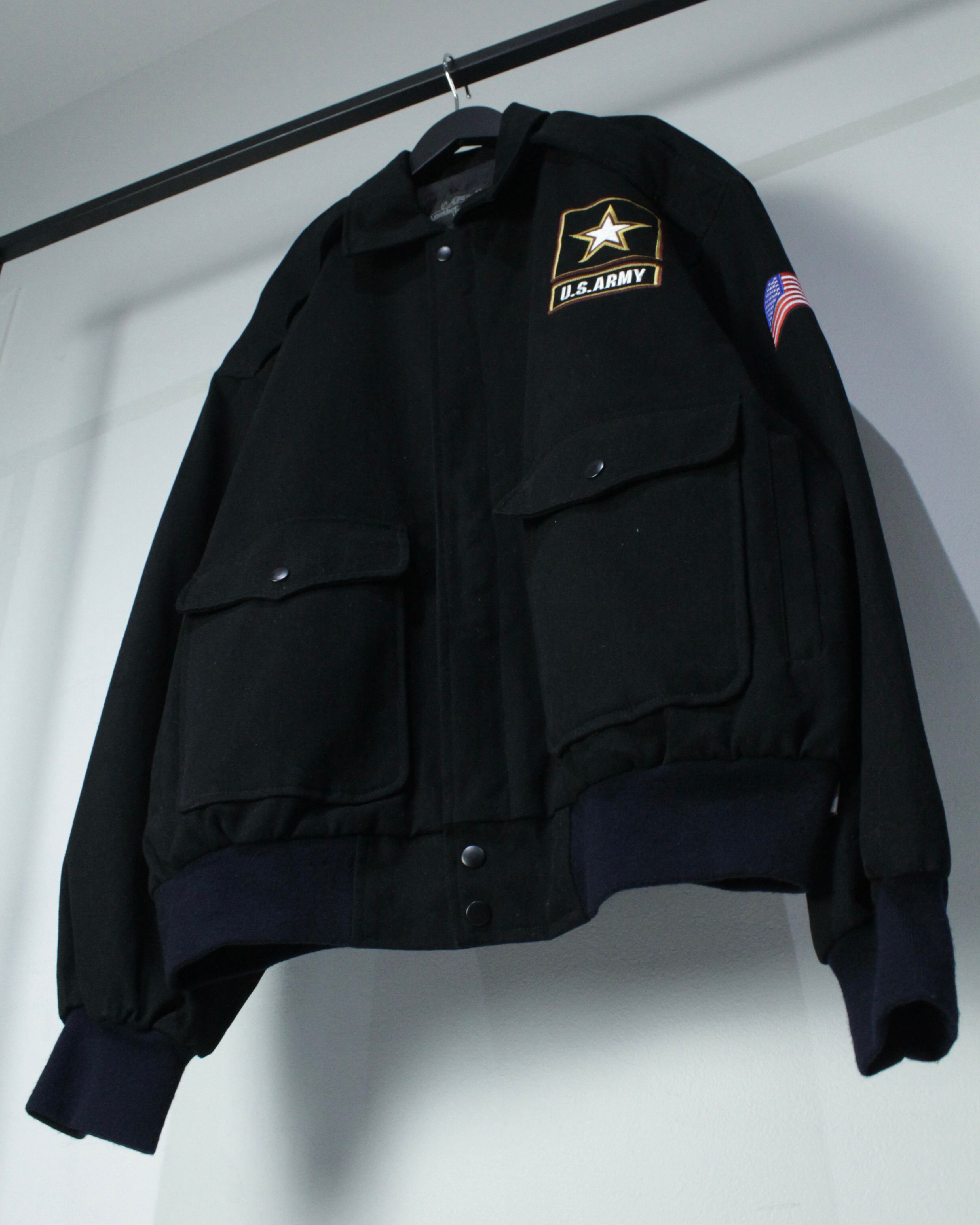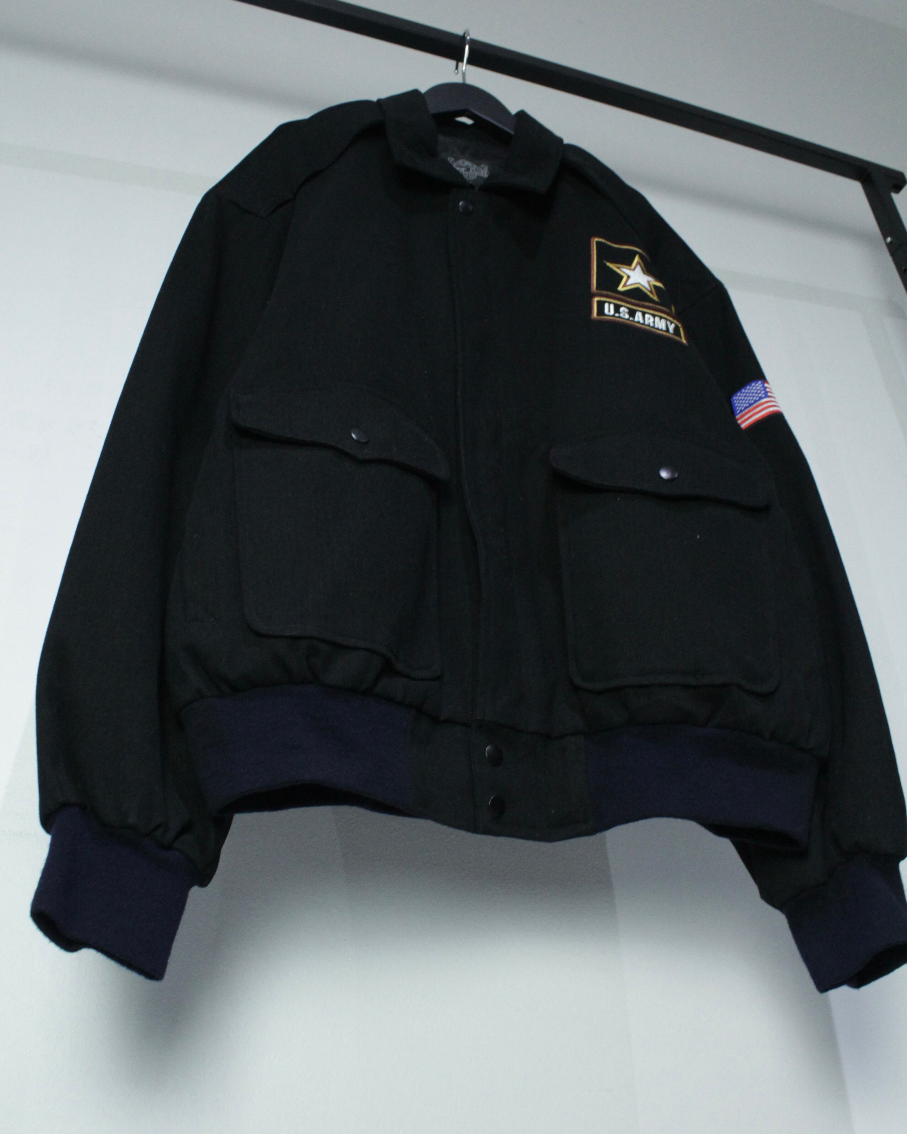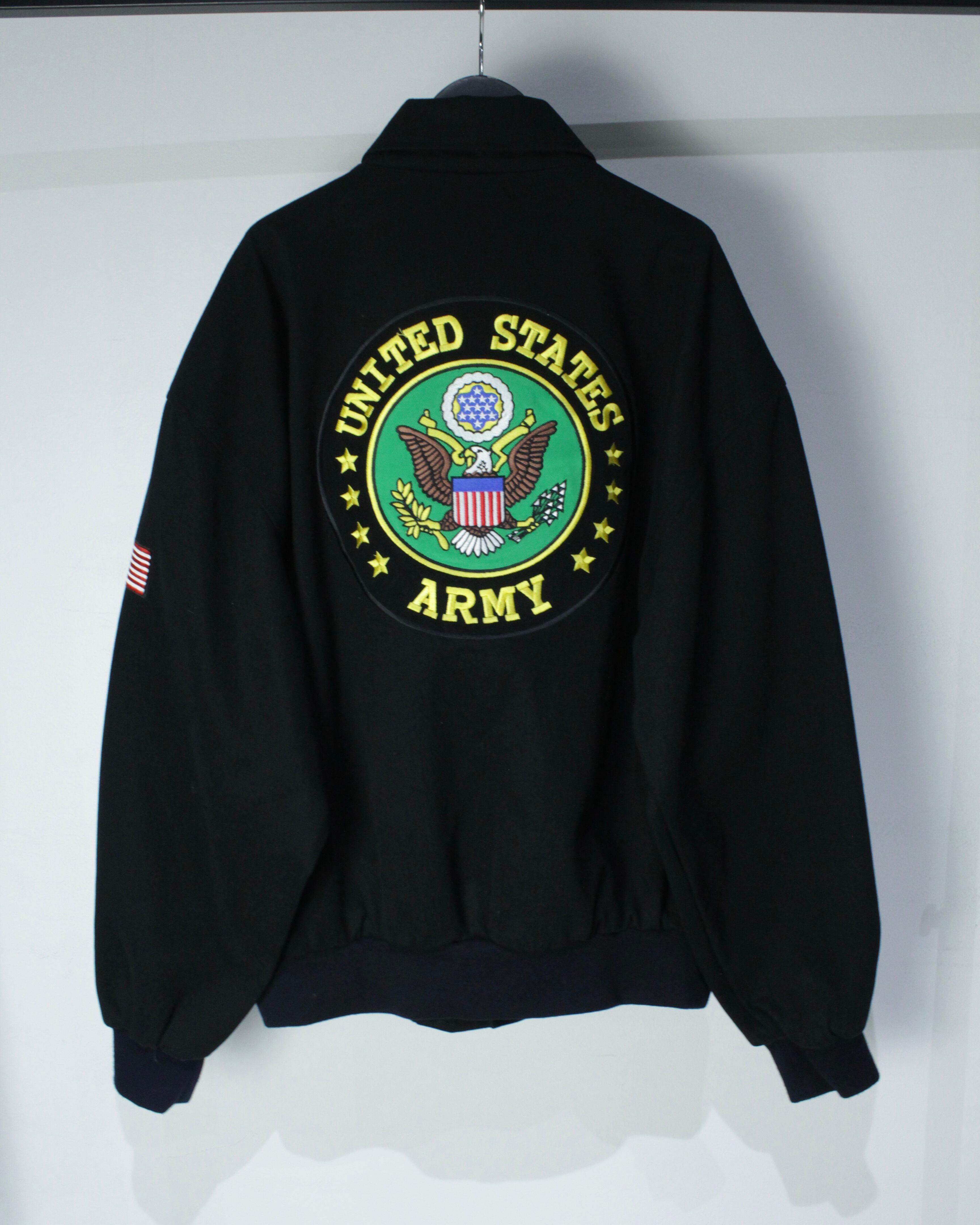 ブラックの生地をキャンバスに、フロントには「U.S.ARMY」ロゴとスターを配したアイコニックなパッチ、袖には星条旗ワッペン、そして背面には圧倒的存在感の特大エンブレム刺繍をON。全方位から視線を惹きつける、ミリタリーとストリートの融合を体現した1着。