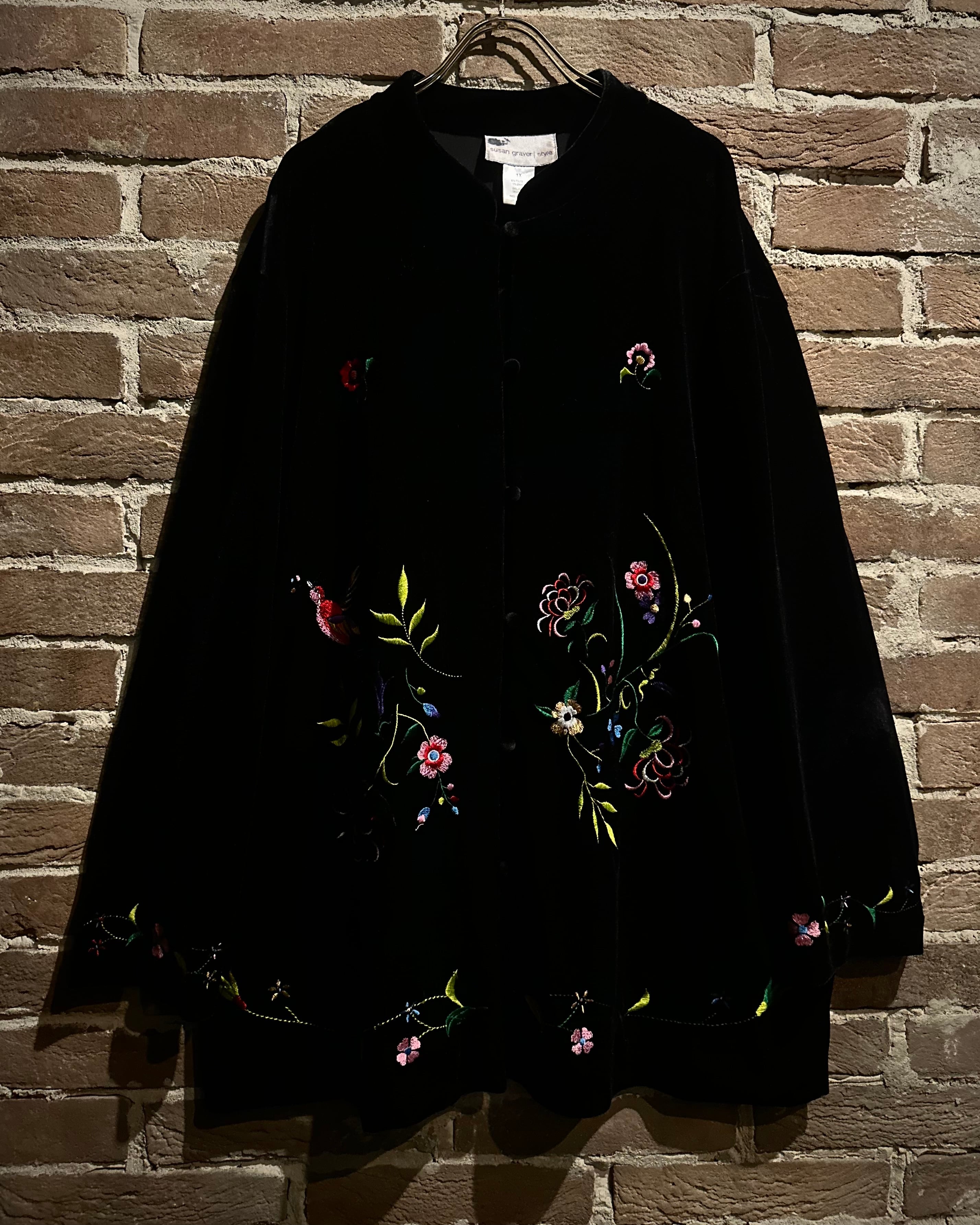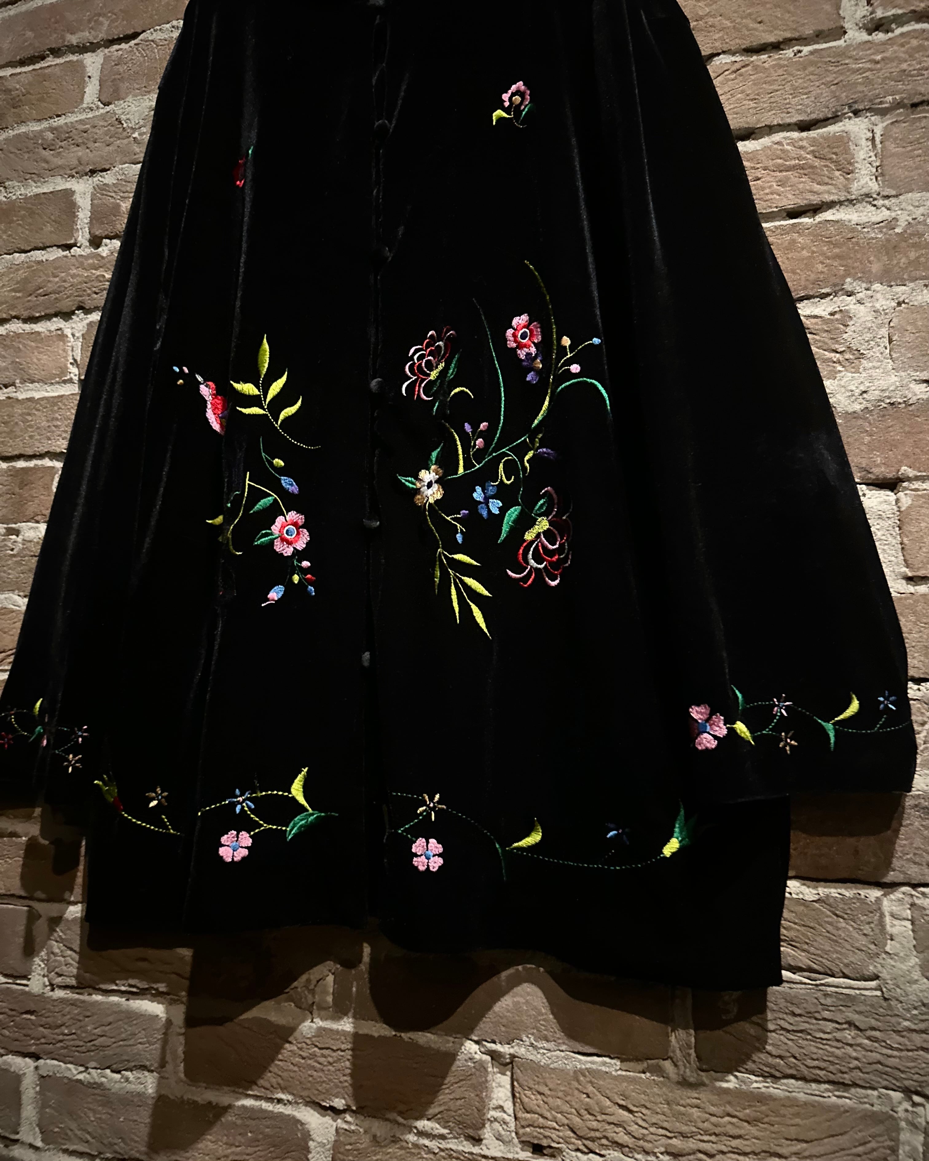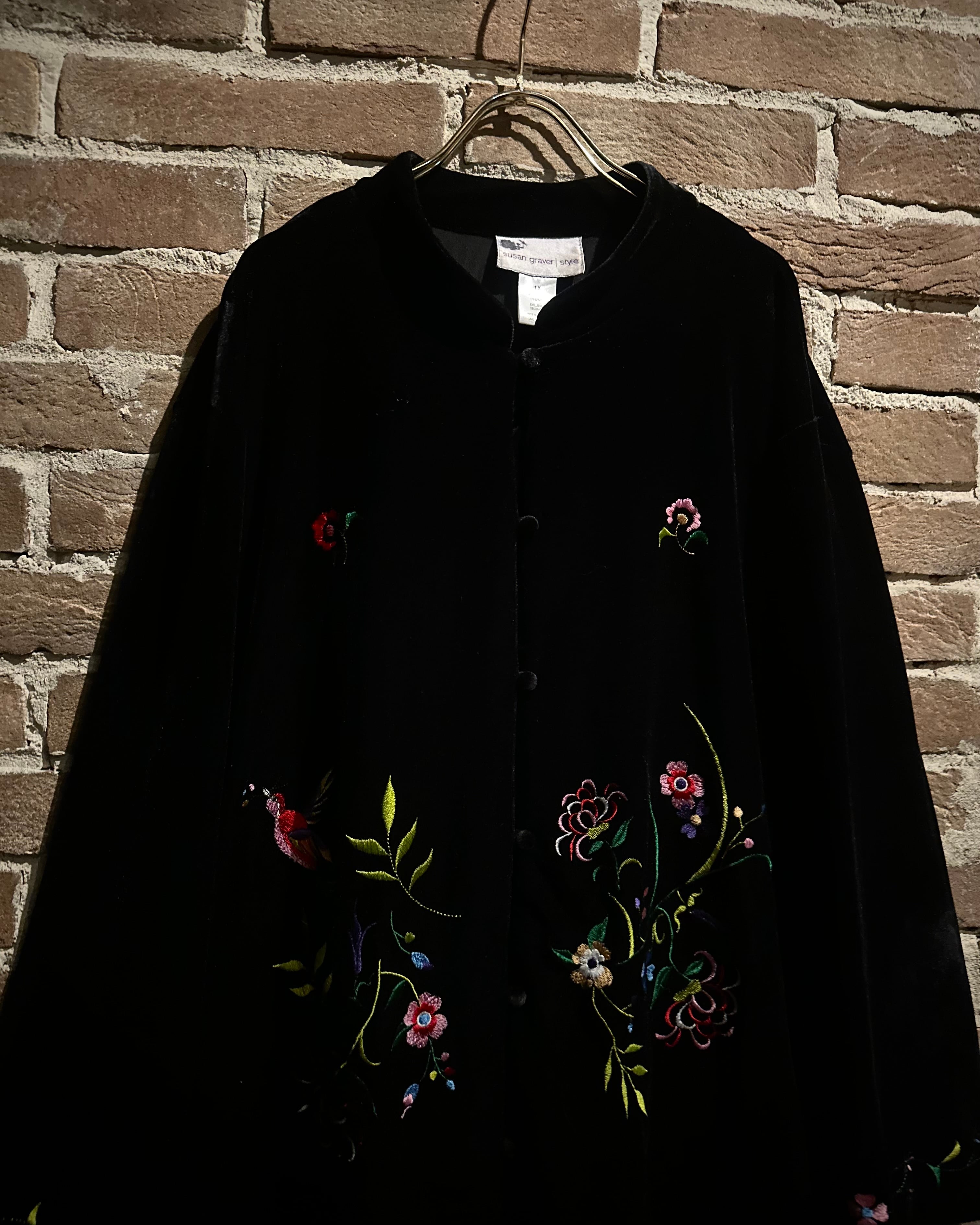 ベロアと刺繍を掛け合わせた、当店らしいムード漂う1着です。