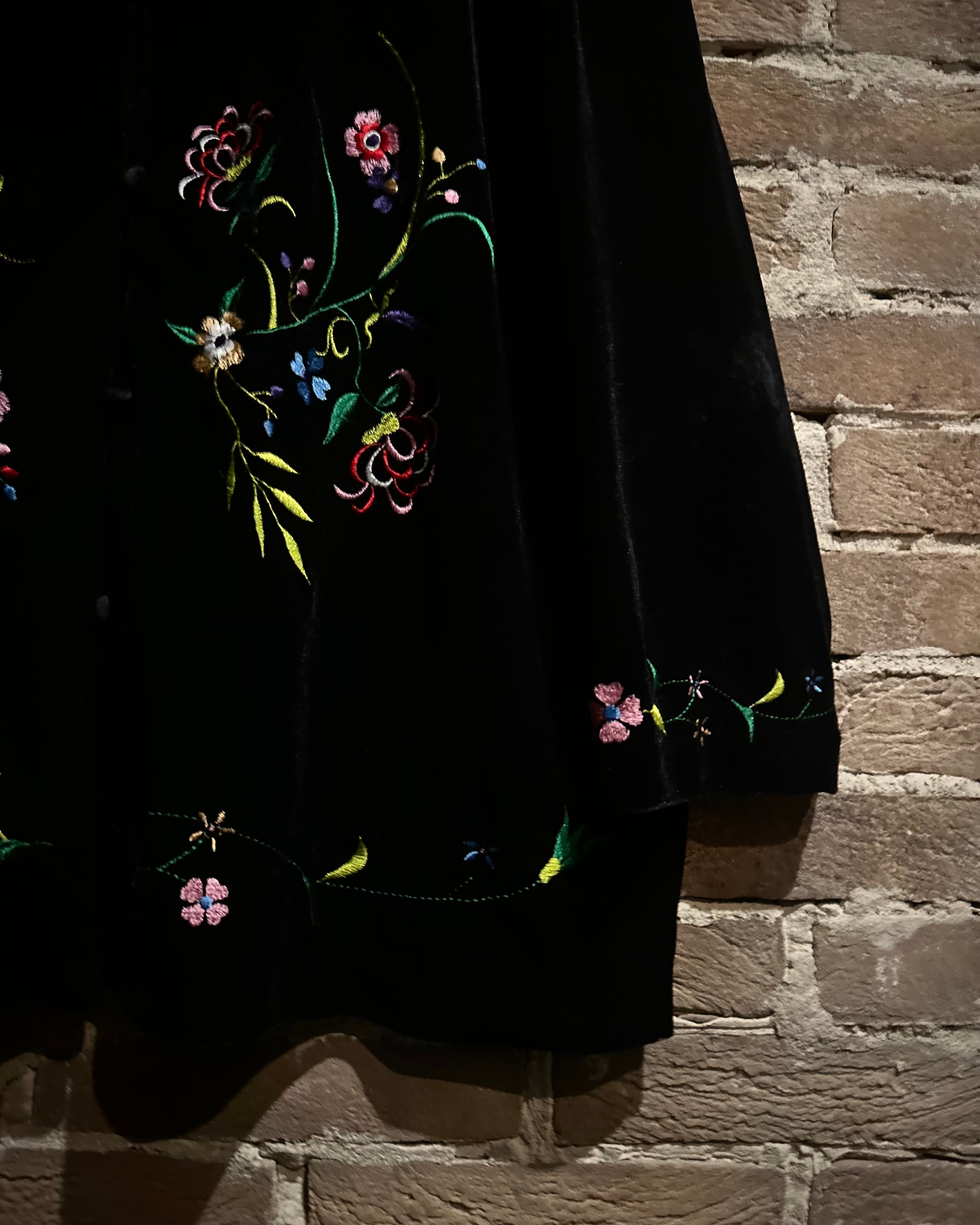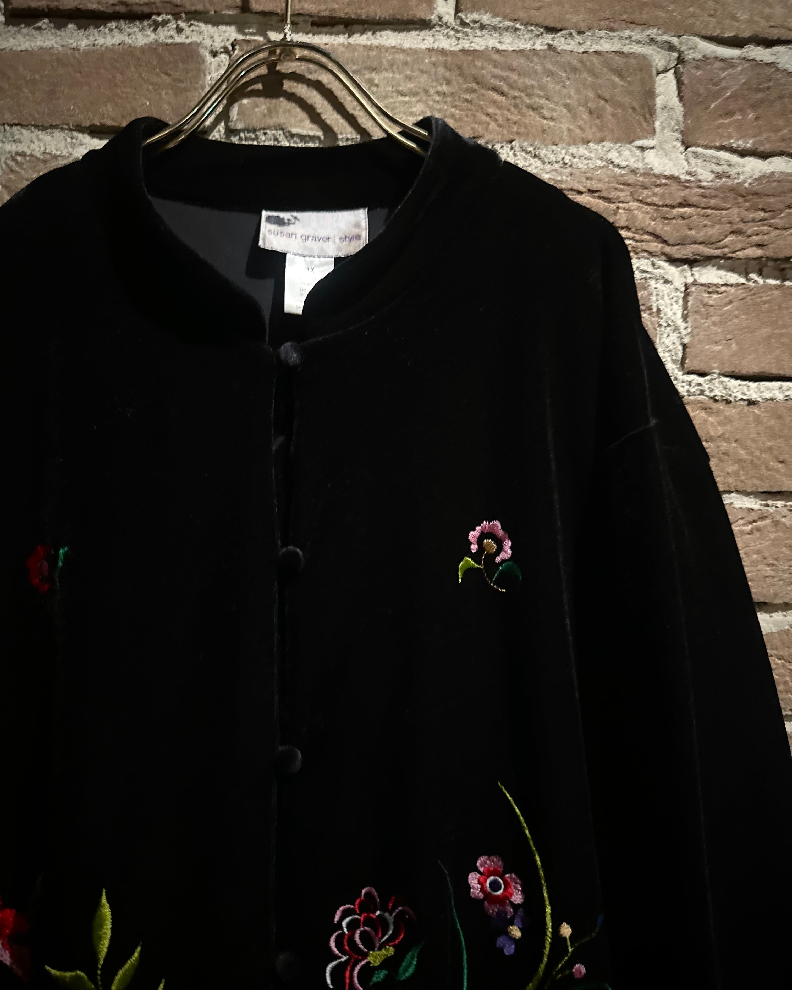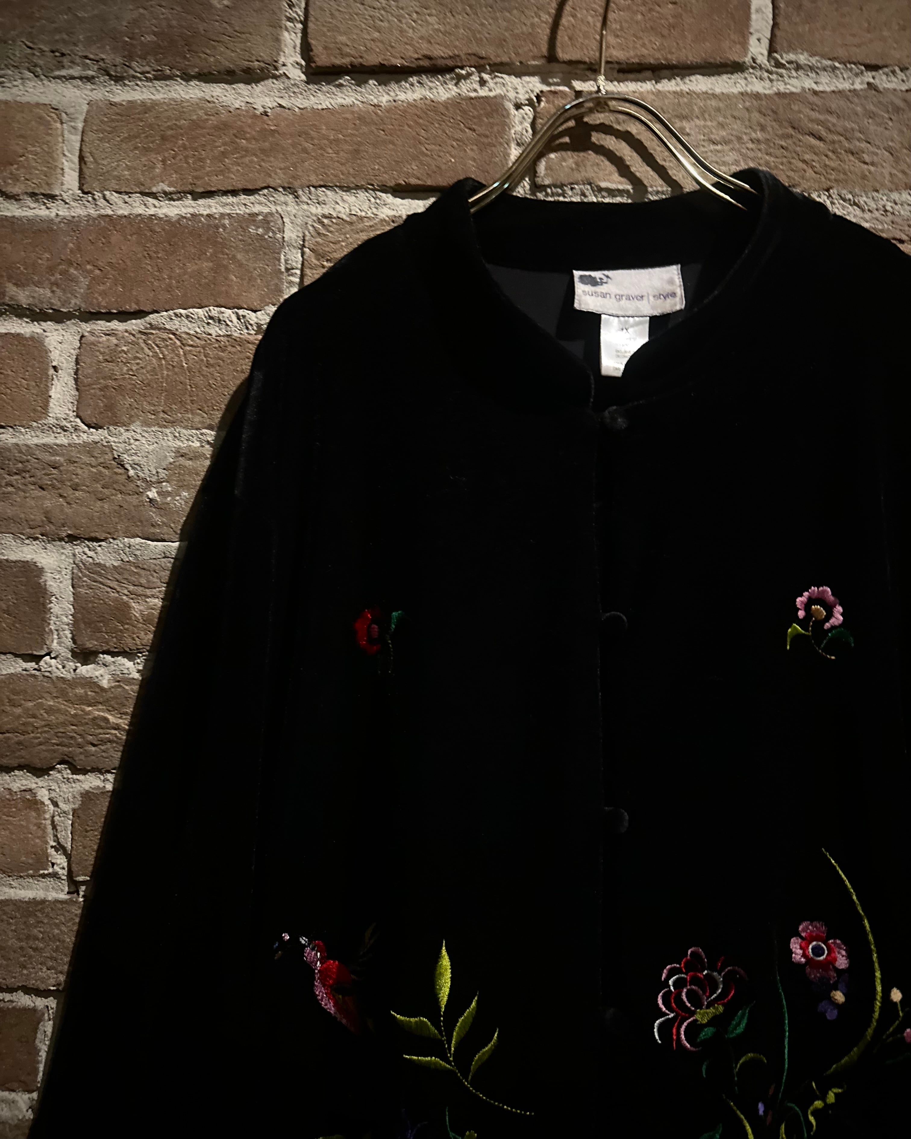 ベロアと刺繍を掛け合わせた、当店らしいムード漂う1着です。