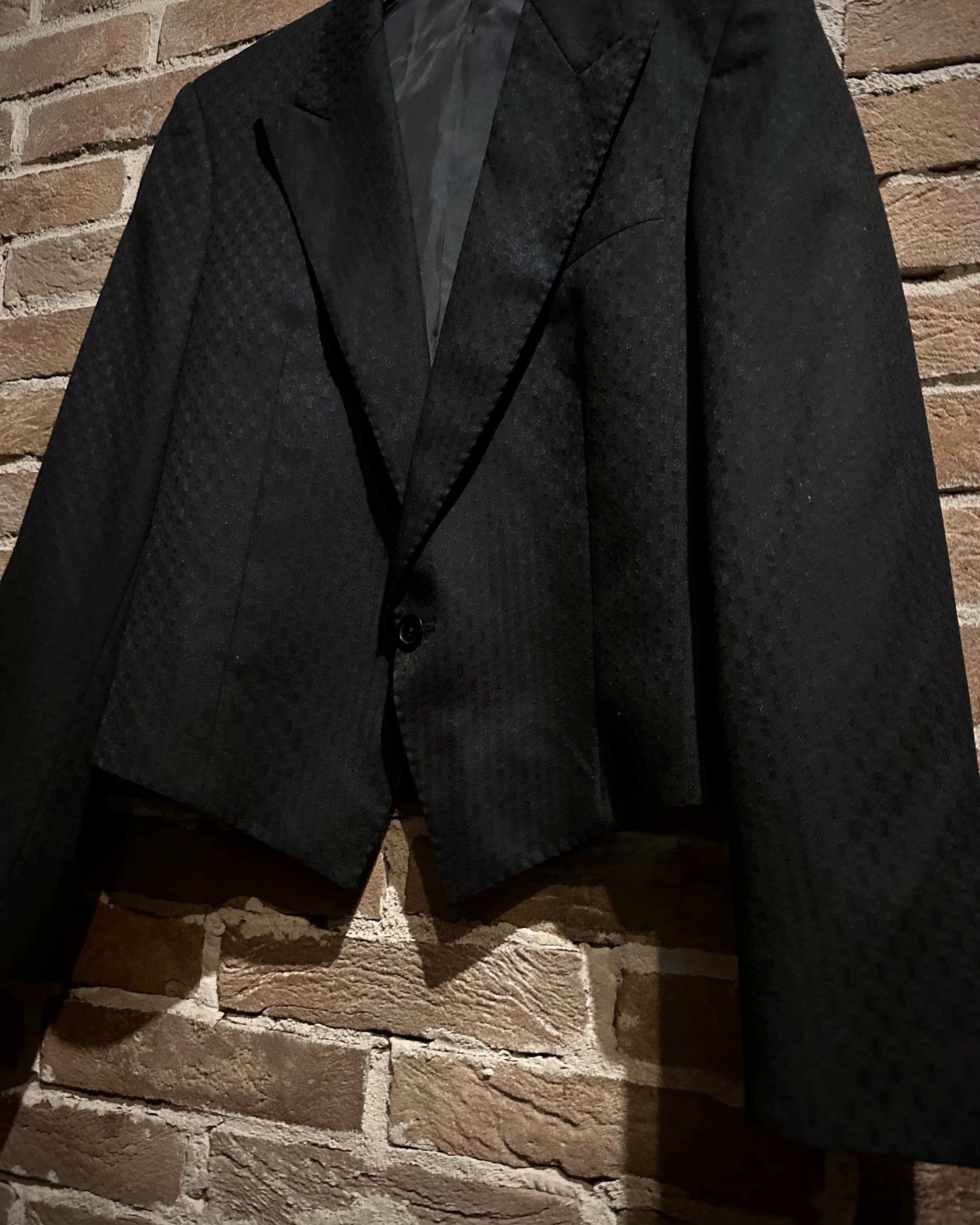 古着市場においても短丈のテーラードジャケットは流通が少なく、その独自の存在感は他に替えの効かない稀少性を誇ります。