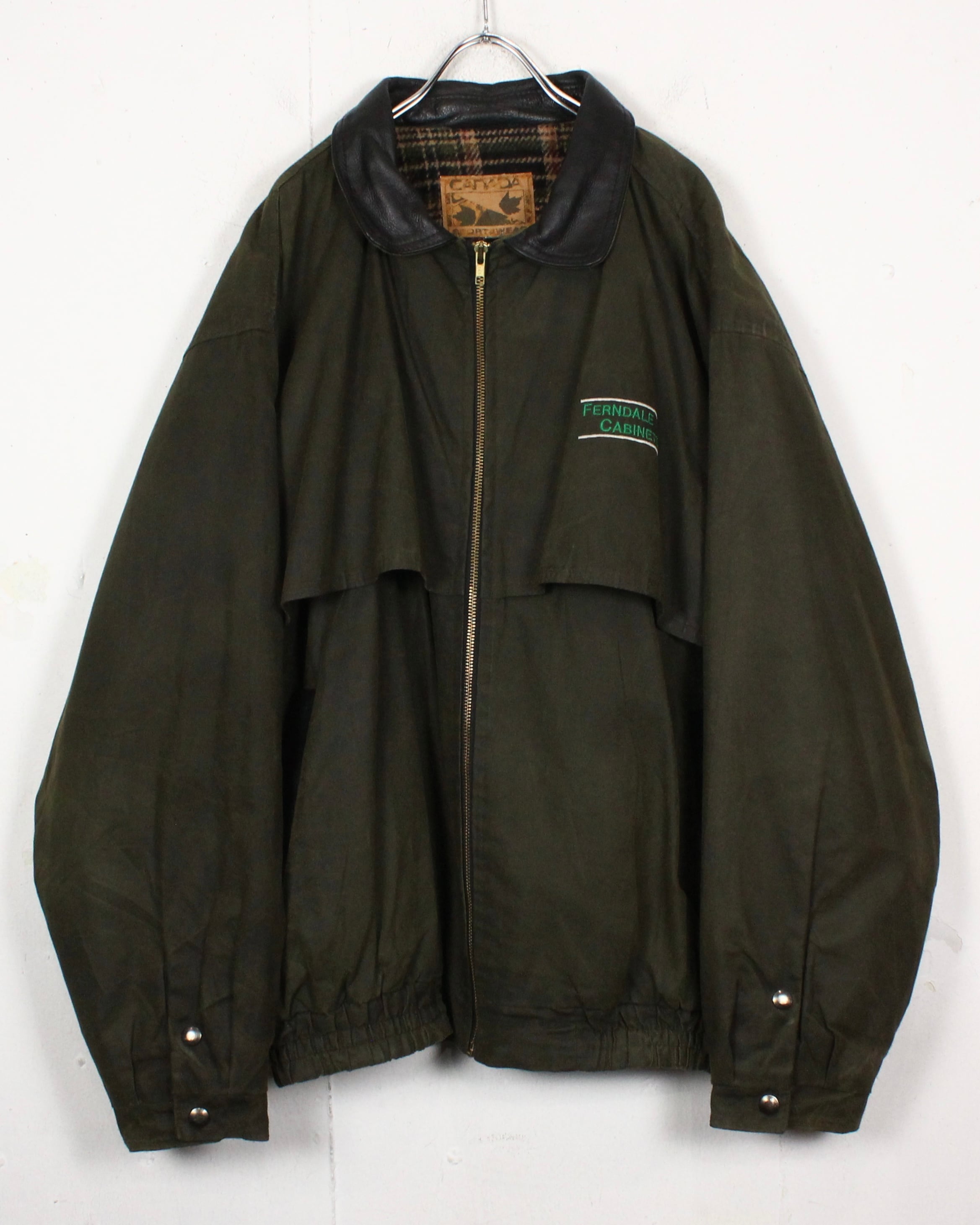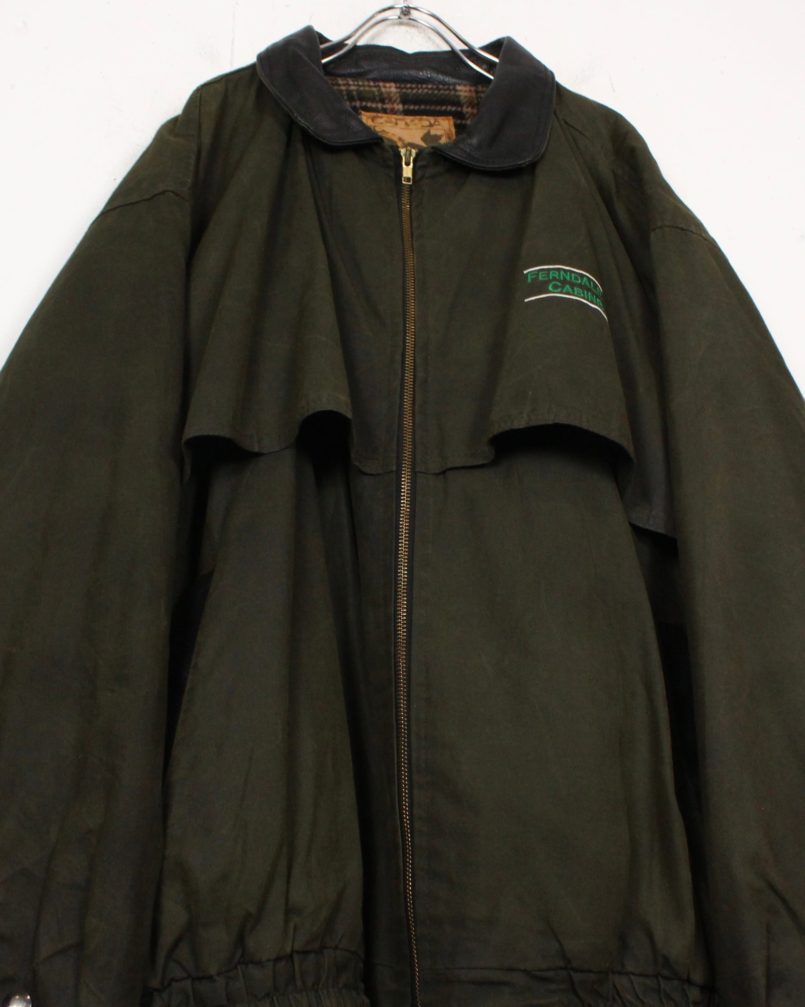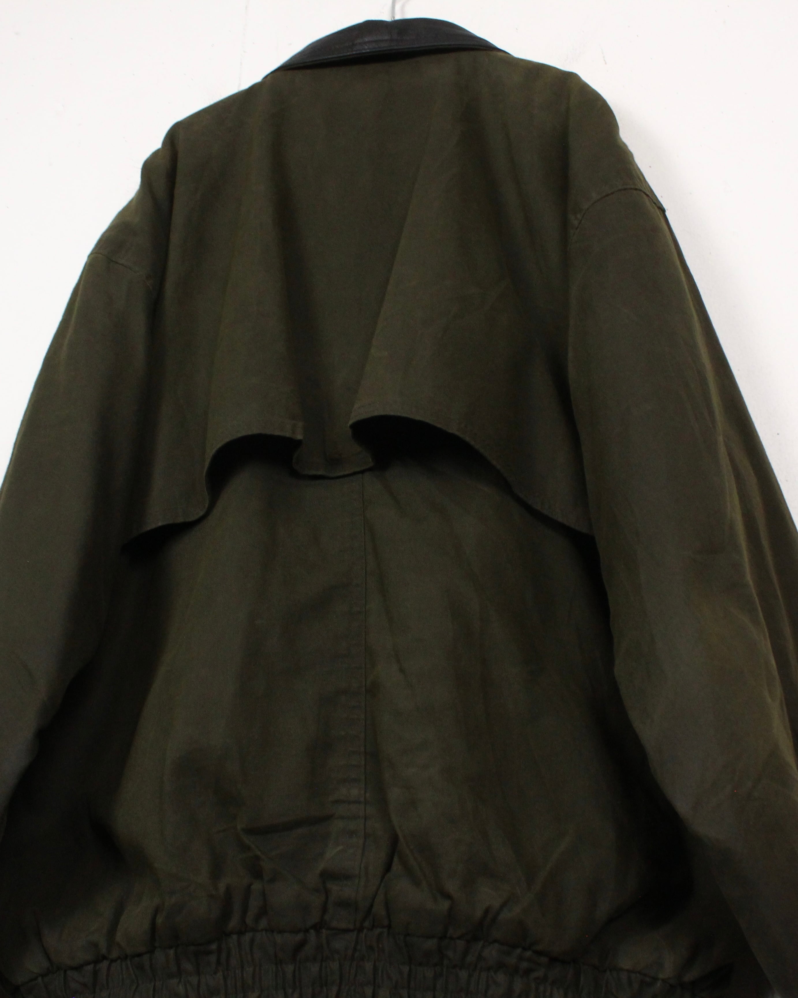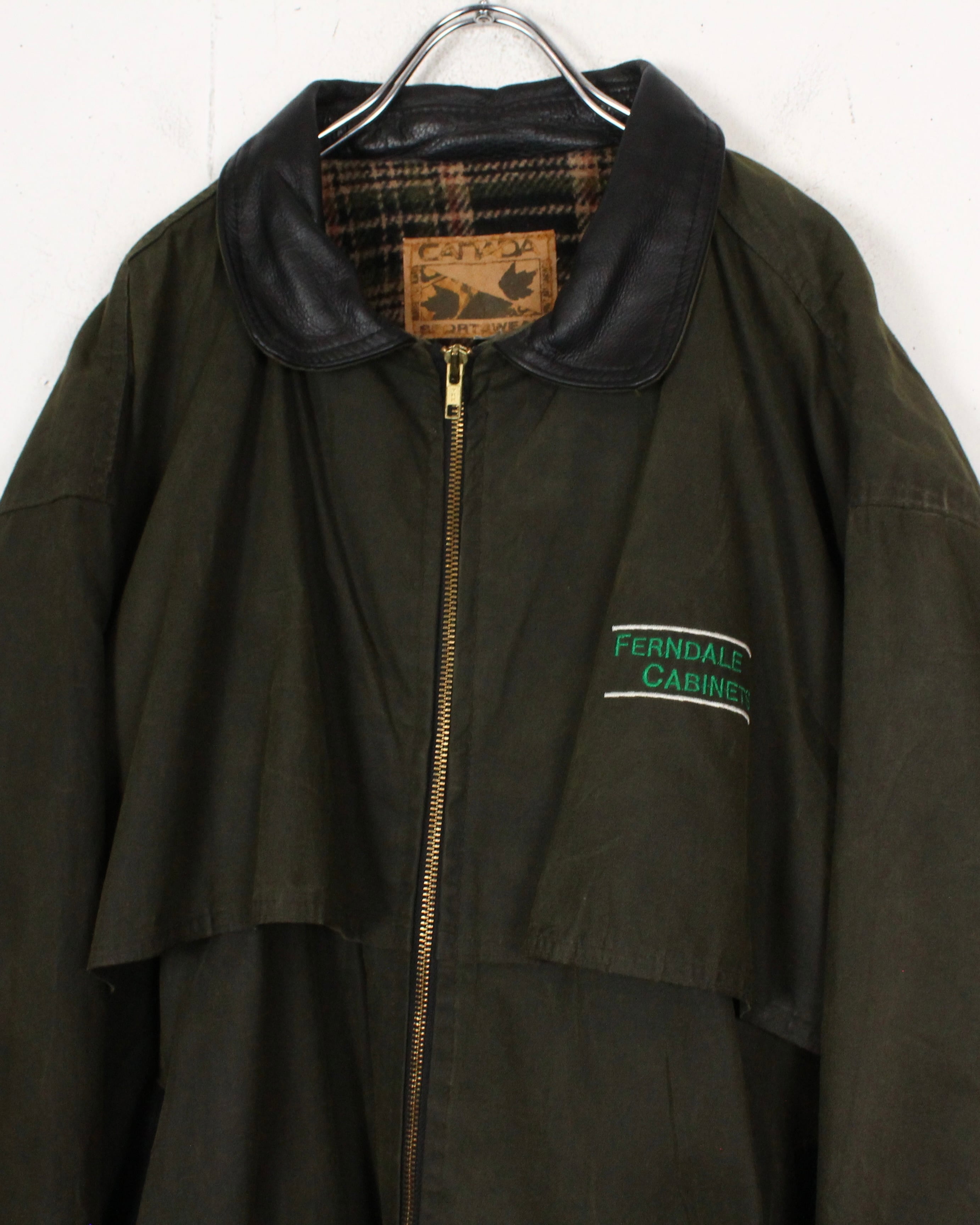 無骨で実用的な表情を見せる、レザーを切り替えたダック生地のオイルドジャケット。