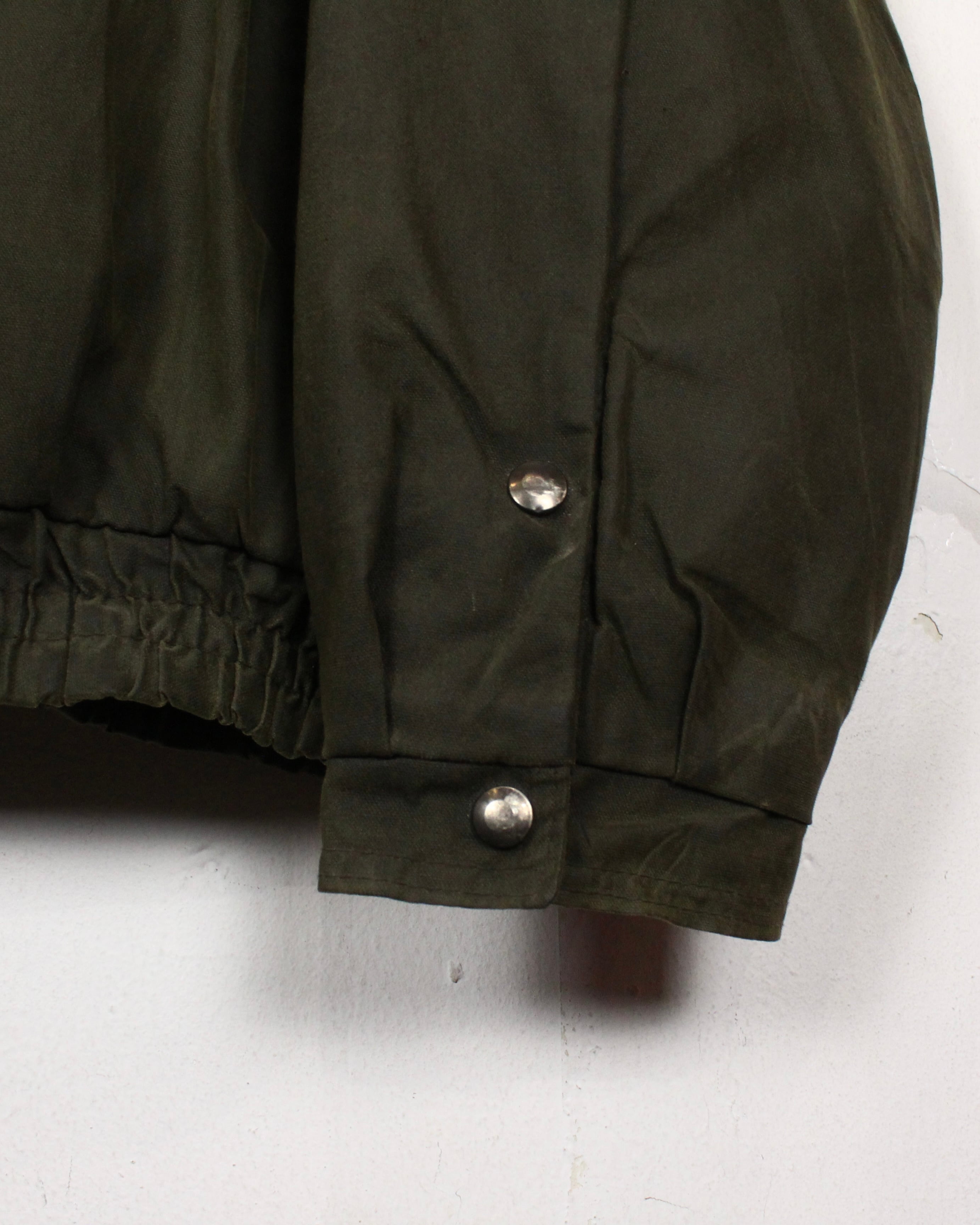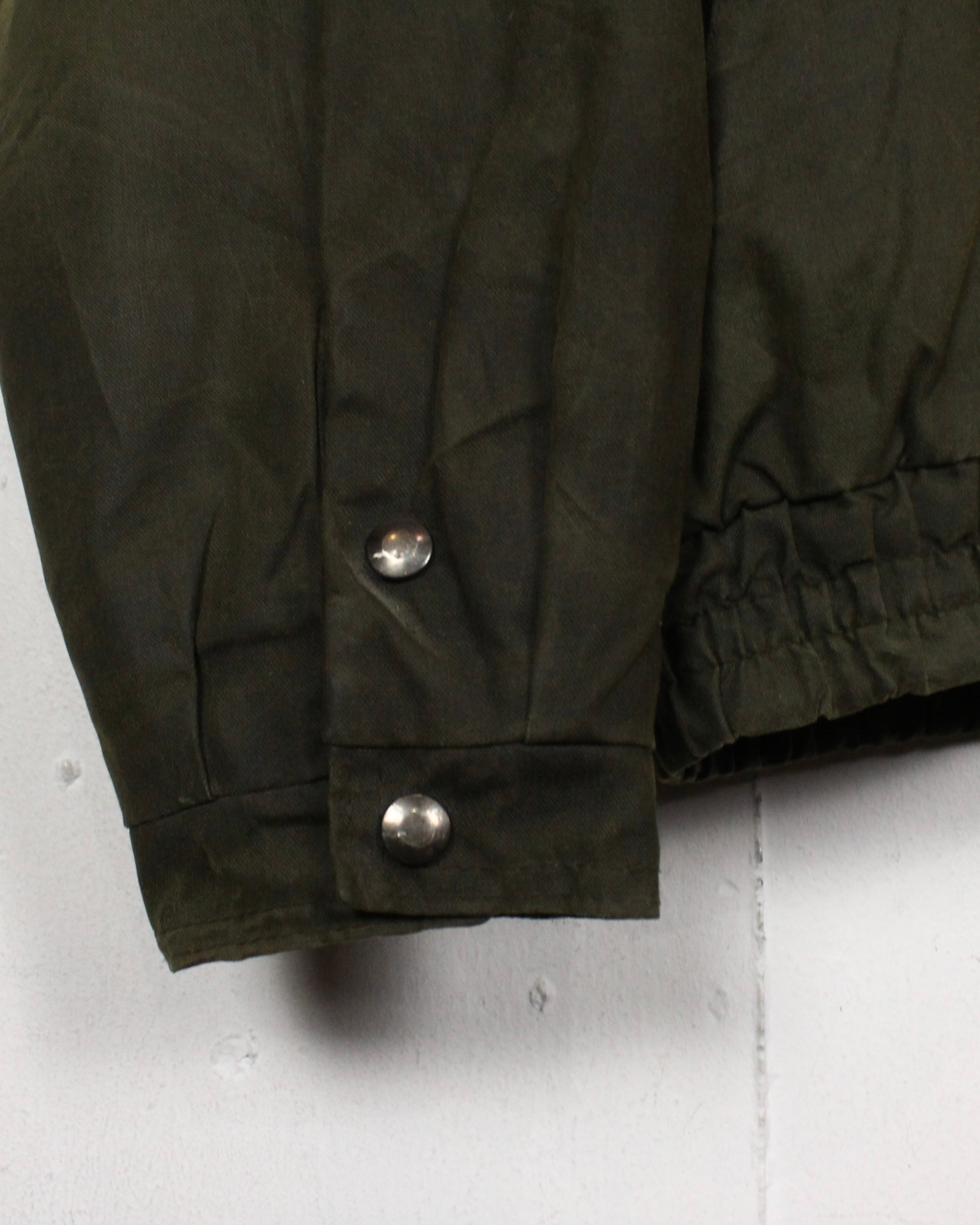 フロントに堅牢なメタルジップ、ボディ前後にはストームヨークを搭載。裾周りはリブが効いており、丸みを帯びたシルエットがクラシックな佇まいを引き立てます。内側にはチェックパターンのウールライニングを配し、防寒性はもちろん、視覚的なアクセントとしても魅力的。