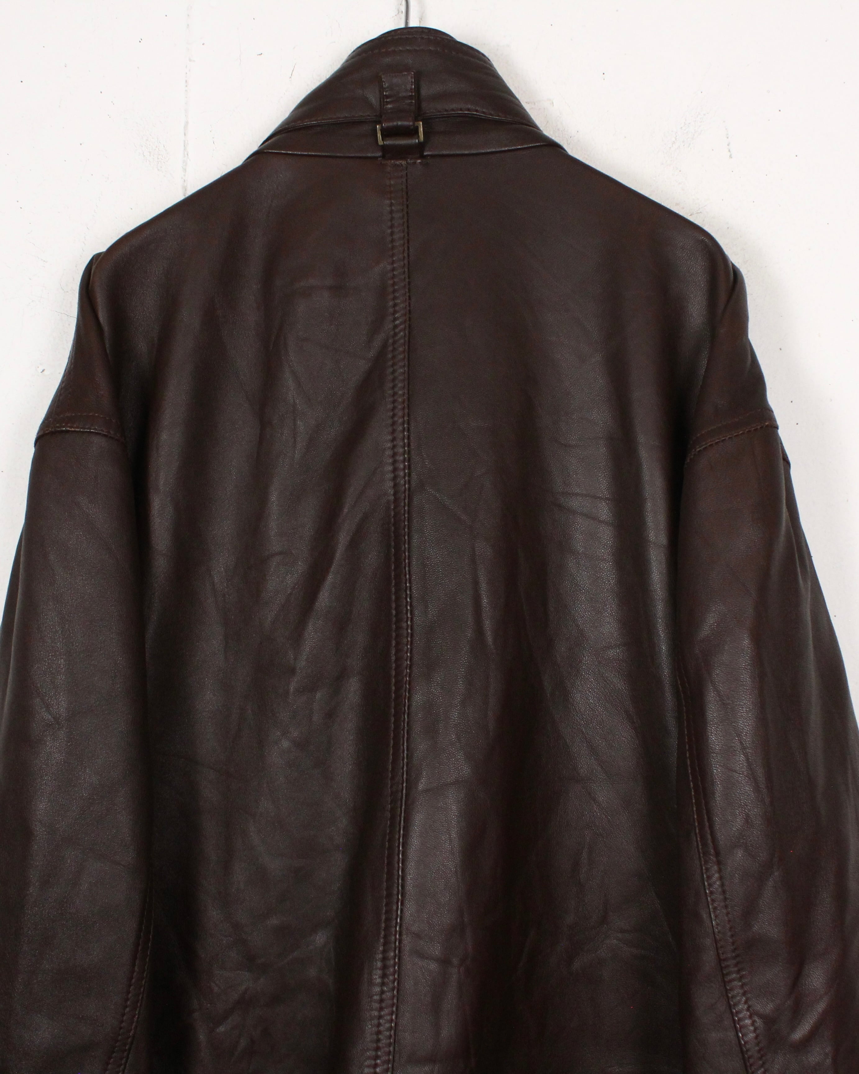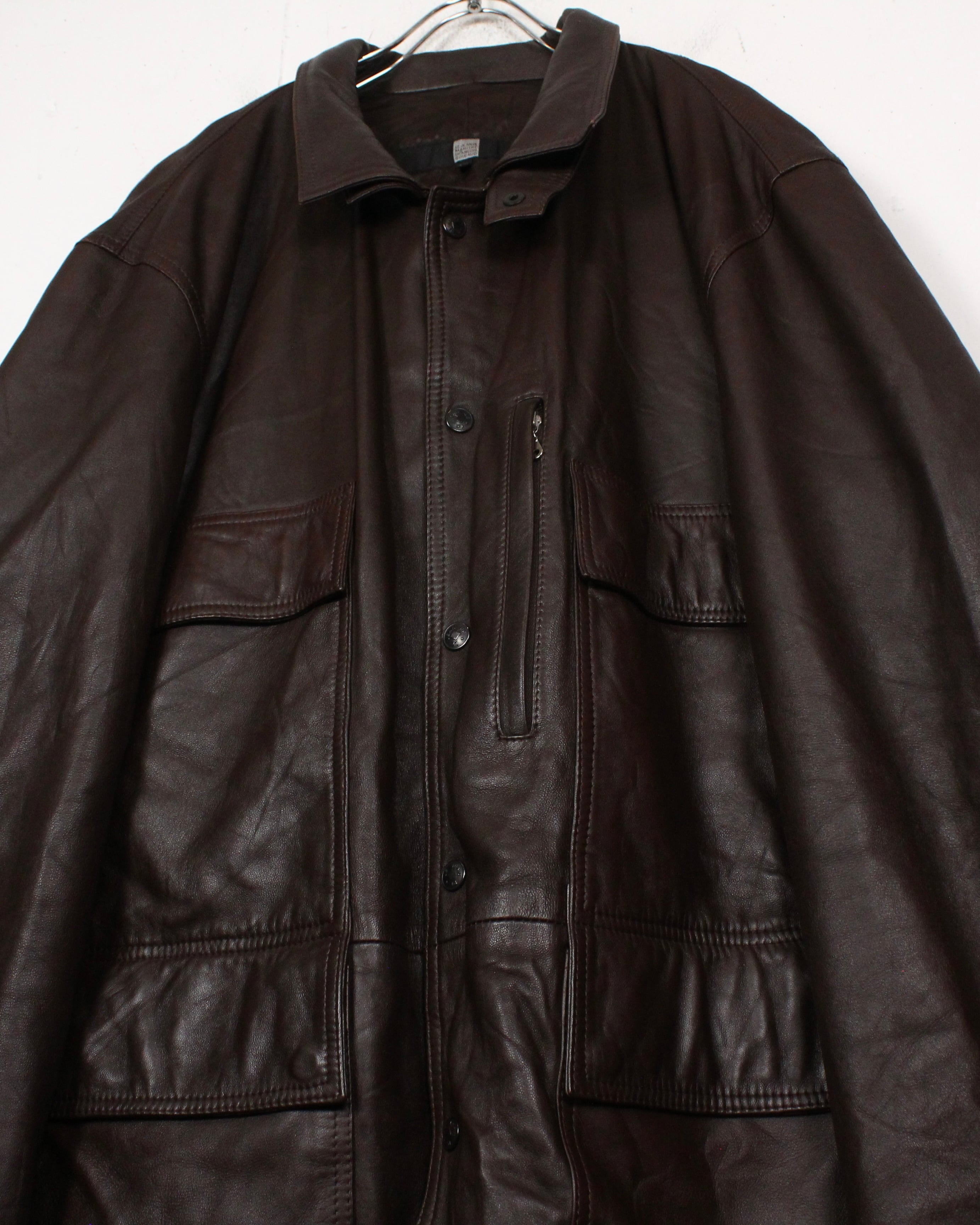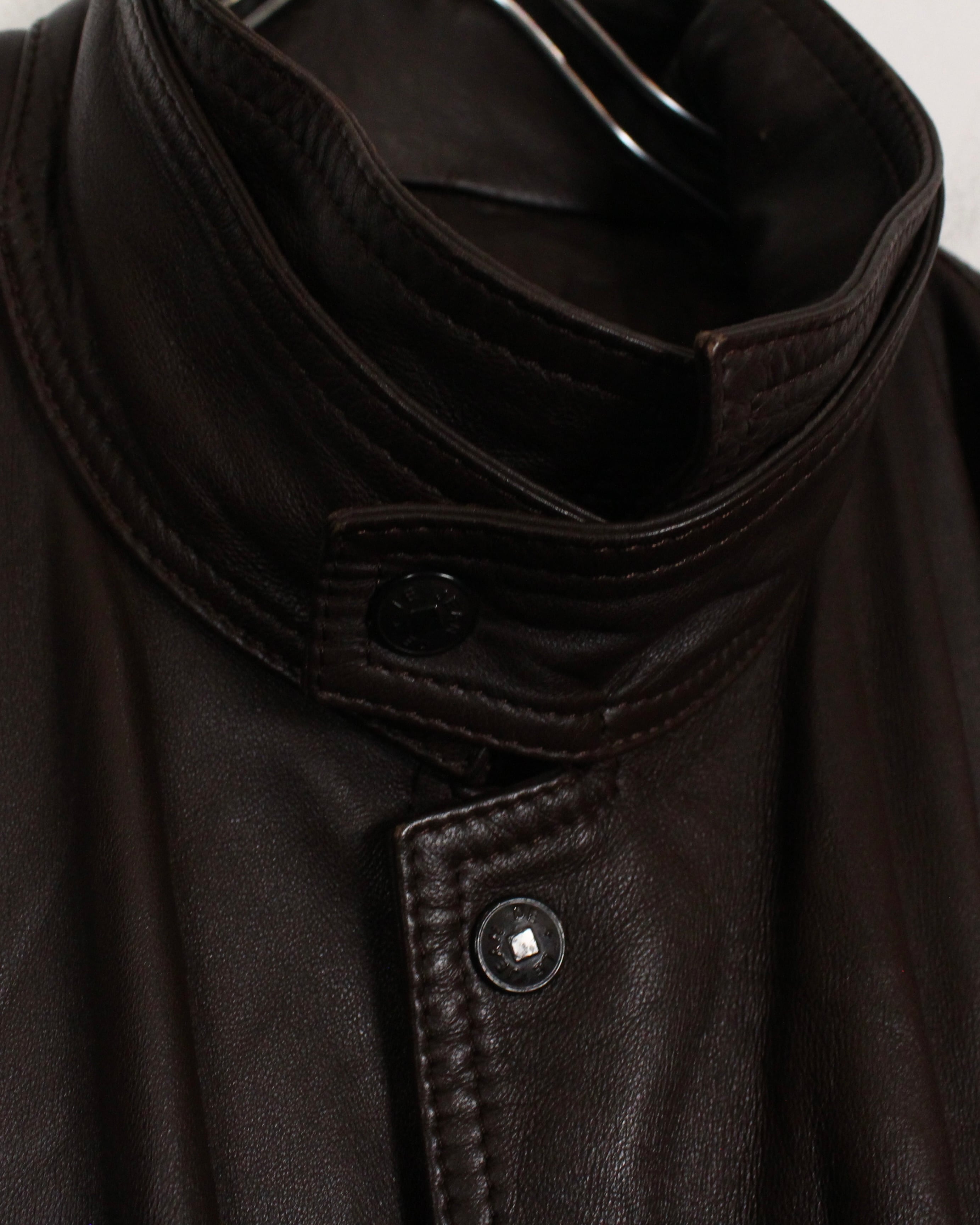 深みのあるダークブラウンのラムレザーは、手に取った瞬間に伝わる重厚感と柔らかさを併せ持ち、リアルレザーならではの経年変化を存分に味わえる極上の質感。光の加減で浮かび上がる鈍い光沢は、フェイクには再現できない奥行きを放ち、着込むほどに身体に馴染み、唯一無二の表情に育ててくれます。