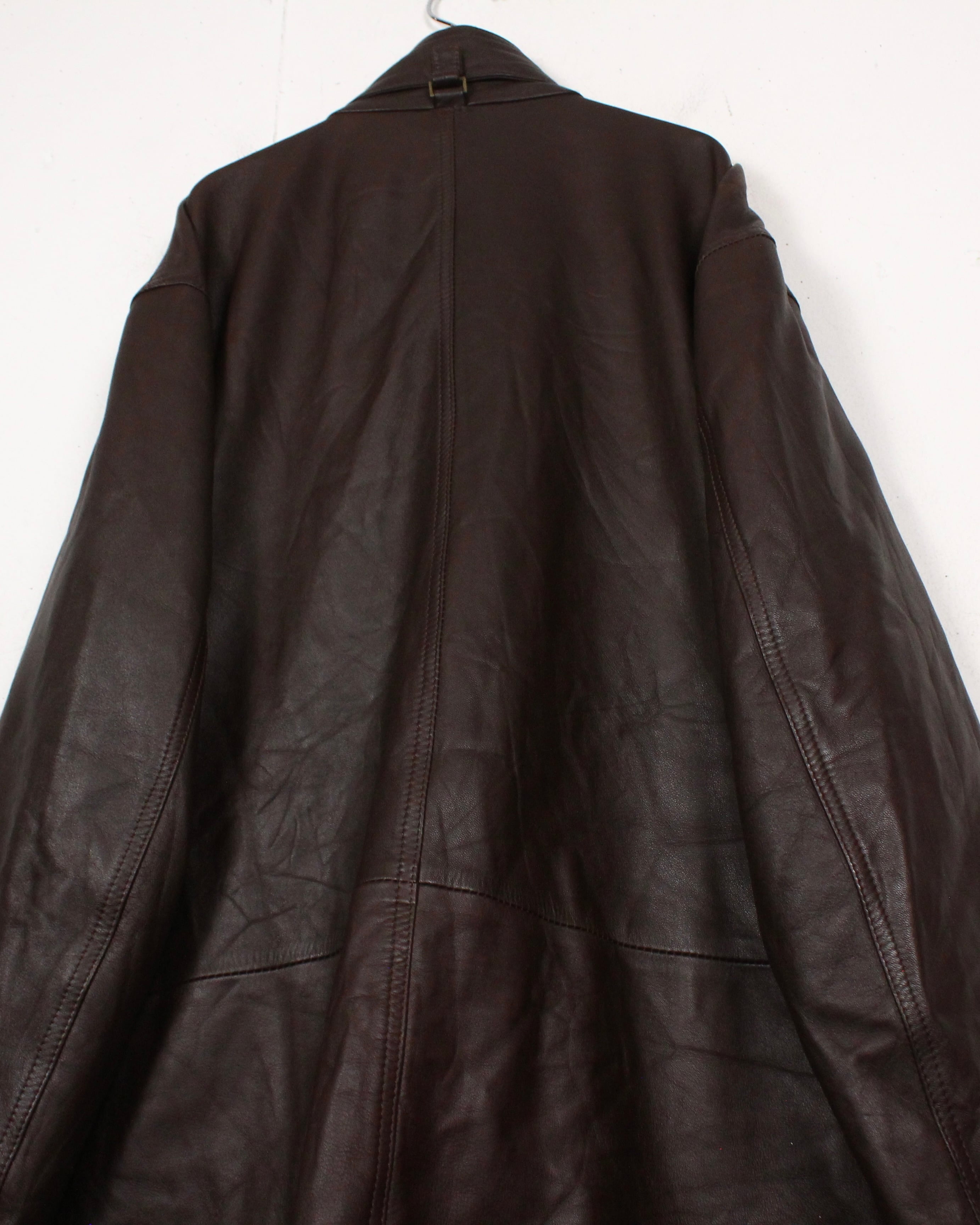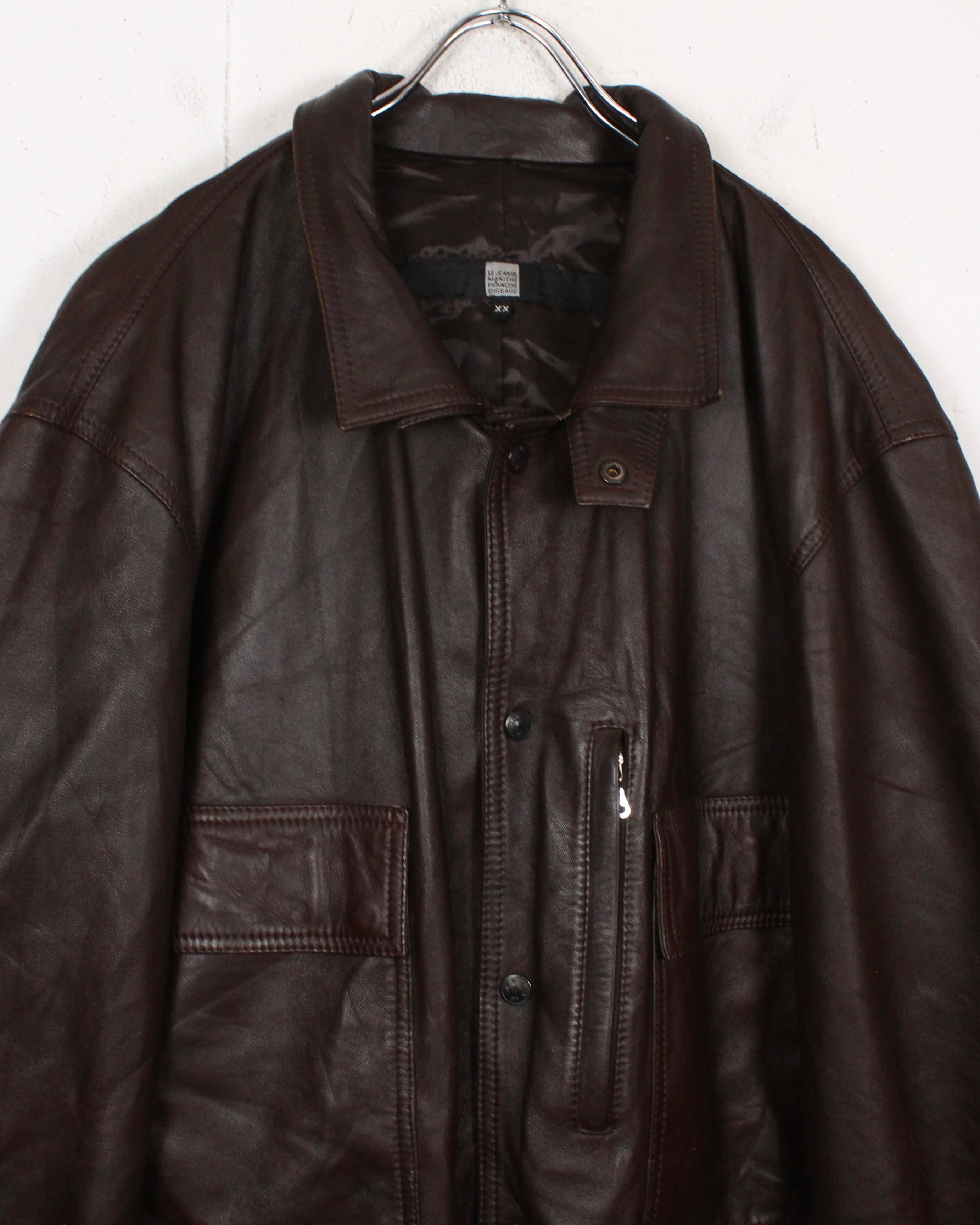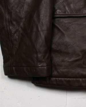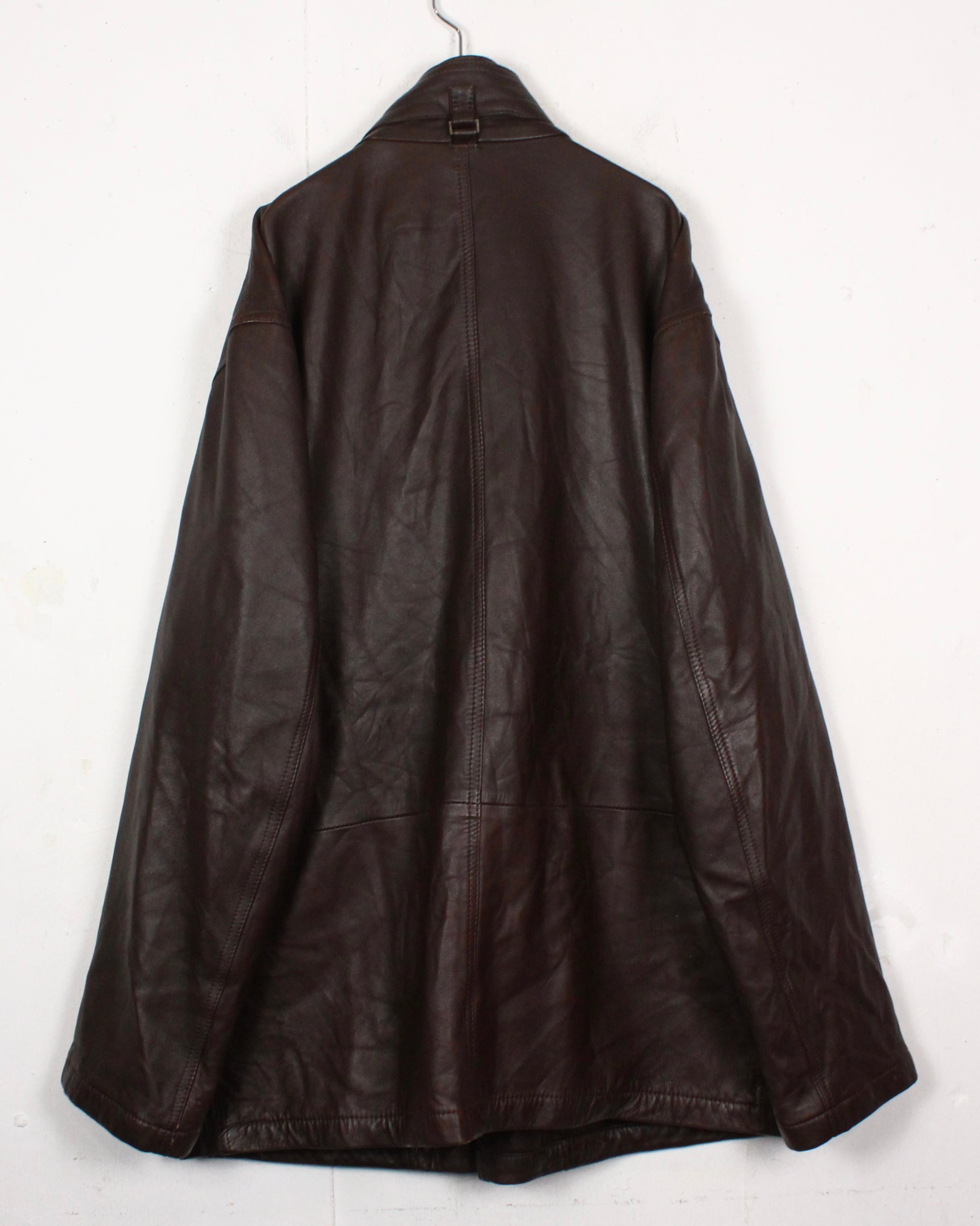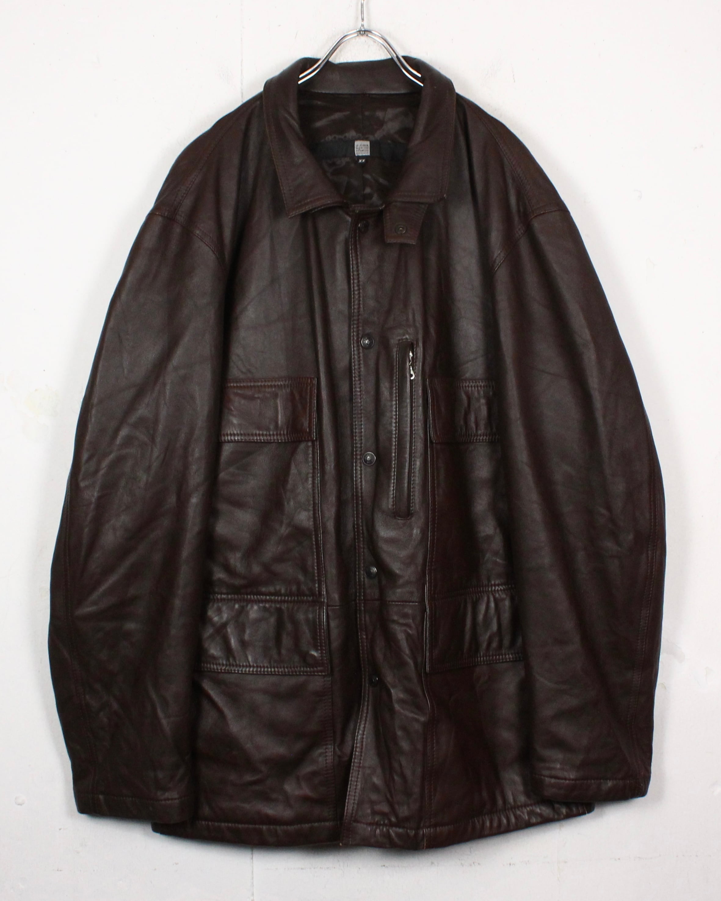 深みのあるダークブラウンのラムレザーは、手に取った瞬間に伝わる重厚感と柔らかさを併せ持ち、リアルレザーならではの経年変化を存分に味わえる極上の質感。光の加減で浮かび上がる鈍い光沢は、フェイクには再現できない奥行きを放ち、着込むほどに身体に馴染み、唯一無二の表情に育ててくれます。
