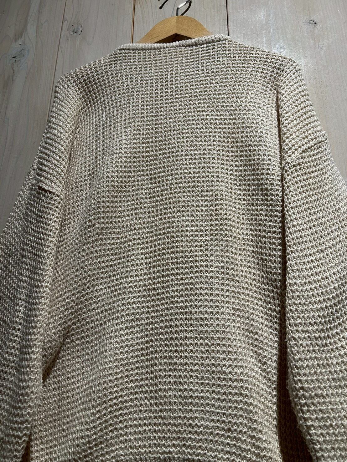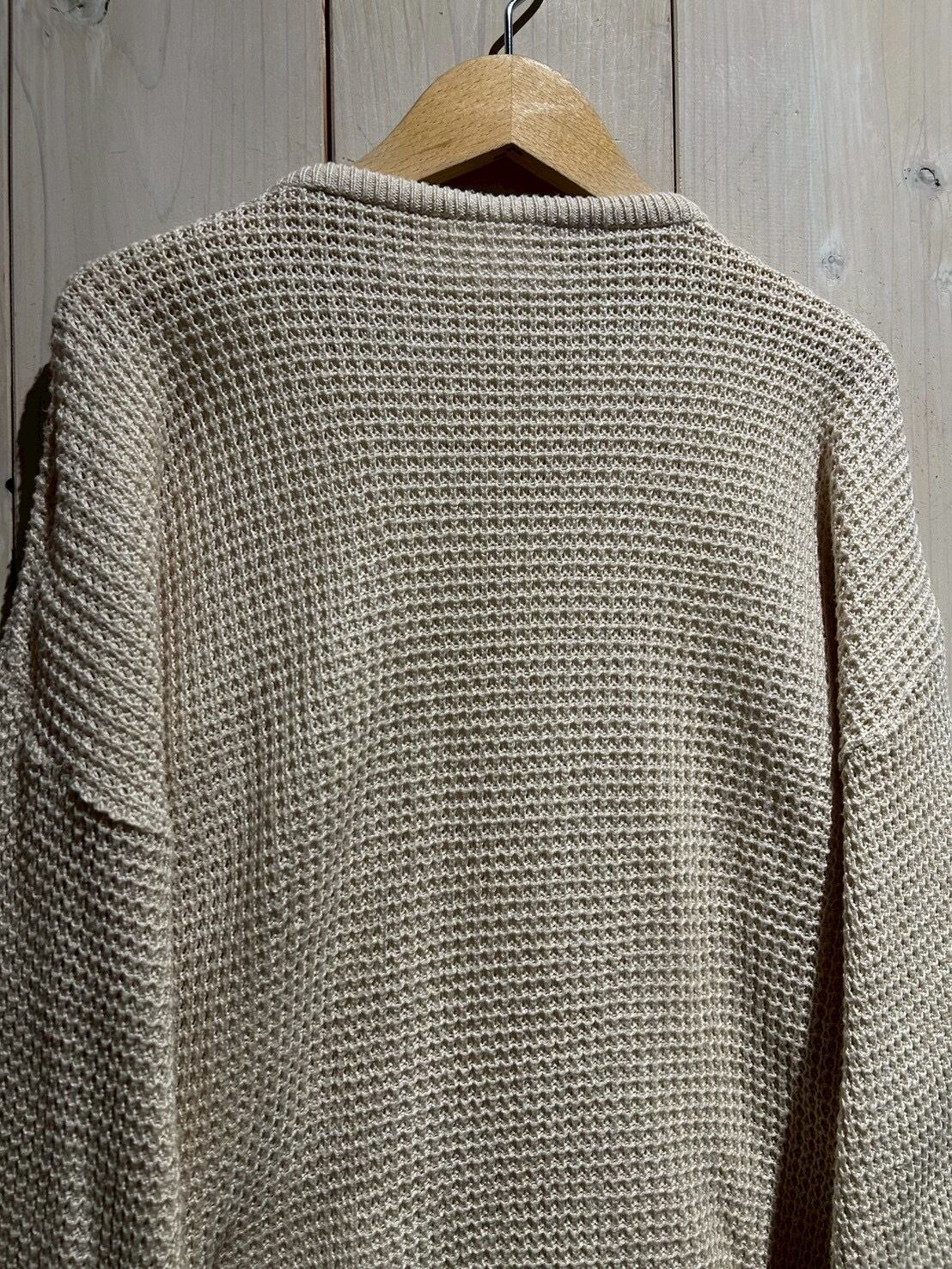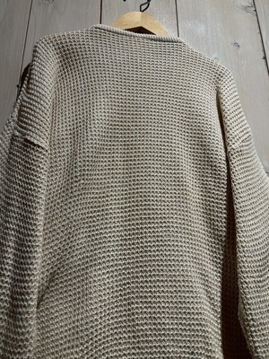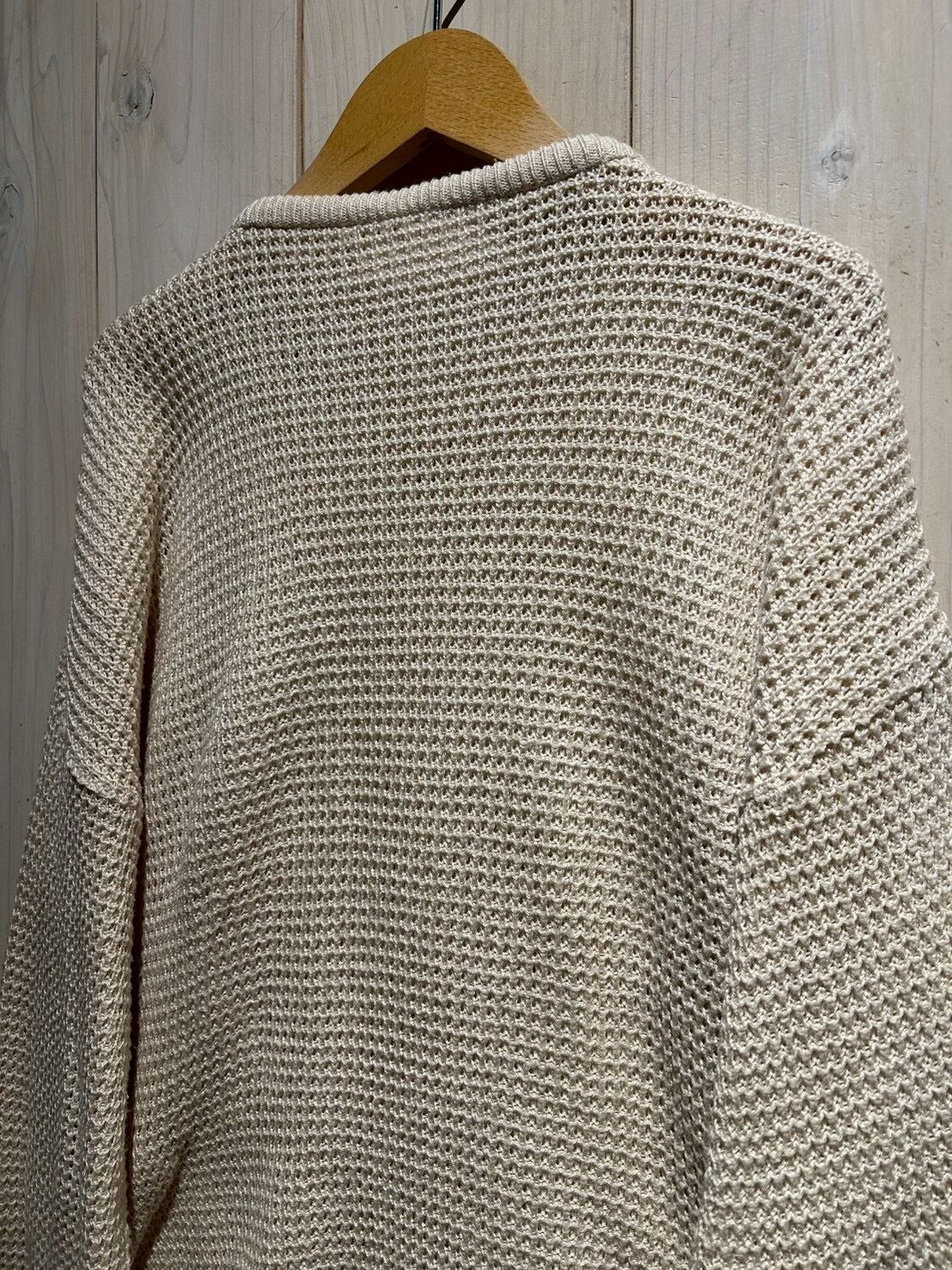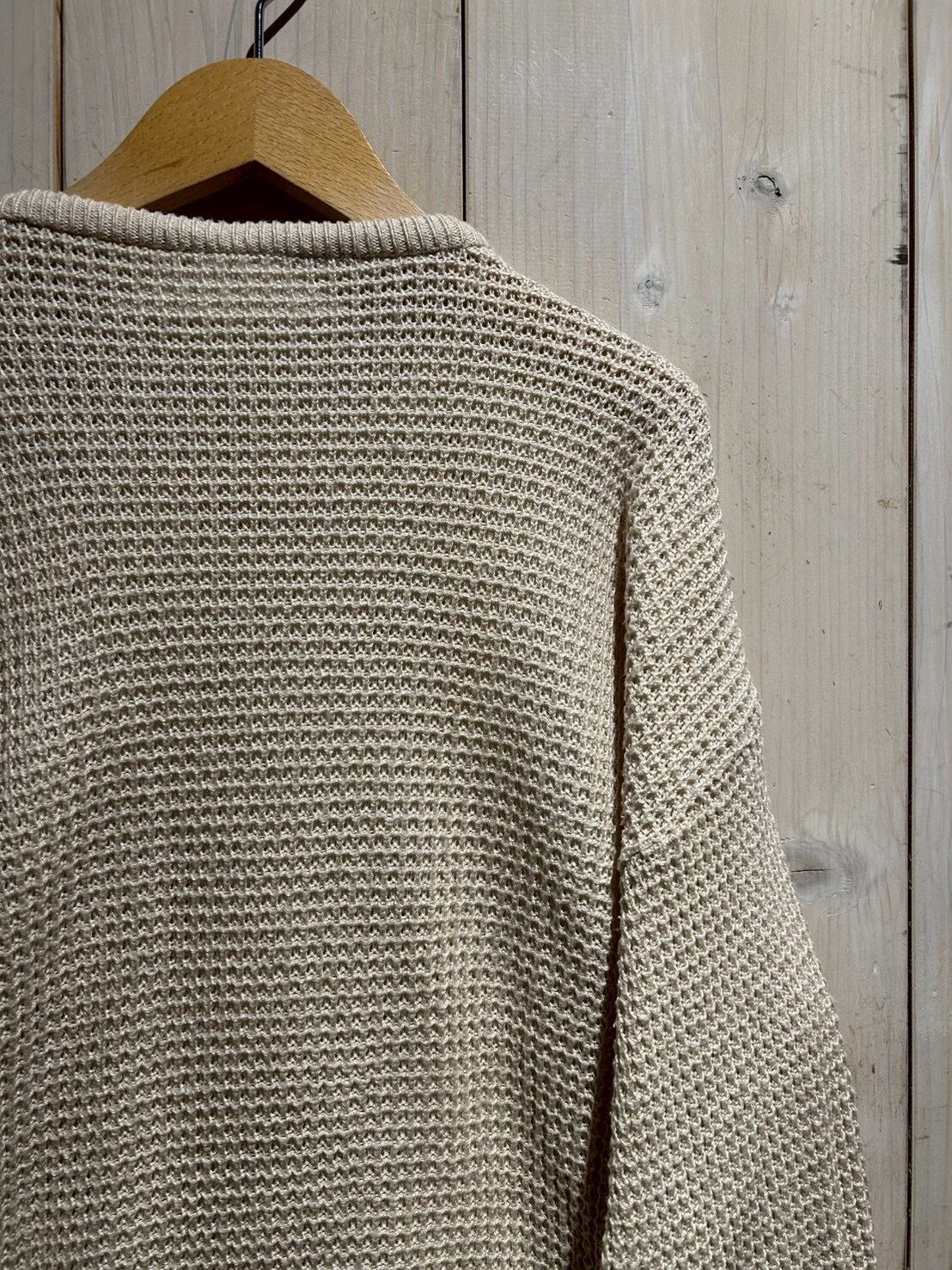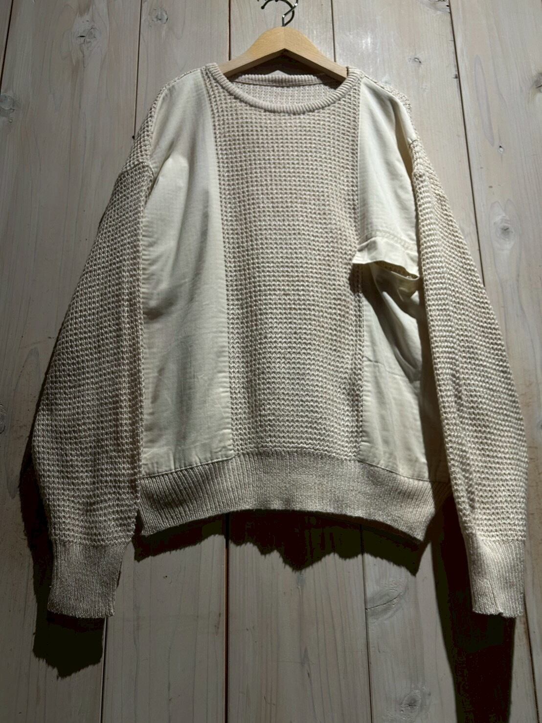 ワッフル編みのボディをベースに、フロントにはコットン地を切り替え、異素材を組み合わせることで立体的な表情を生み出したニット。