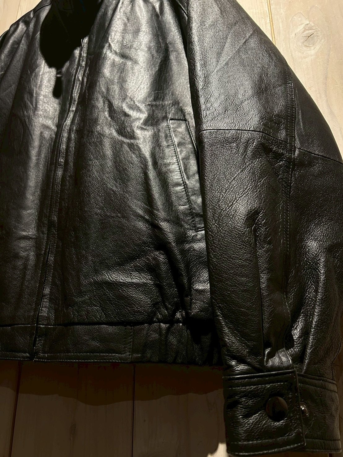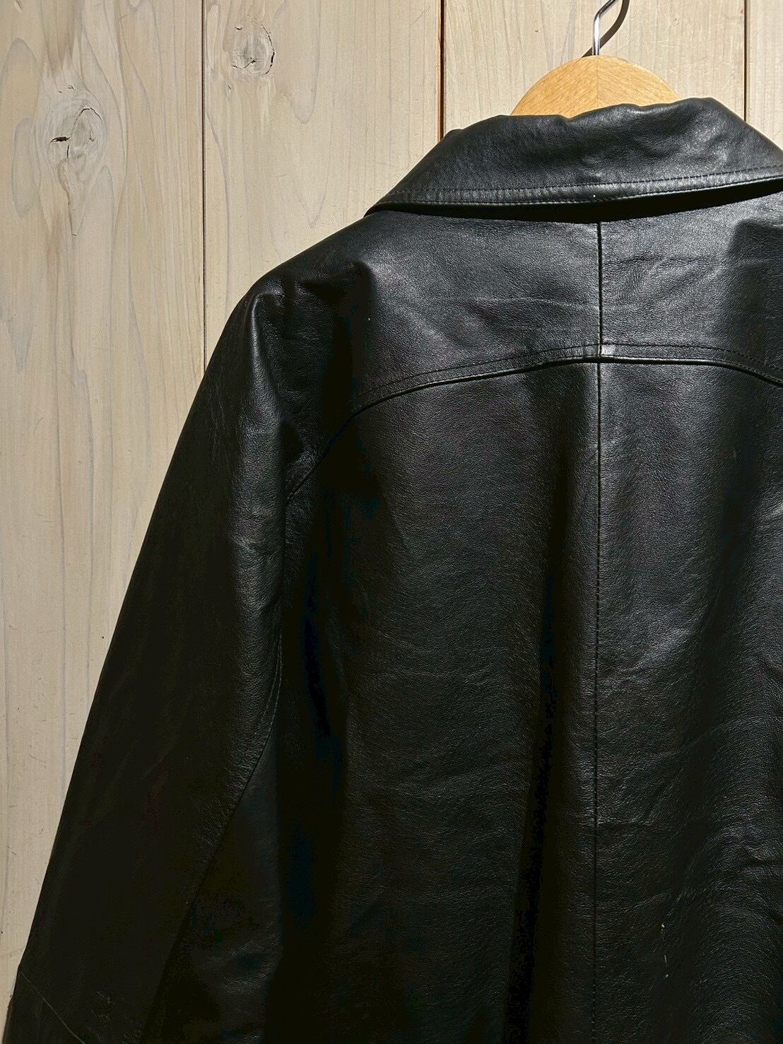 無駄を削ぎ落とした直線的なシルエットは、スラックスからデニムまで幅広く馴染み、レザーそのものの存在感を引き立てます。ルーズなサイジングは現代的なスタイリングとも好相性で、厚手のニットやスウェットをレイヤードして秋冬のメインアウターとしても着用可能。
