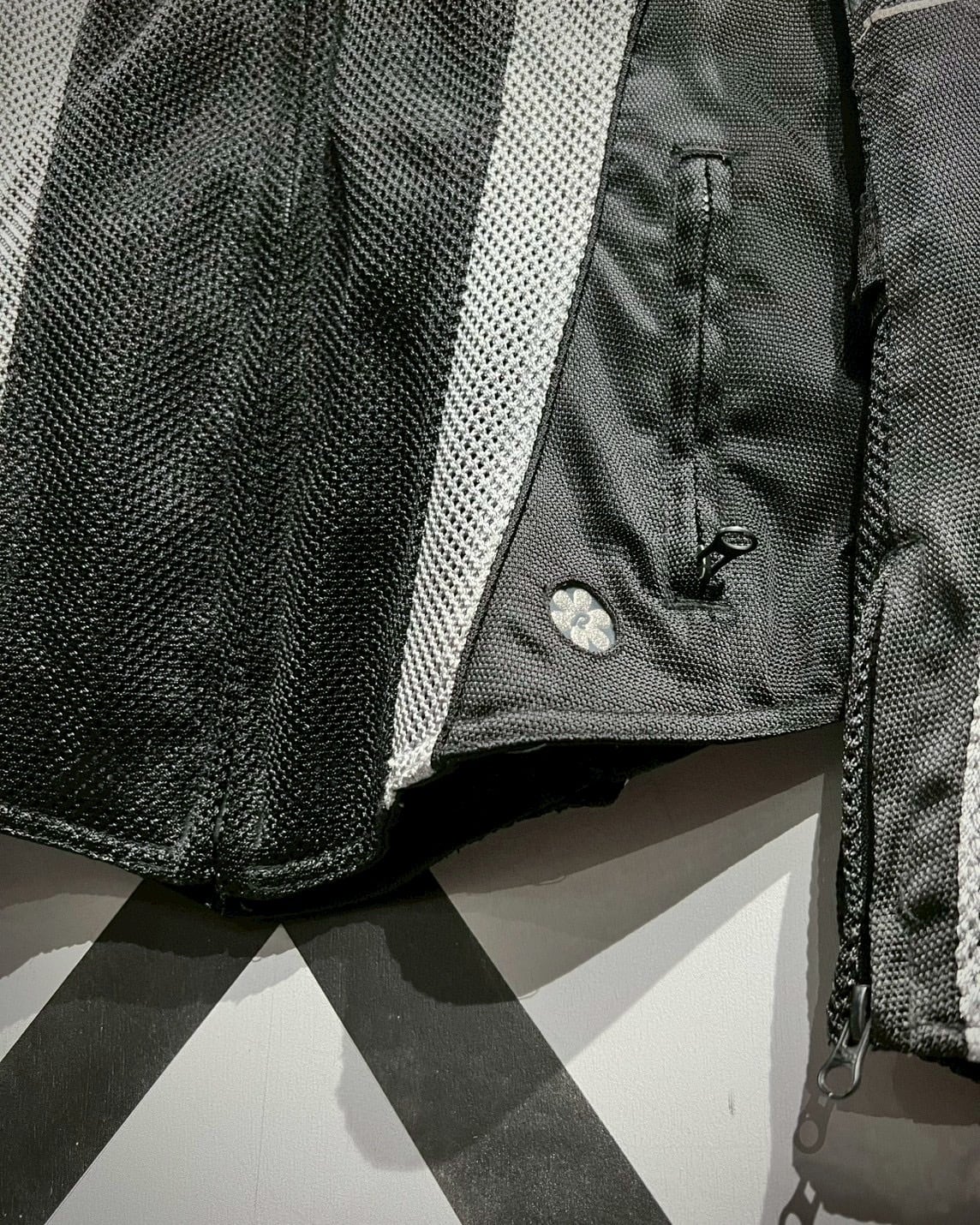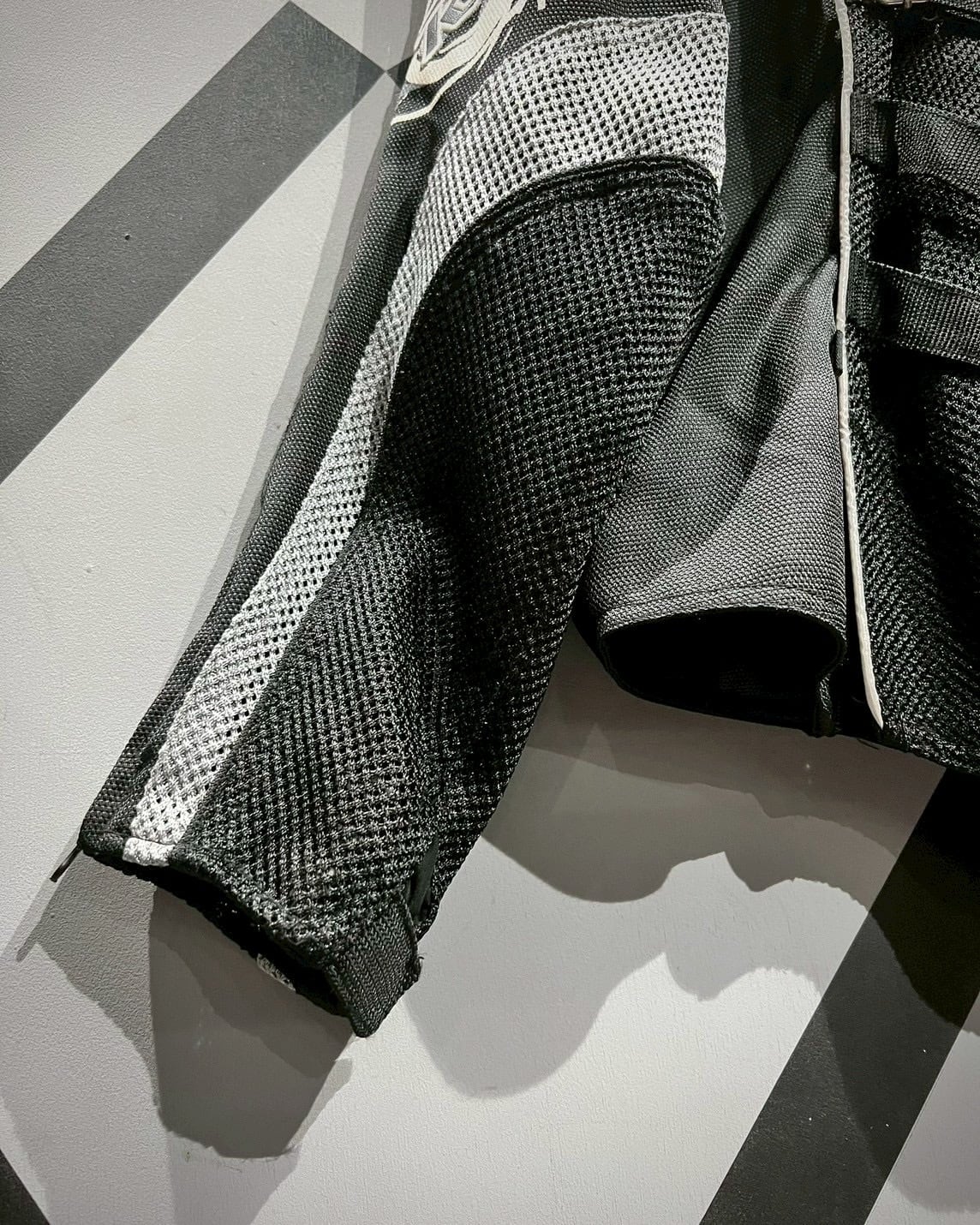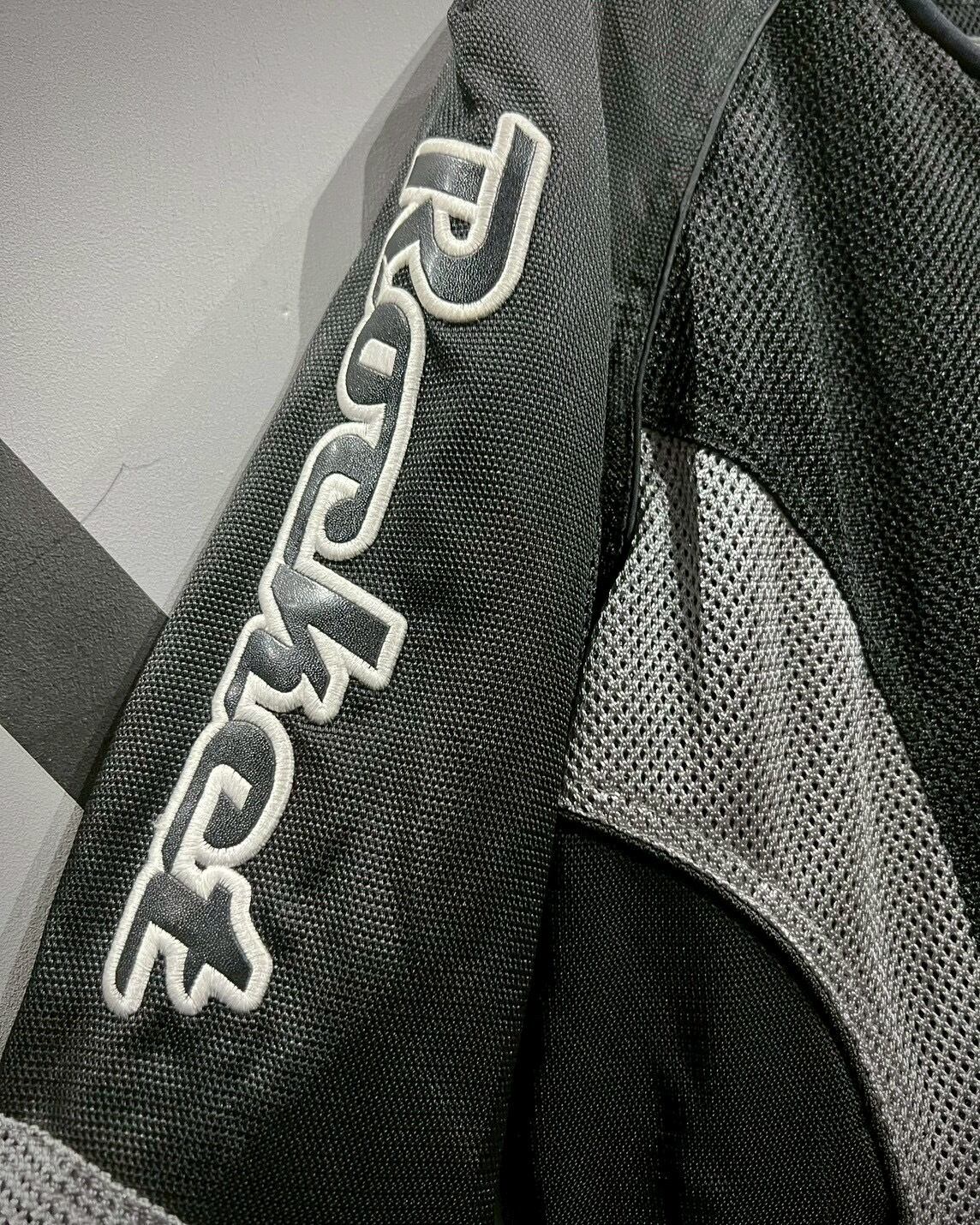 首元はノーカラー仕様でシャープな印象を演出しつつ、フロントはジップアップのシンプルな構造。さらに背面にはベルト式のアジャスターを搭載し、シルエットに変化をつけることが可能。単なるレーシングギアの枠に留まらず、ファッションアイテムとしての完成度を高めています。