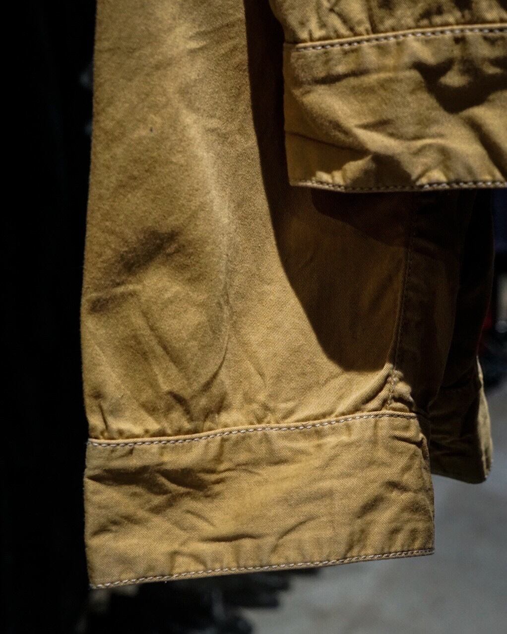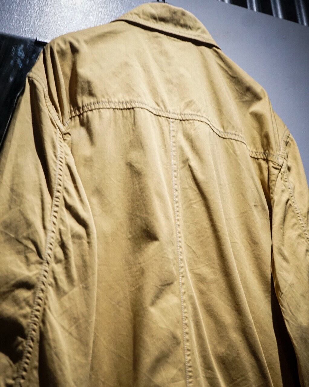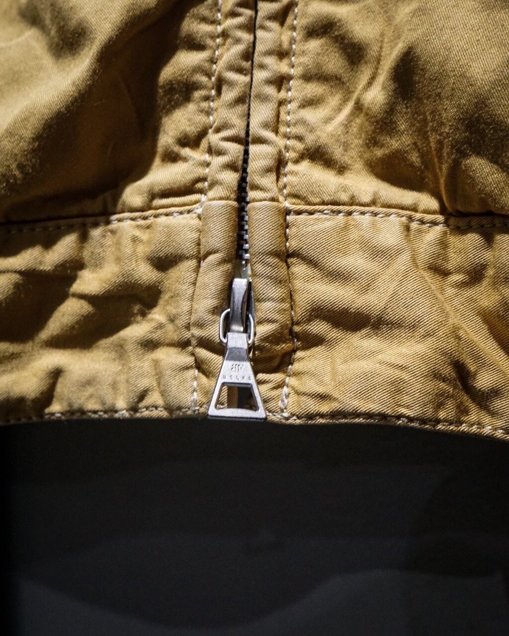 タフさと上品さを兼ね備えた コットンツイルのボディ を採用。しっかりと目の詰まった生地感は、耐久性とハリを備えつつ、着込むことで柔らかく馴染み、経年変化も存分に楽しめる素材です。