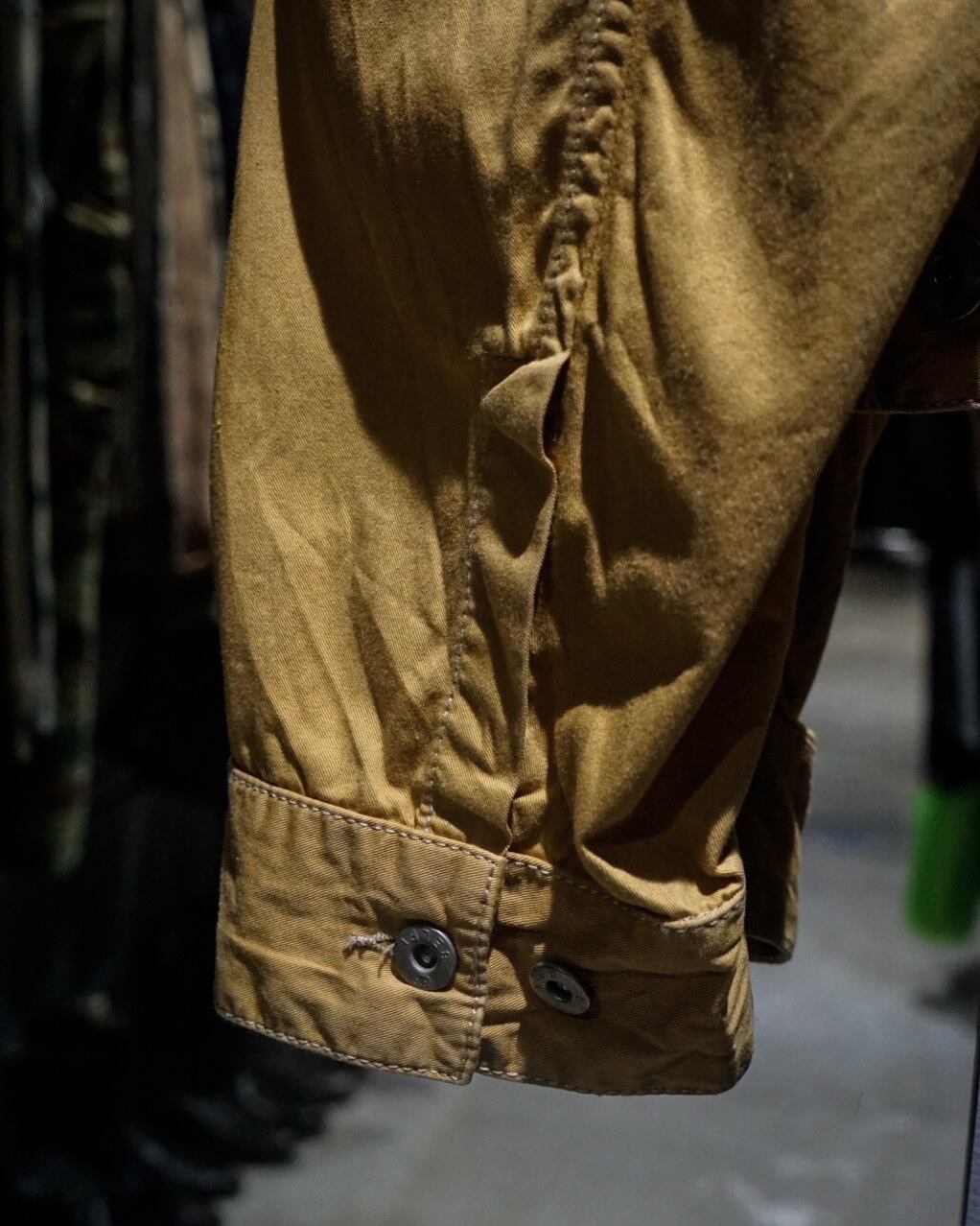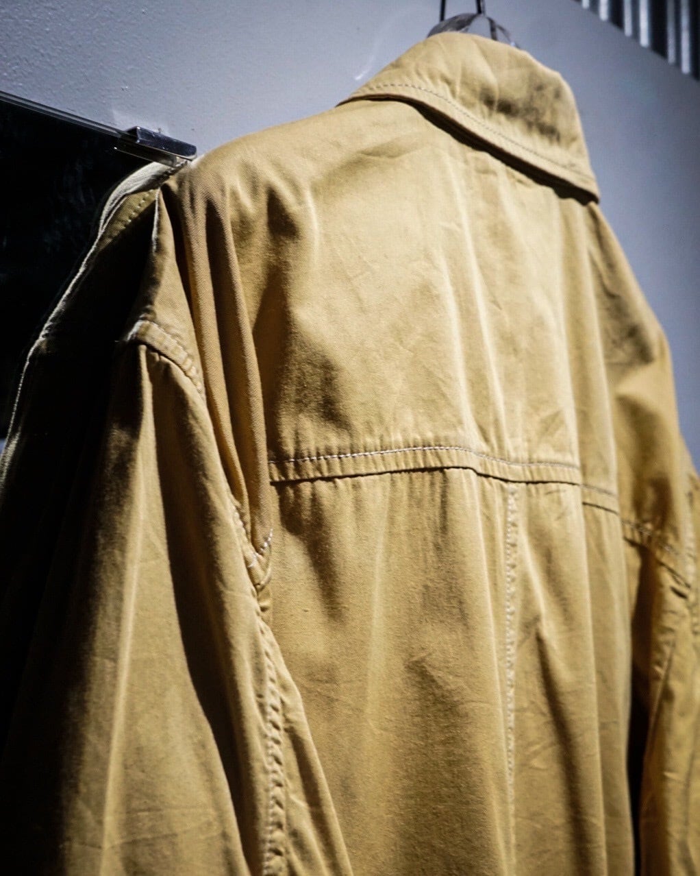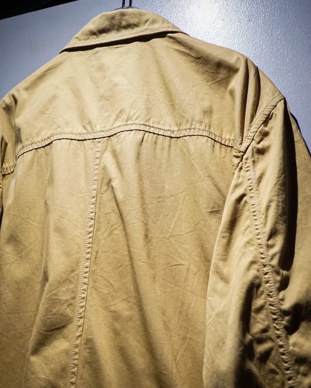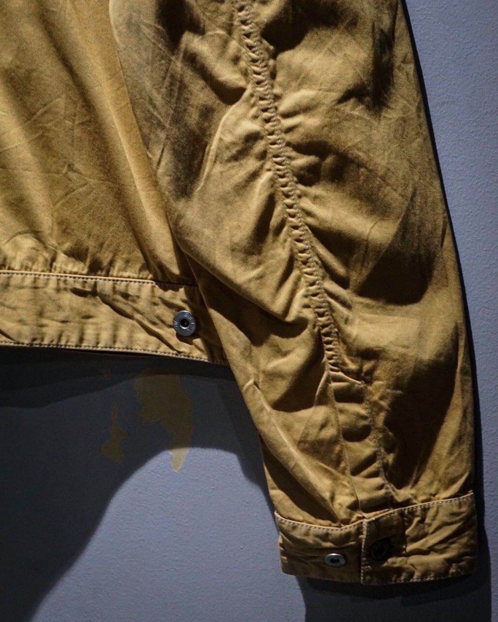 タフさと上品さを兼ね備えた コットンツイルのボディ を採用。しっかりと目の詰まった生地感は、耐久性とハリを備えつつ、着込むことで柔らかく馴染み、経年変化も存分に楽しめる素材です。