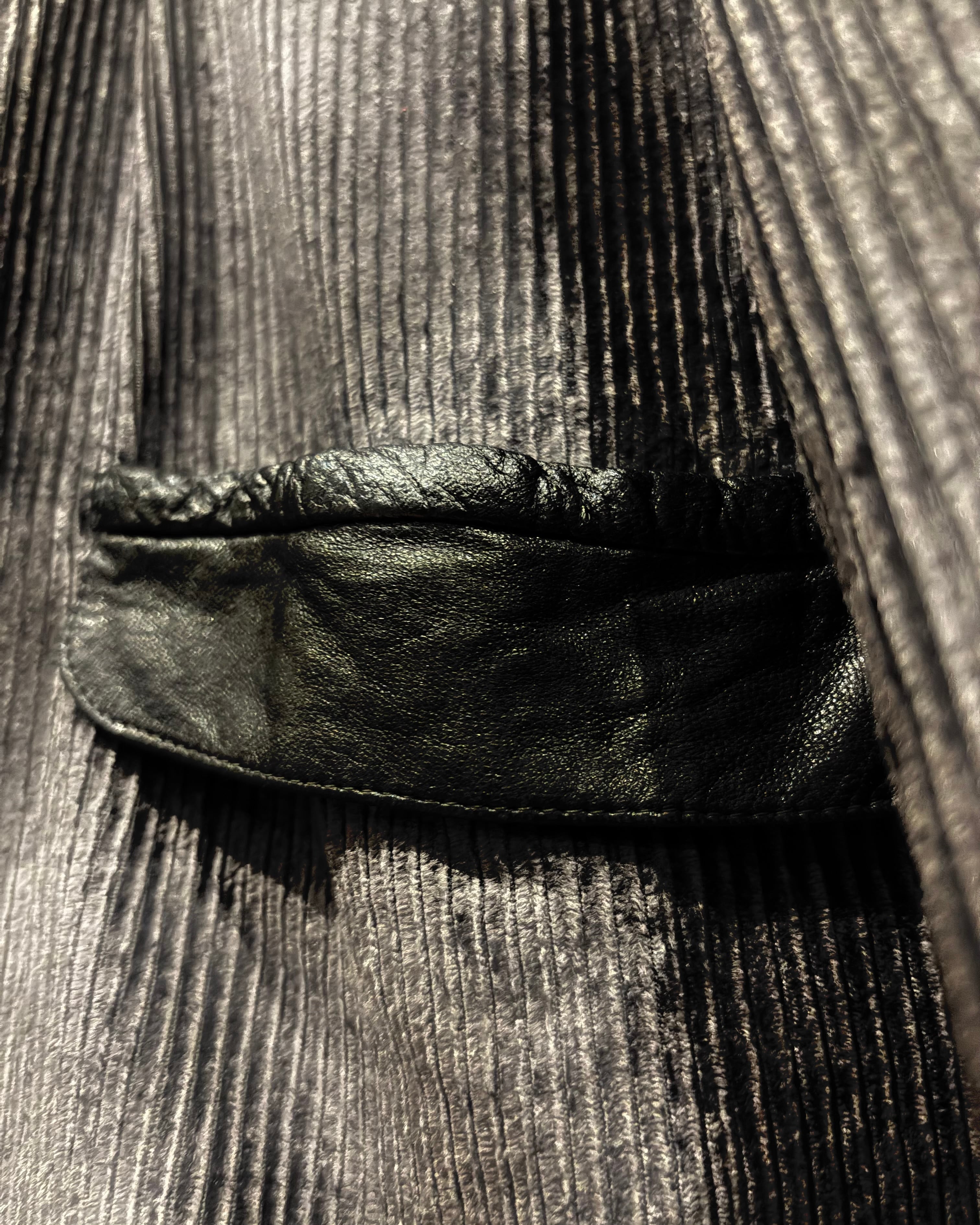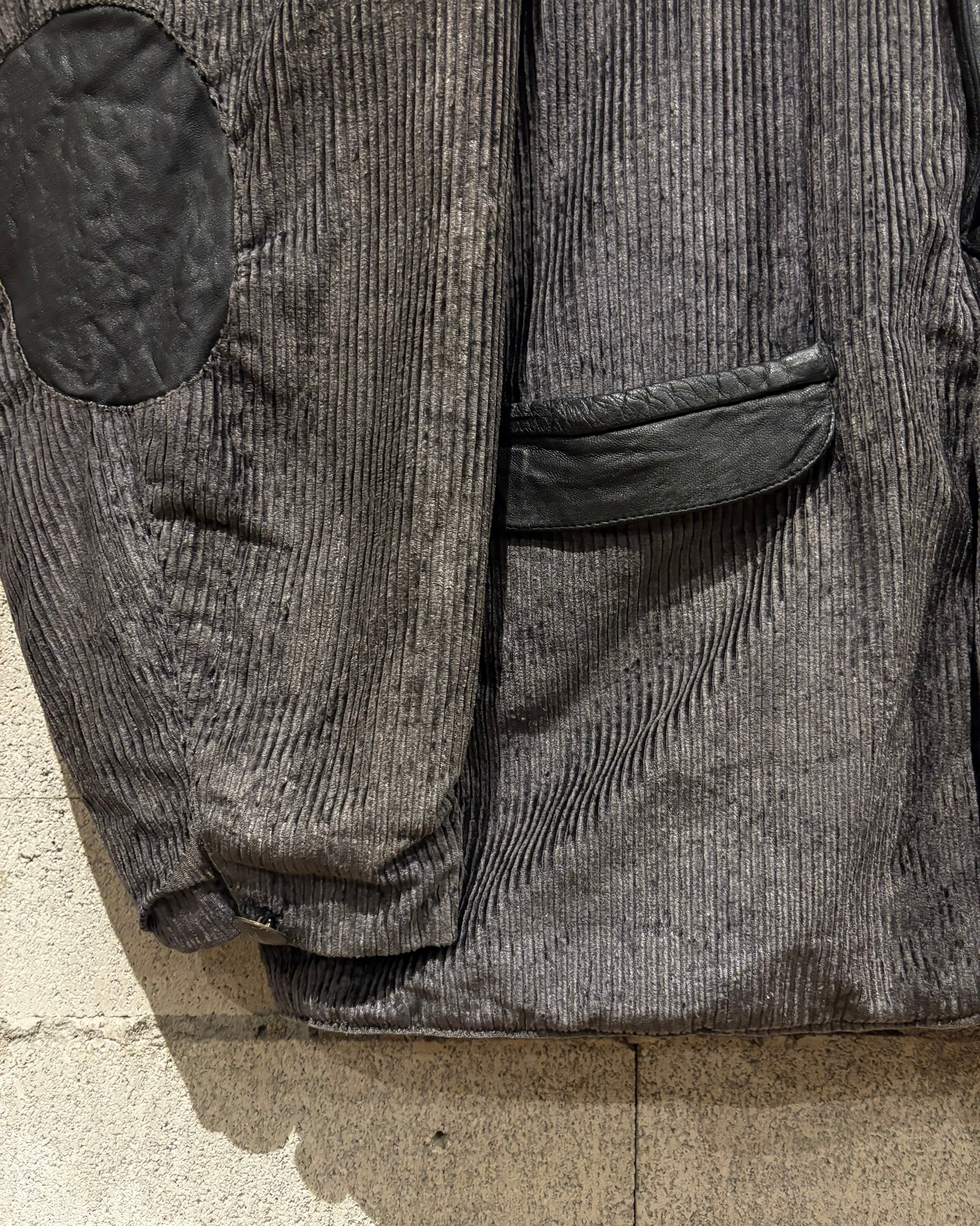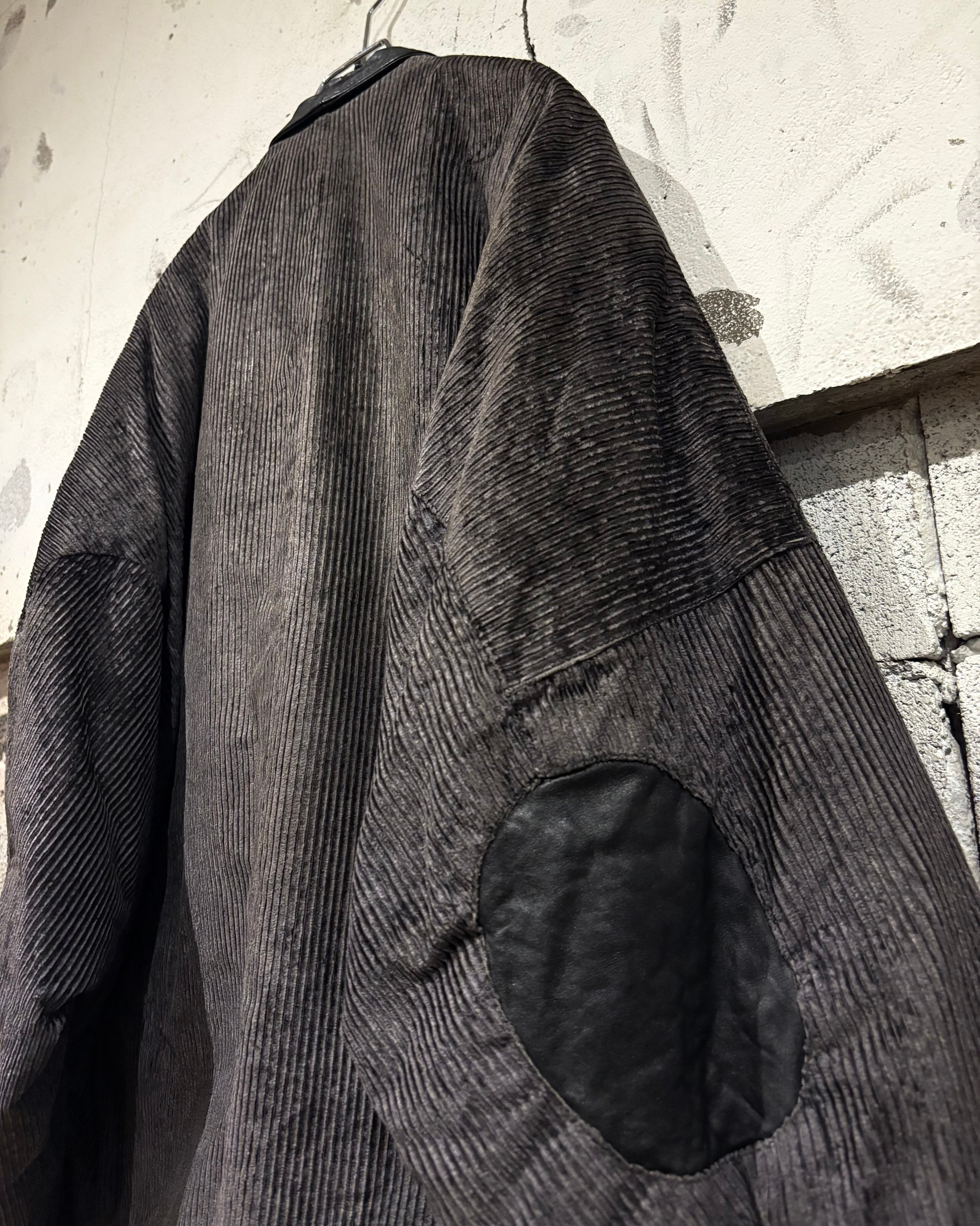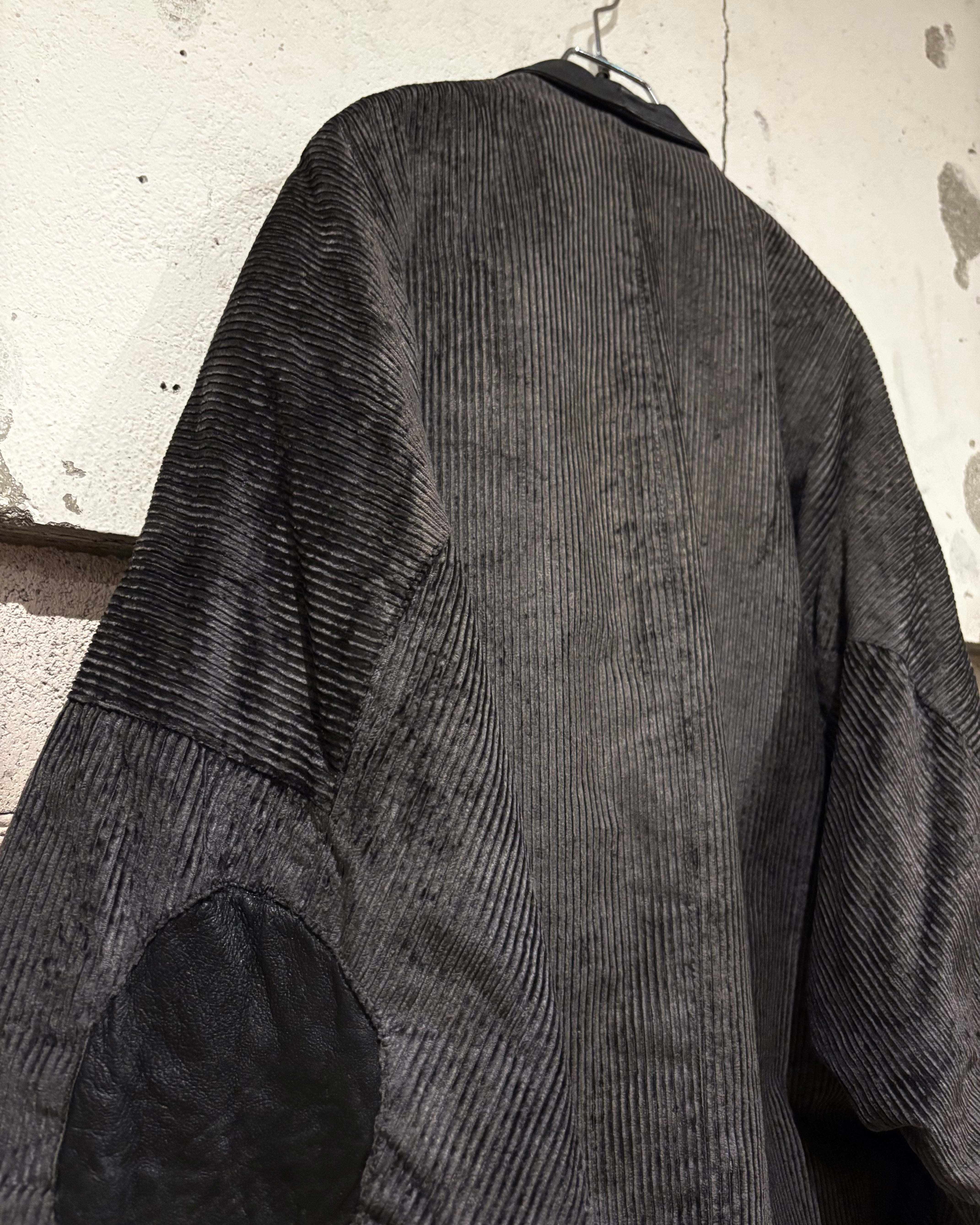 グレーのコーデュロイのボディに、レザーを切り替えた無骨さが際立つジャケット。