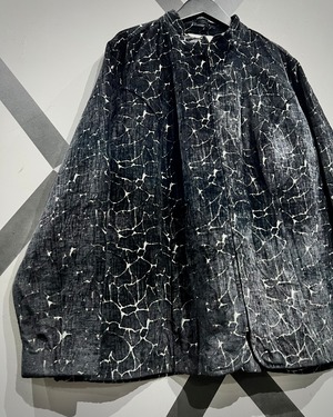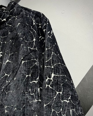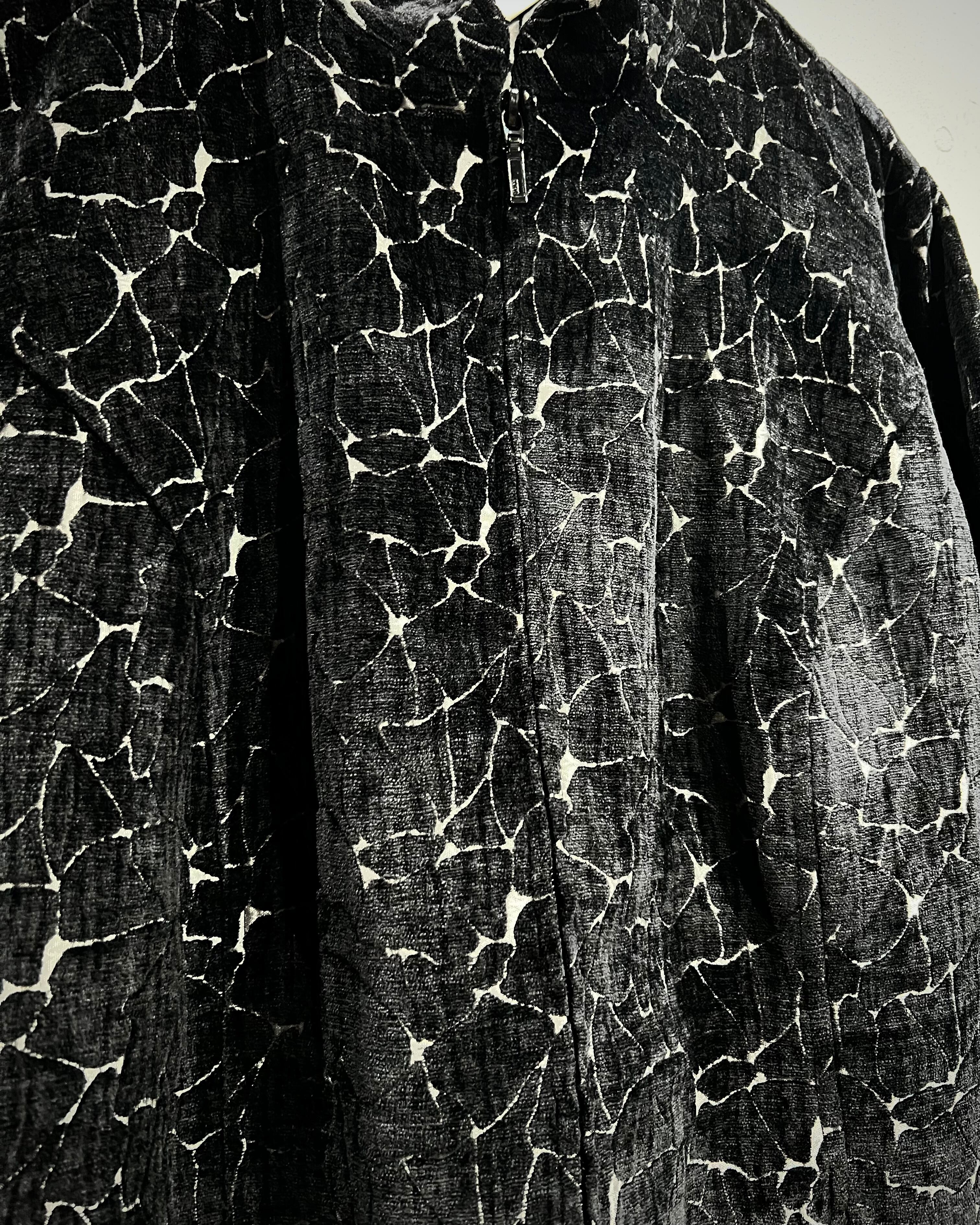 滑らかな肌触りと鈍い光沢を放つ上質なブラックベロアのボディに、まるで自然にひび割れたようなホワイトのランダムラインを走らせることで、唯一無二の表情を纏ったスペシャルなベロアシャツジャケット。