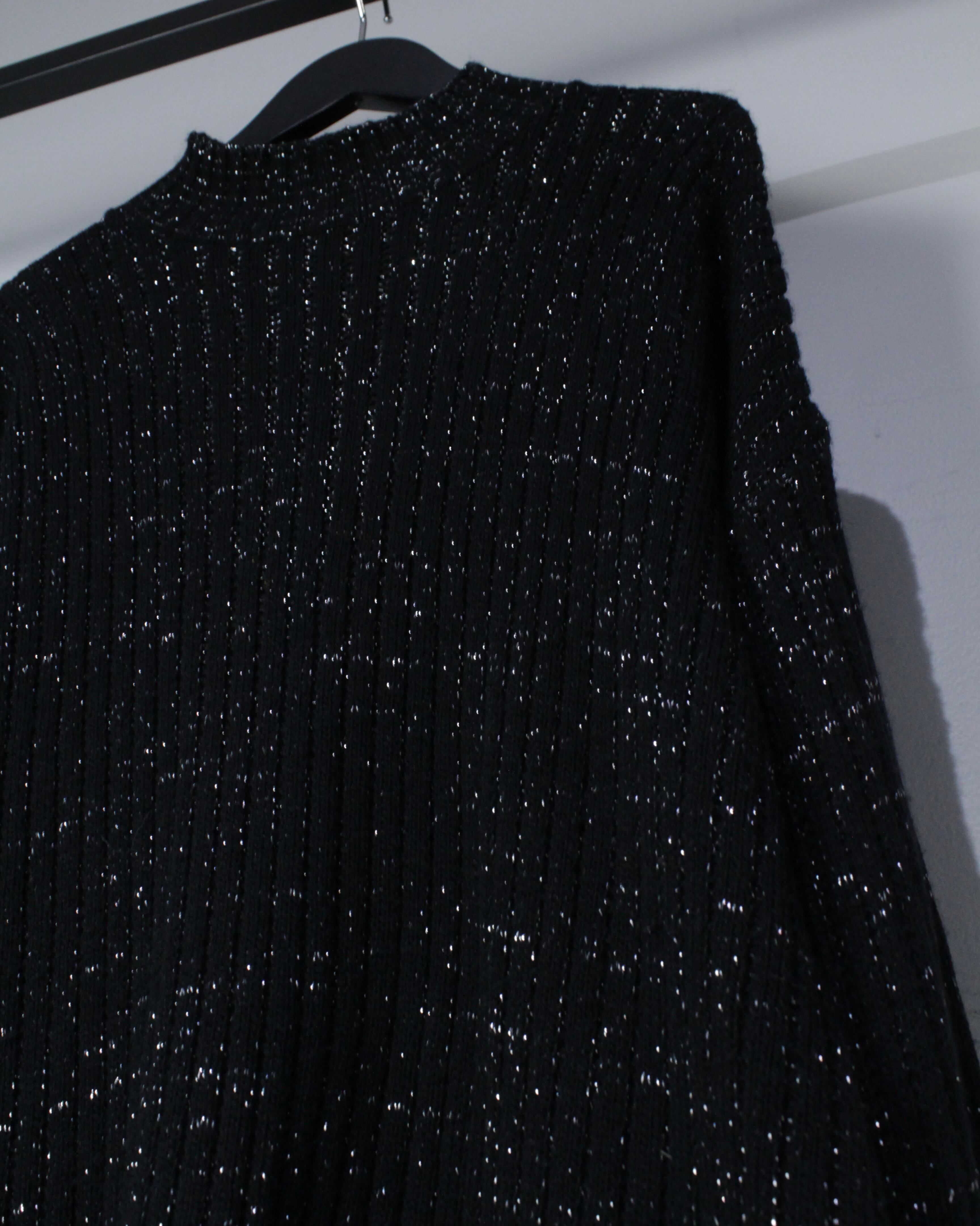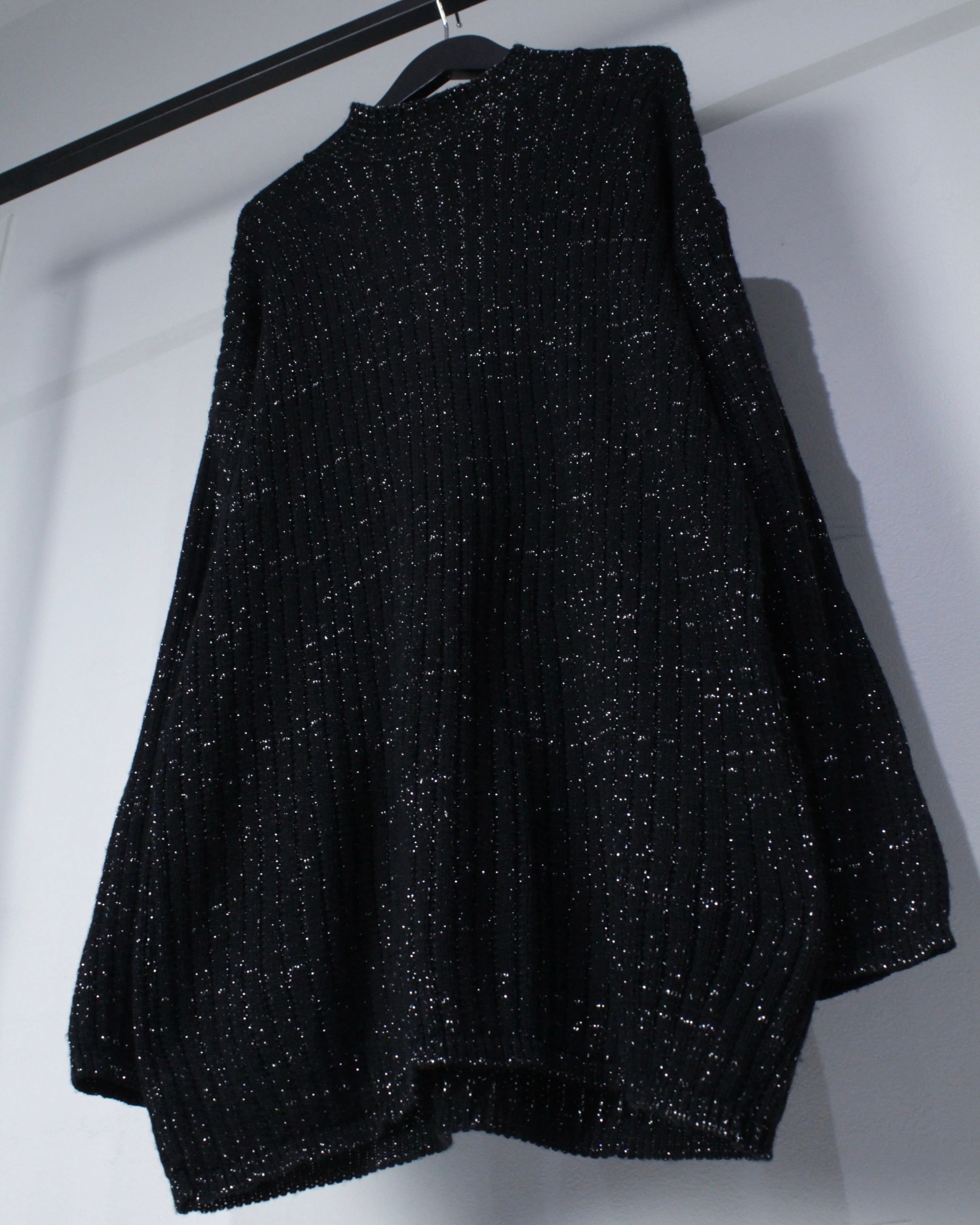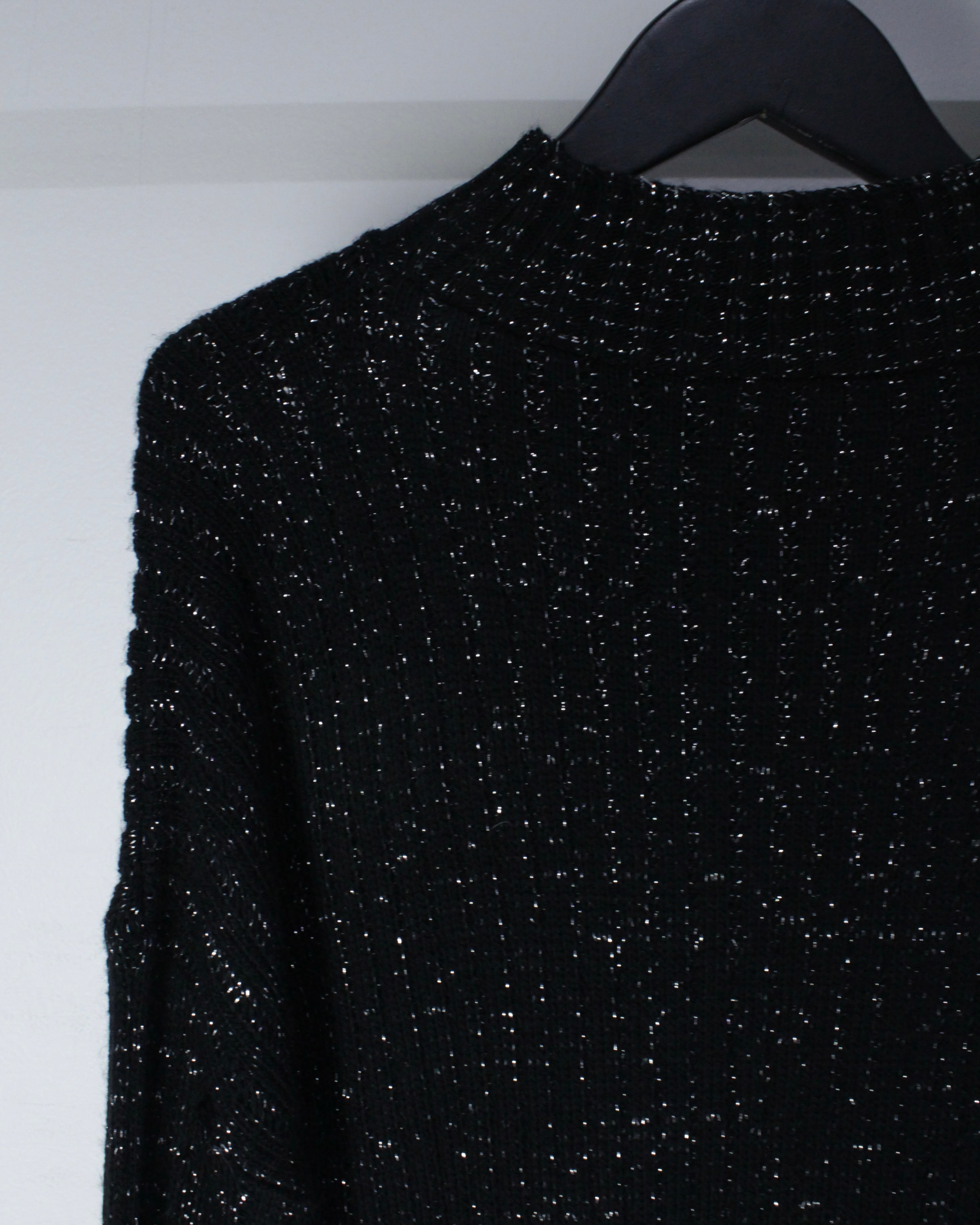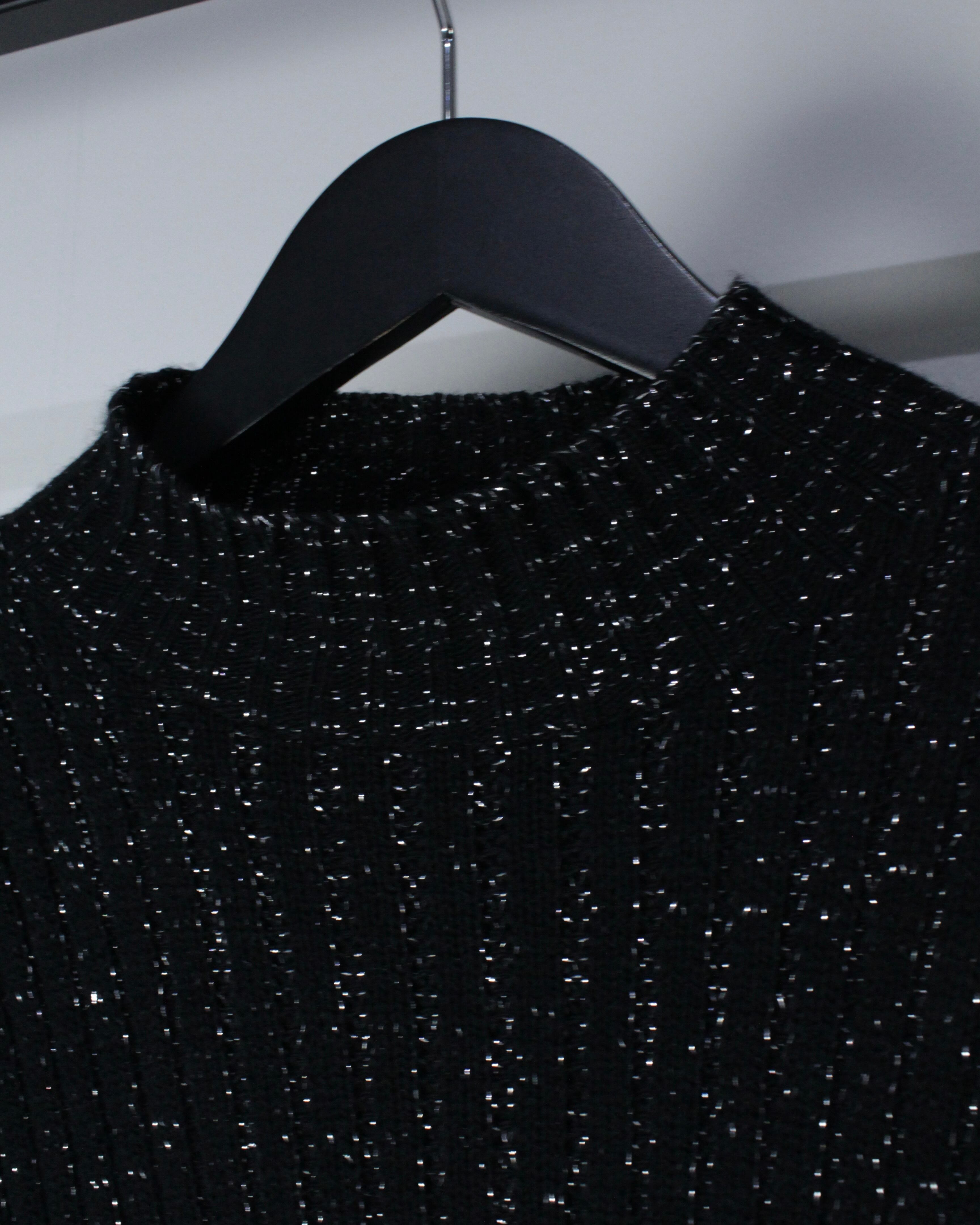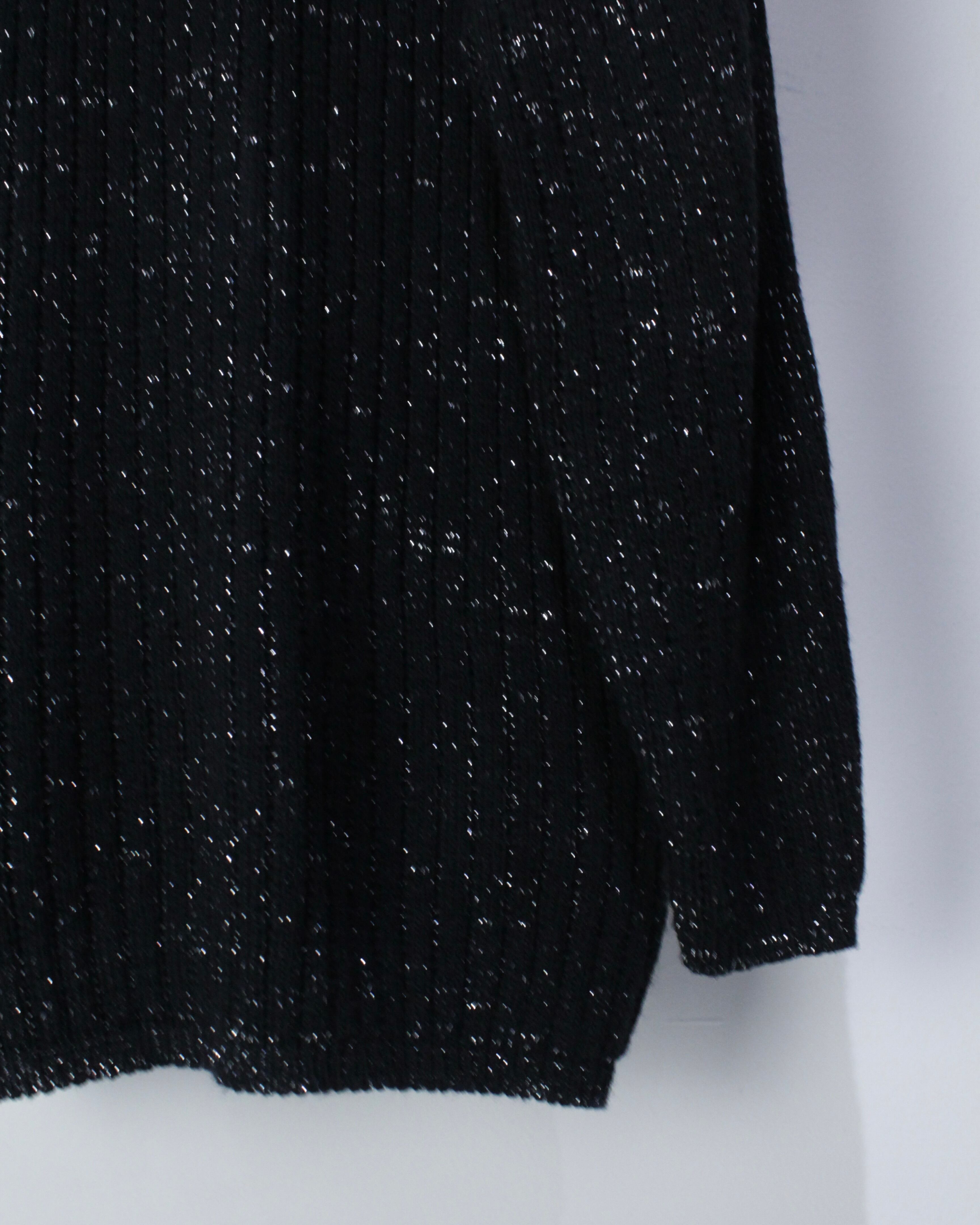 シンプルなリブ編みのボディに、シルバーのラメ糸が織り込まれた、特別感のあるUSA製のニット。