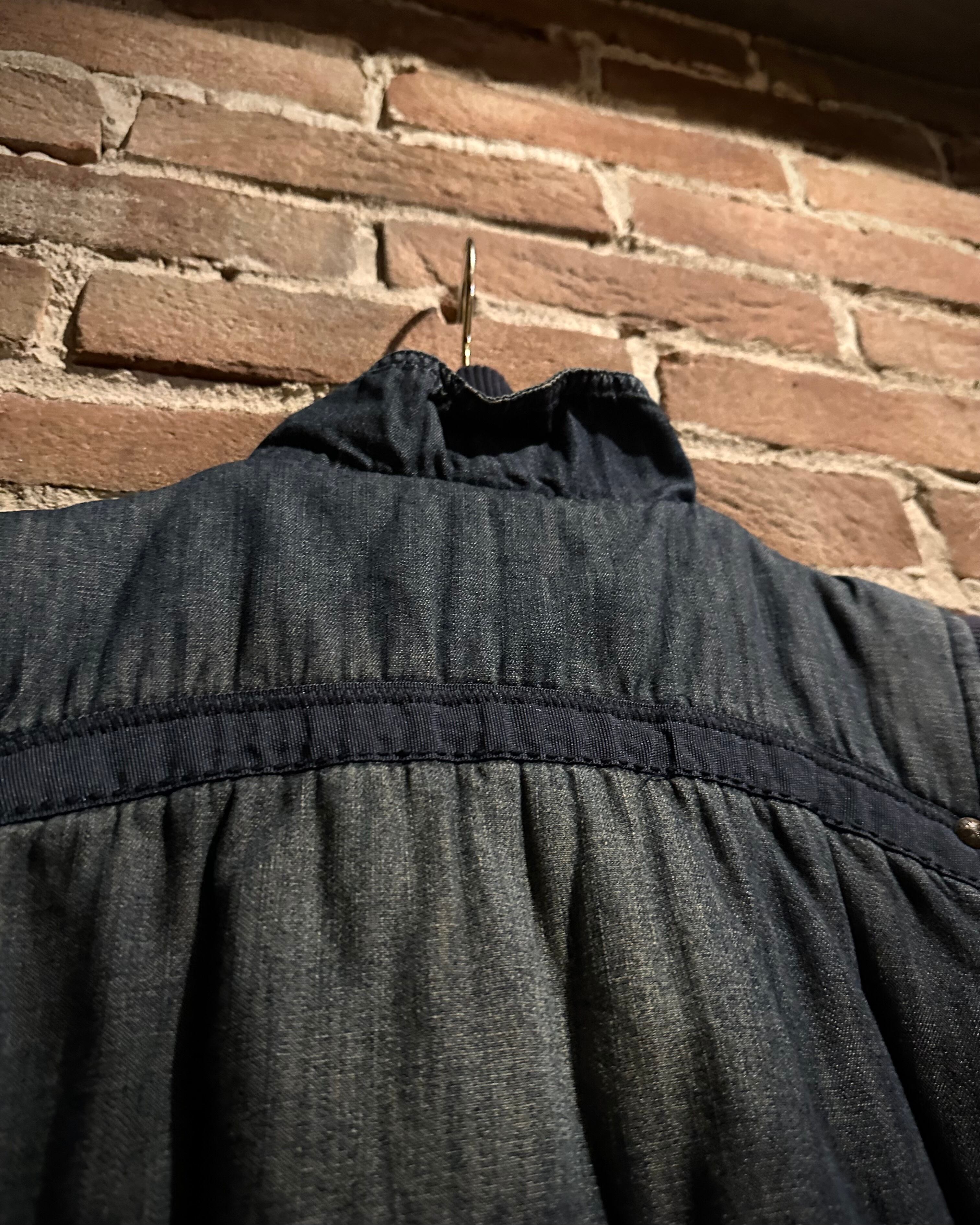 全体には程よくフェードしたブルーデニムを使用し、時間を経た奥行きとムードをまとった仕上がりになっています。