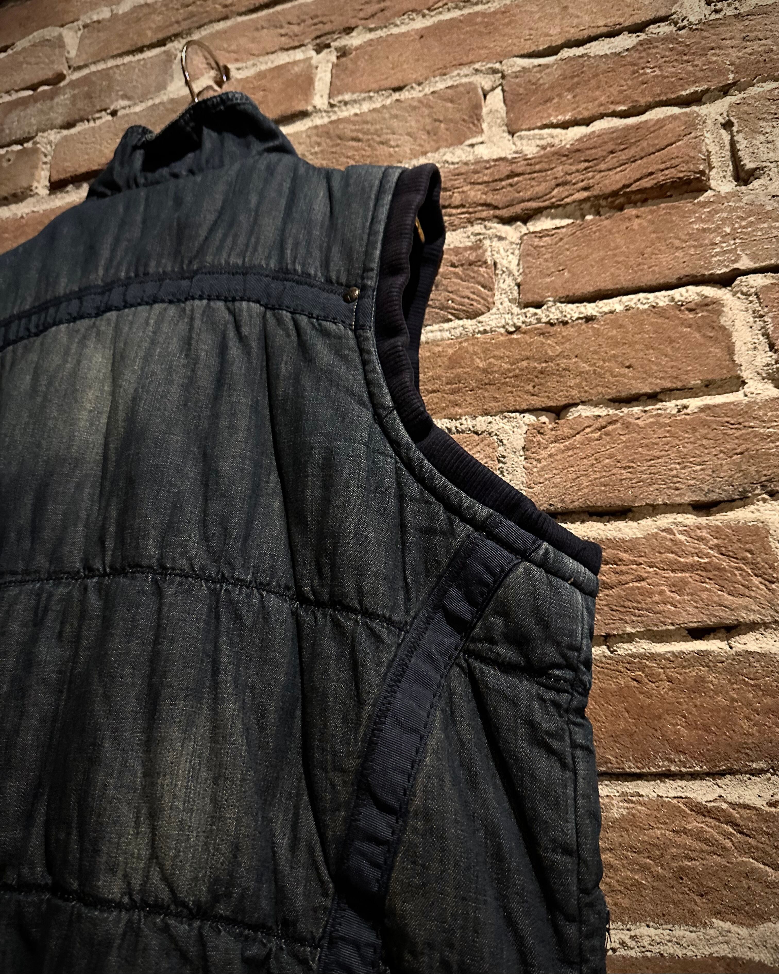 フェード感の良いデニムをベースに、モードなデザイン性を融合させた独創的なベスト。