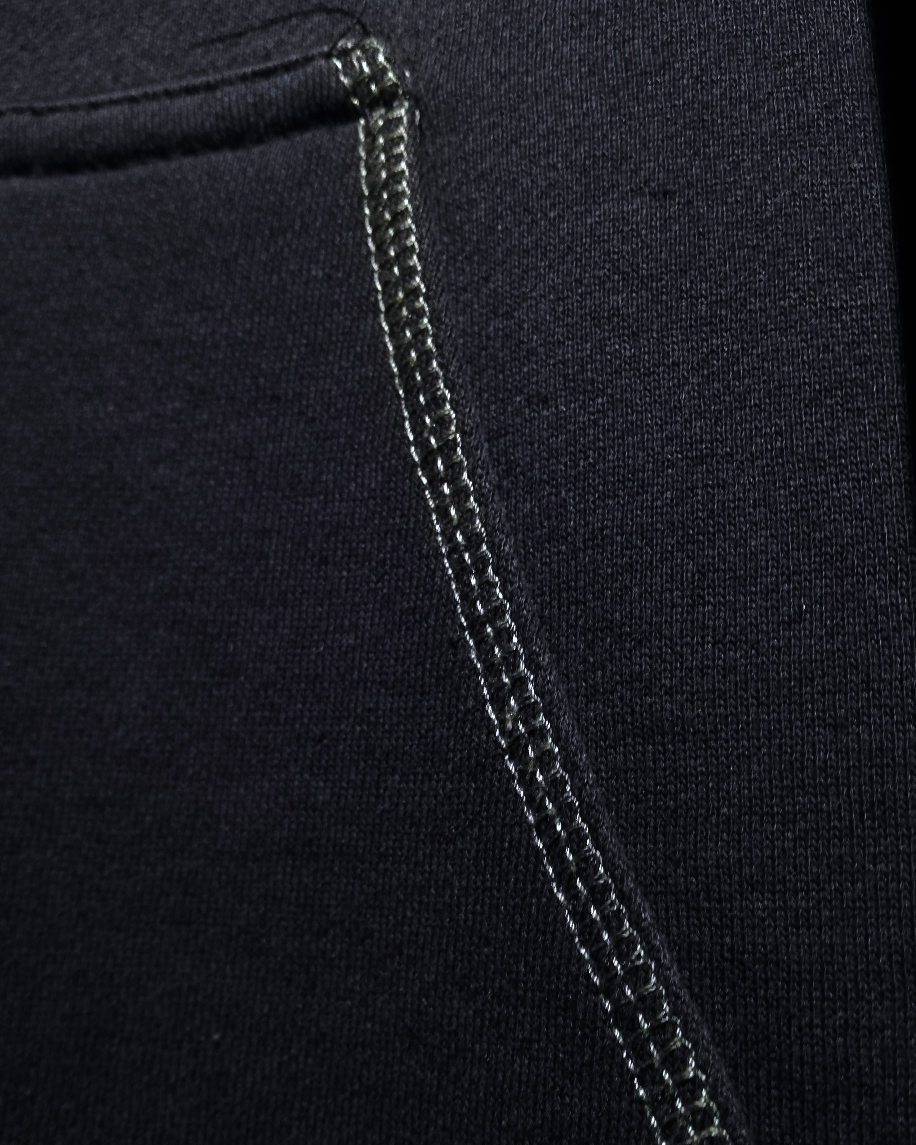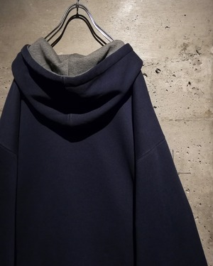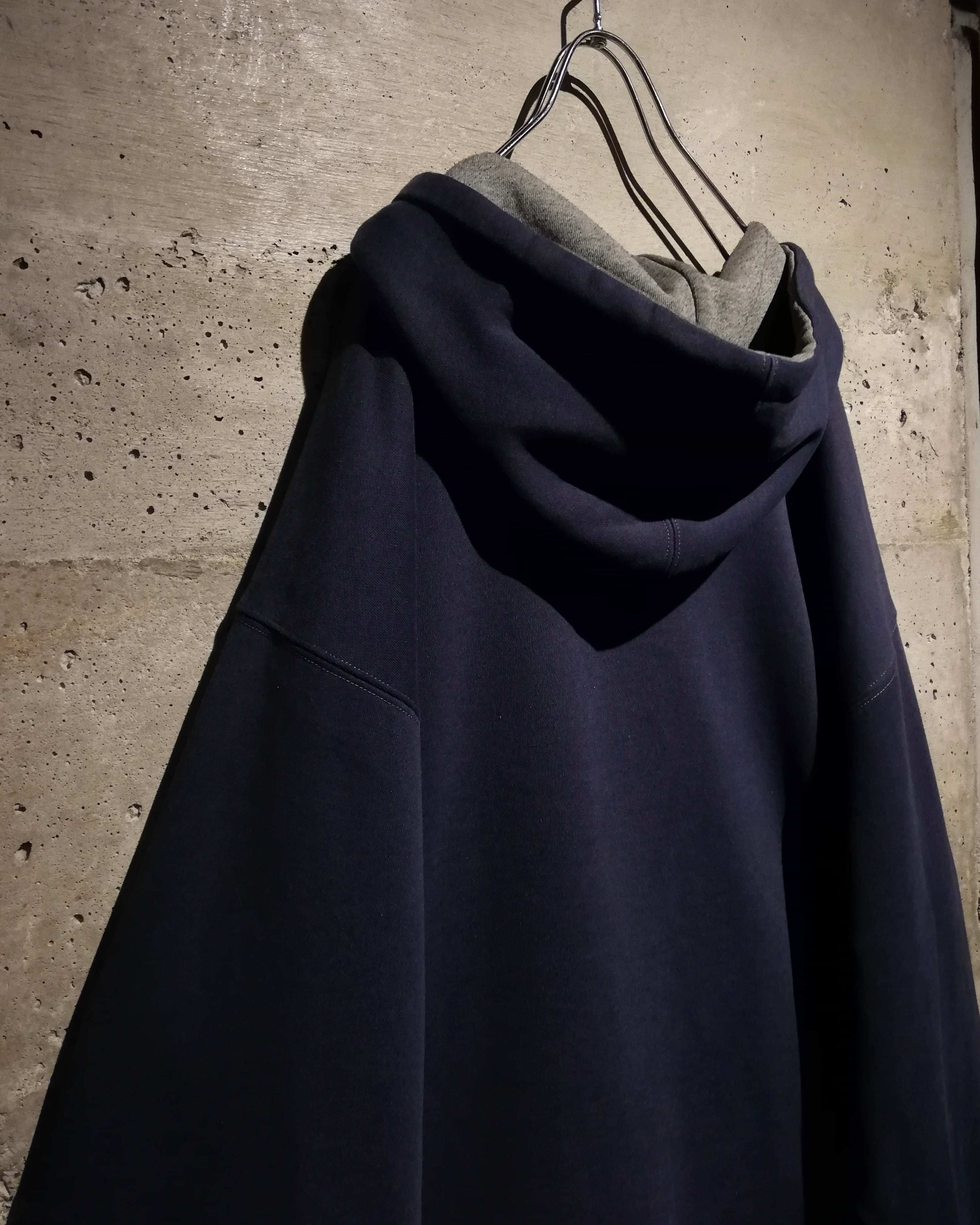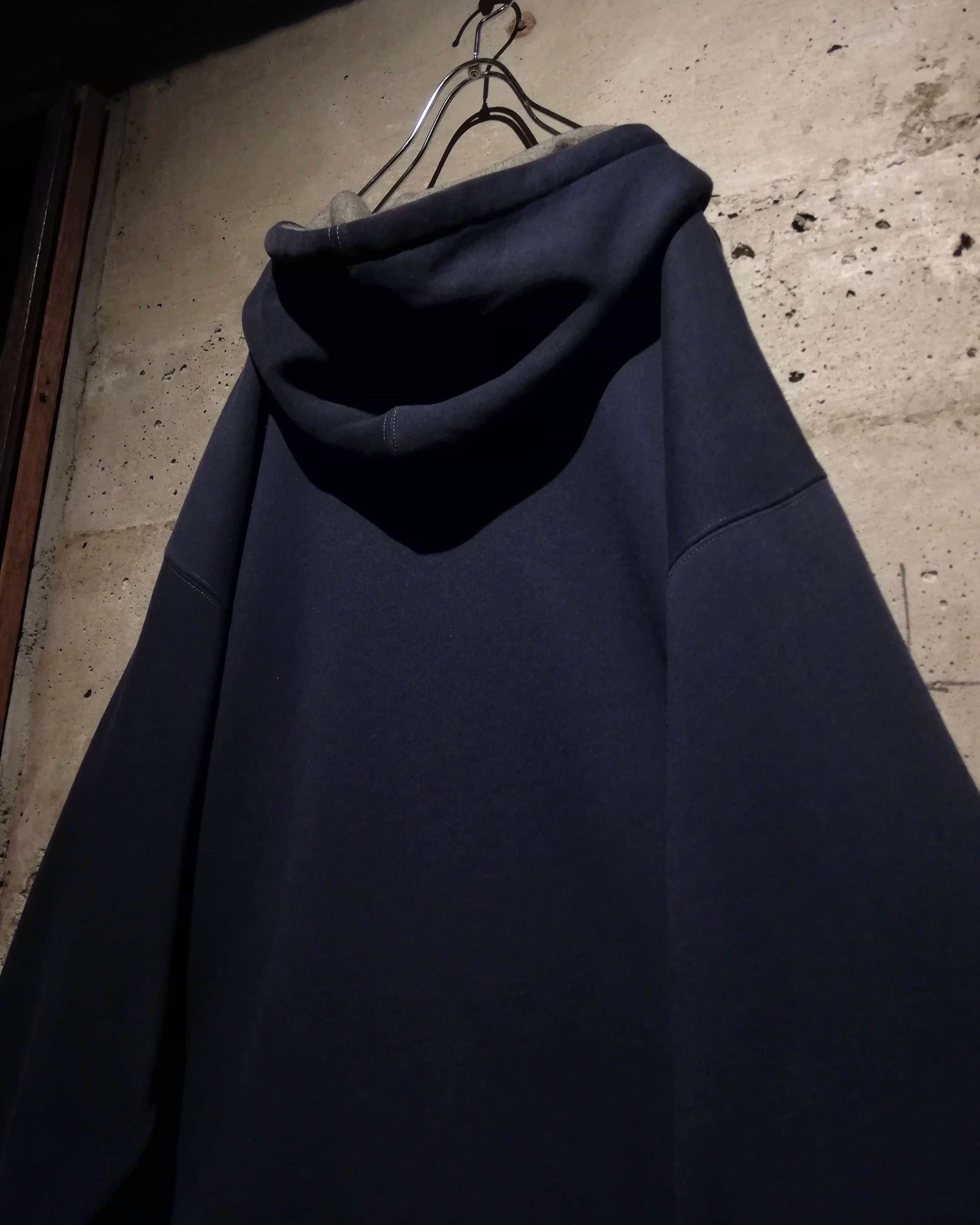 ブラックのプリント部にはフロッキープリントを採用し、デザインに立体感を演出。フードの裏地はグレーで切り替えられ、さりげないアクセントとしてデザイン性を引き立てます。