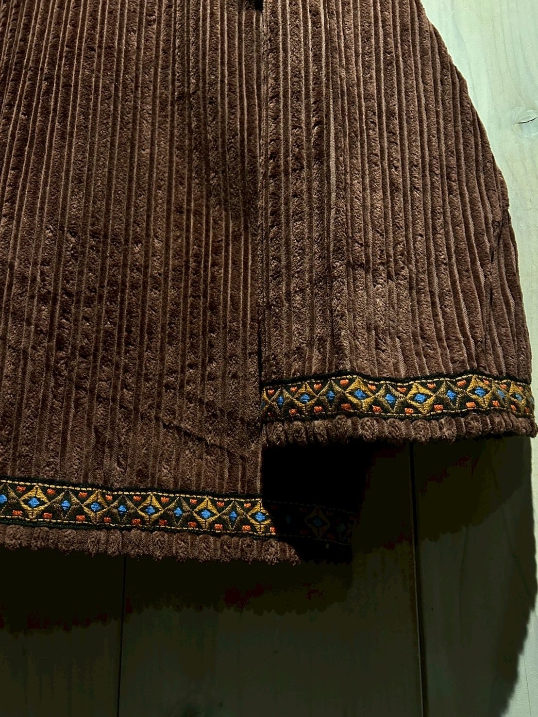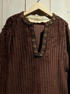 ブラウンのコーデュロイボディに、刺繍デザインが映える70'sスキッパープルオーバー。