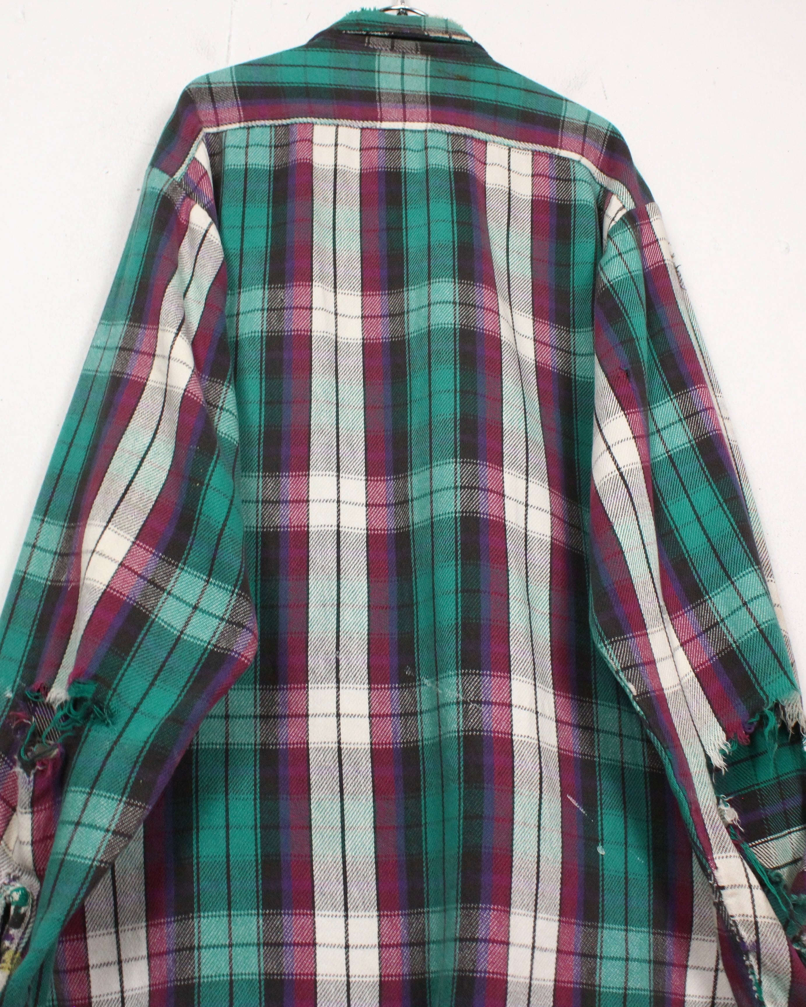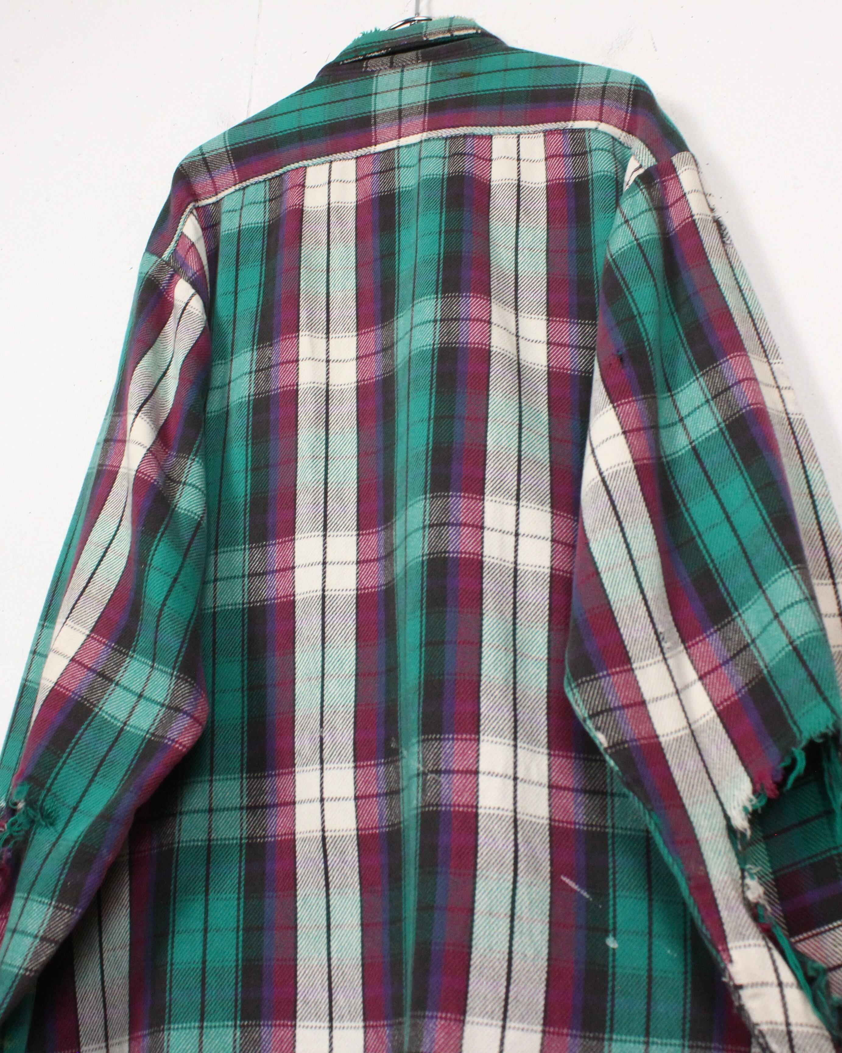 随所に見られるボロやダメージ、襟や袖口のほつれは、このシャツが長年実際に着用されてきた証。リペアやリメイクをするも良し、このまま一点物の迫力あるボロを楽しむも良し、着る人の感性によって味わい方が広がるのも大きな魅力です。