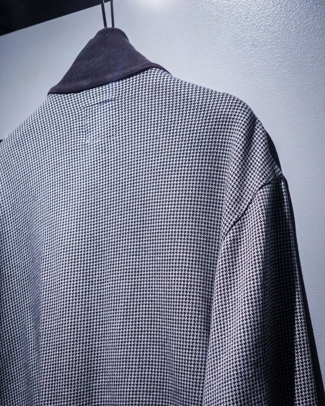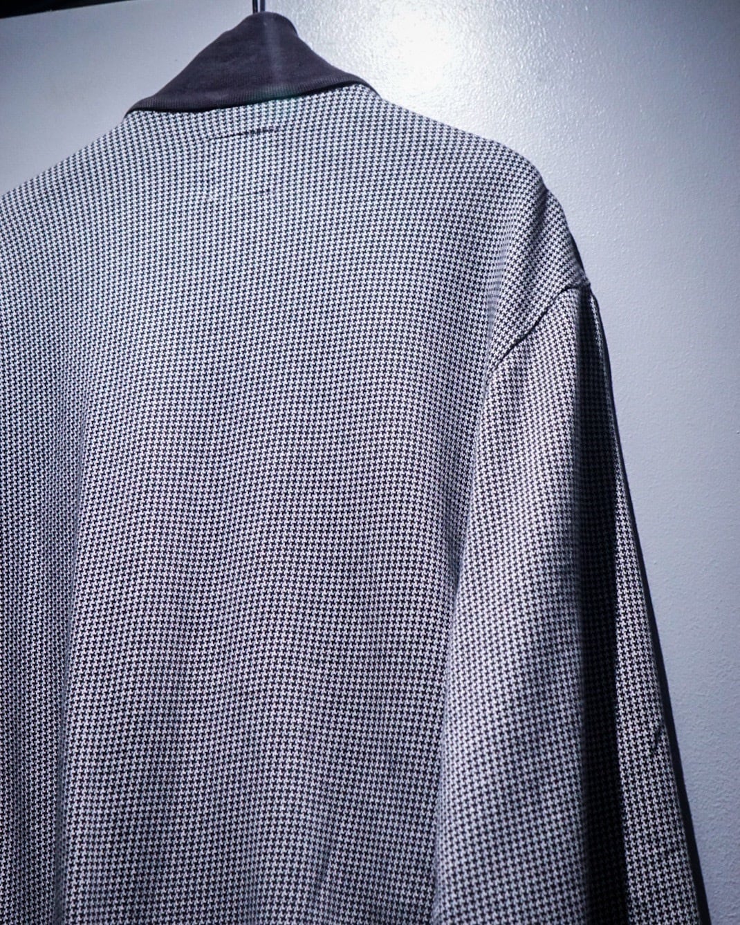 柔らかくしなやかな生地を用い、織りで表現された千鳥格子柄が全面に表現された1着。通常のジャージ素材とは一線を画すラグジュアリーな表情を演出し、クラシックな柄とスポーツウェアのディテールが絶妙に融合。ヴィンテージ市場でも目にすることの少ない特別な仕上がりとなっています。