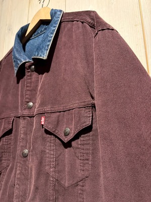 表面は深みのあるボルドーカラーのコーデュロイをベースに採用し、温かみのあるクラシックなムードを演出。細畝のコーデュロイ特有の柔らかい表情が落ち着いた色合いと相まって、上品ながらも無骨な存在感を放っています。胸元にはフラップポケットを配置し、ディテールがリーバイスらしいワークテイストをしっかりと表現。