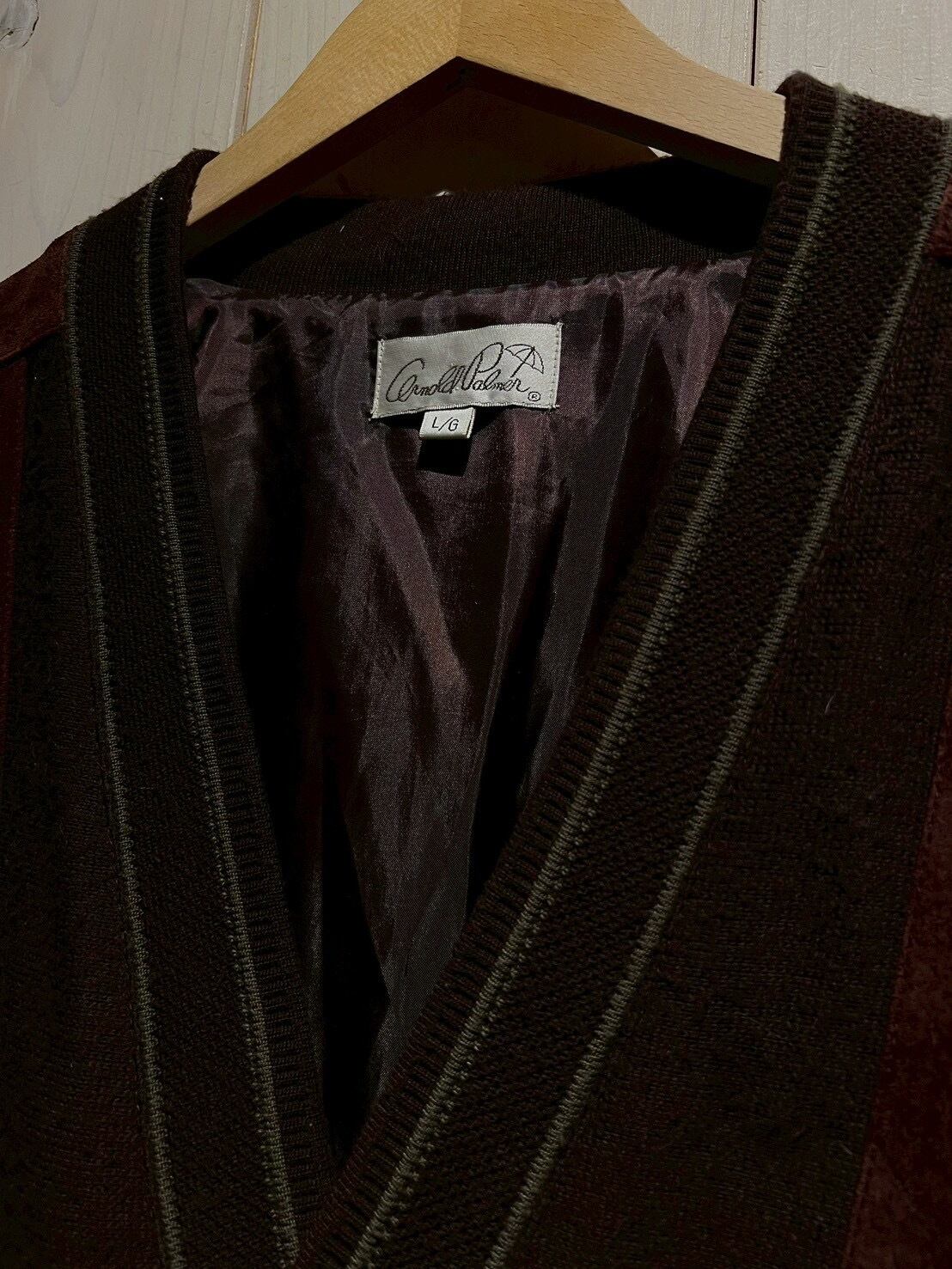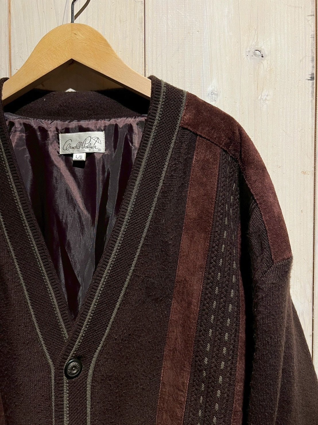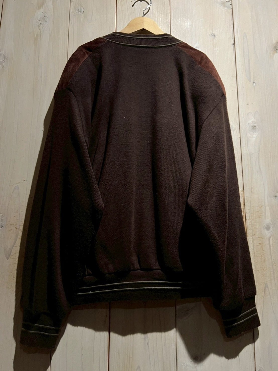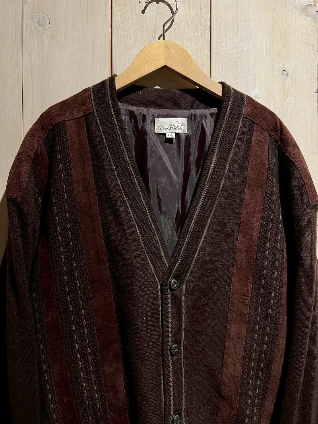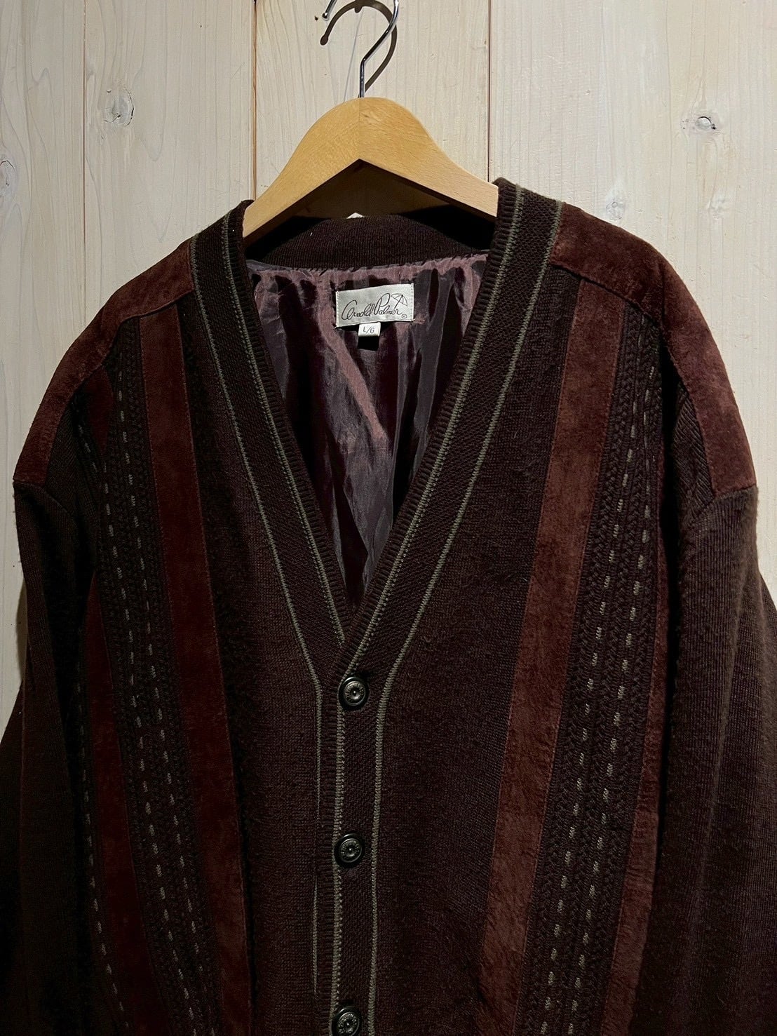 ニットボディにスエードレザーを巧みに切り替えたカーディガンジャケット。