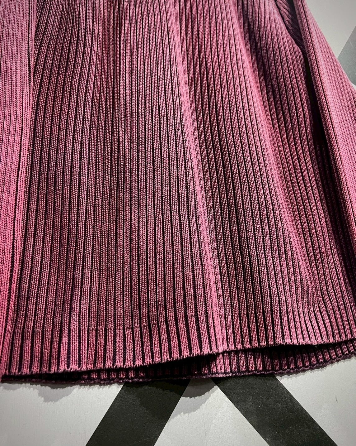 深みのあるパープルボディが目を惹く、存在感抜群のリブニット。