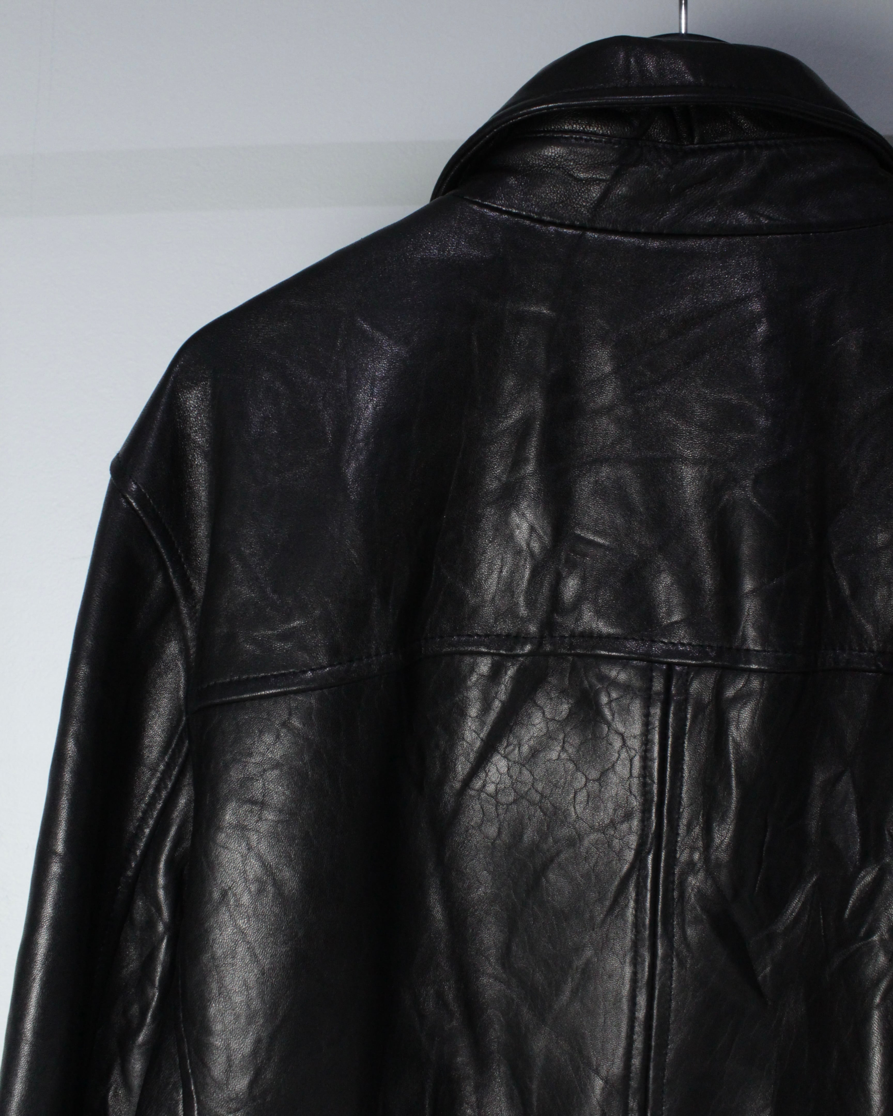 ボディにはリアルレザーを贅沢に使用し、艶やかで深みのあるブラックトーンが印象的。光沢とシワの入り方が非常に美しく、経年によって自然に生まれた表情が風合いを引き立てます。