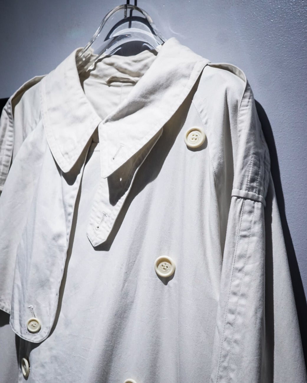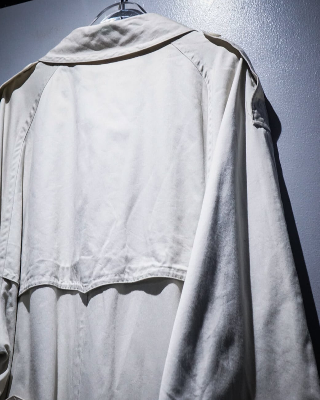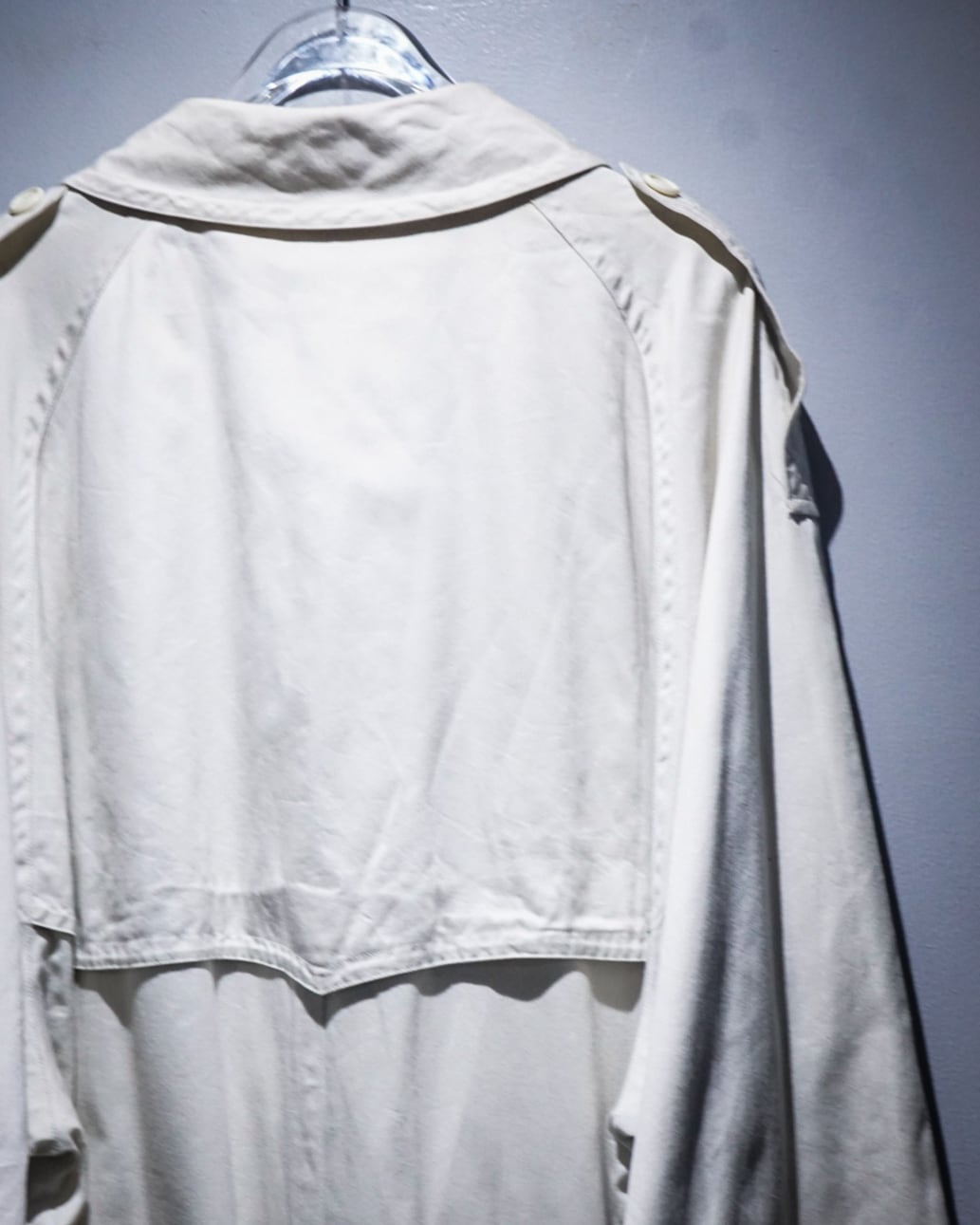 古着市場でも圧倒的に流通の少ない“白トレンチ”という稀少な存在であり、クリーンかつ品のある佇まいが際立つ1着です。