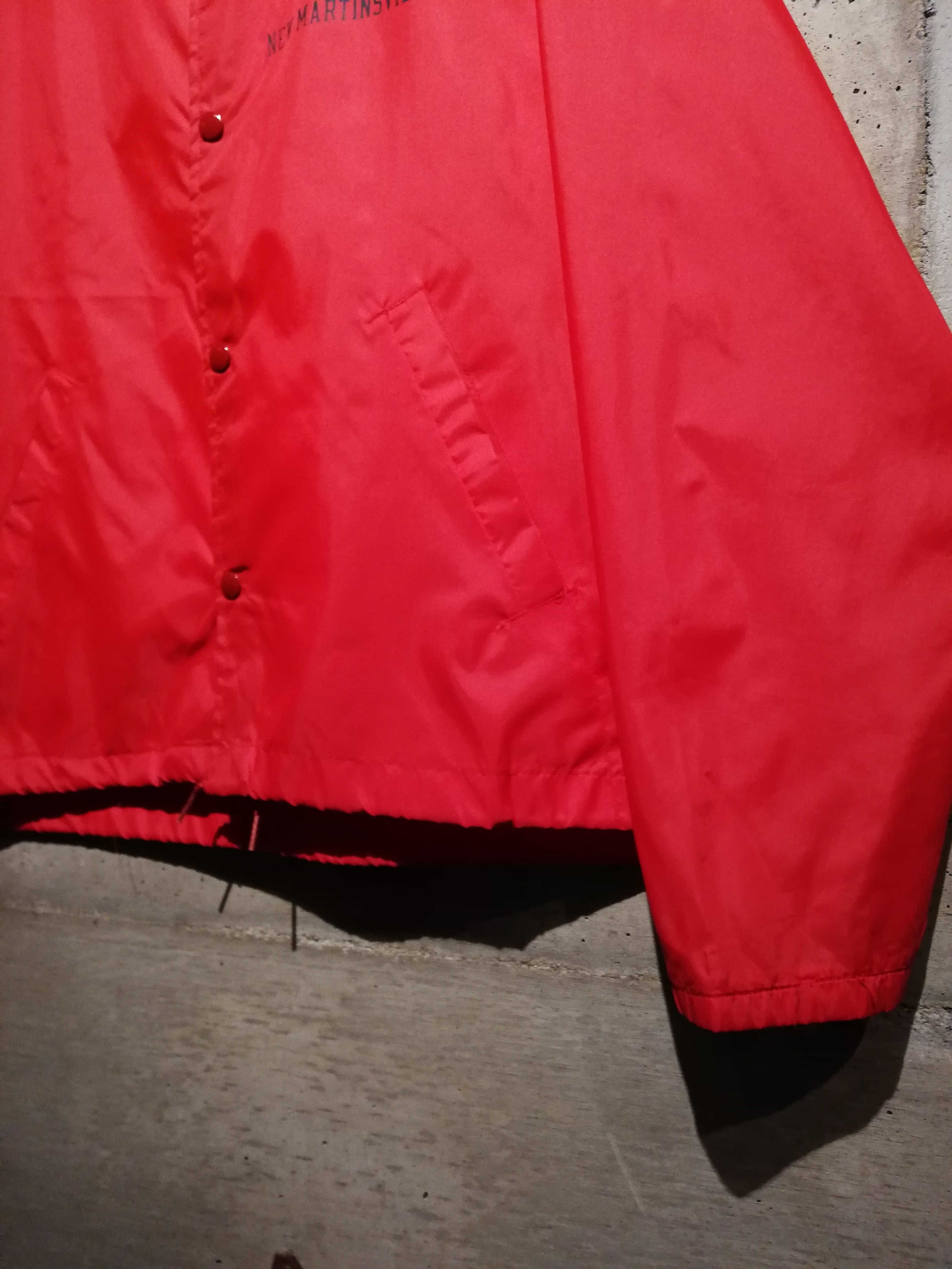 ボディは発色の良い赤のナイロンを採用し、軽量でありながらも独特のハリ感を持った質感。フロントにはスナップボタンを配た、コーチジャケットならではのオーセンティックな仕上がり。