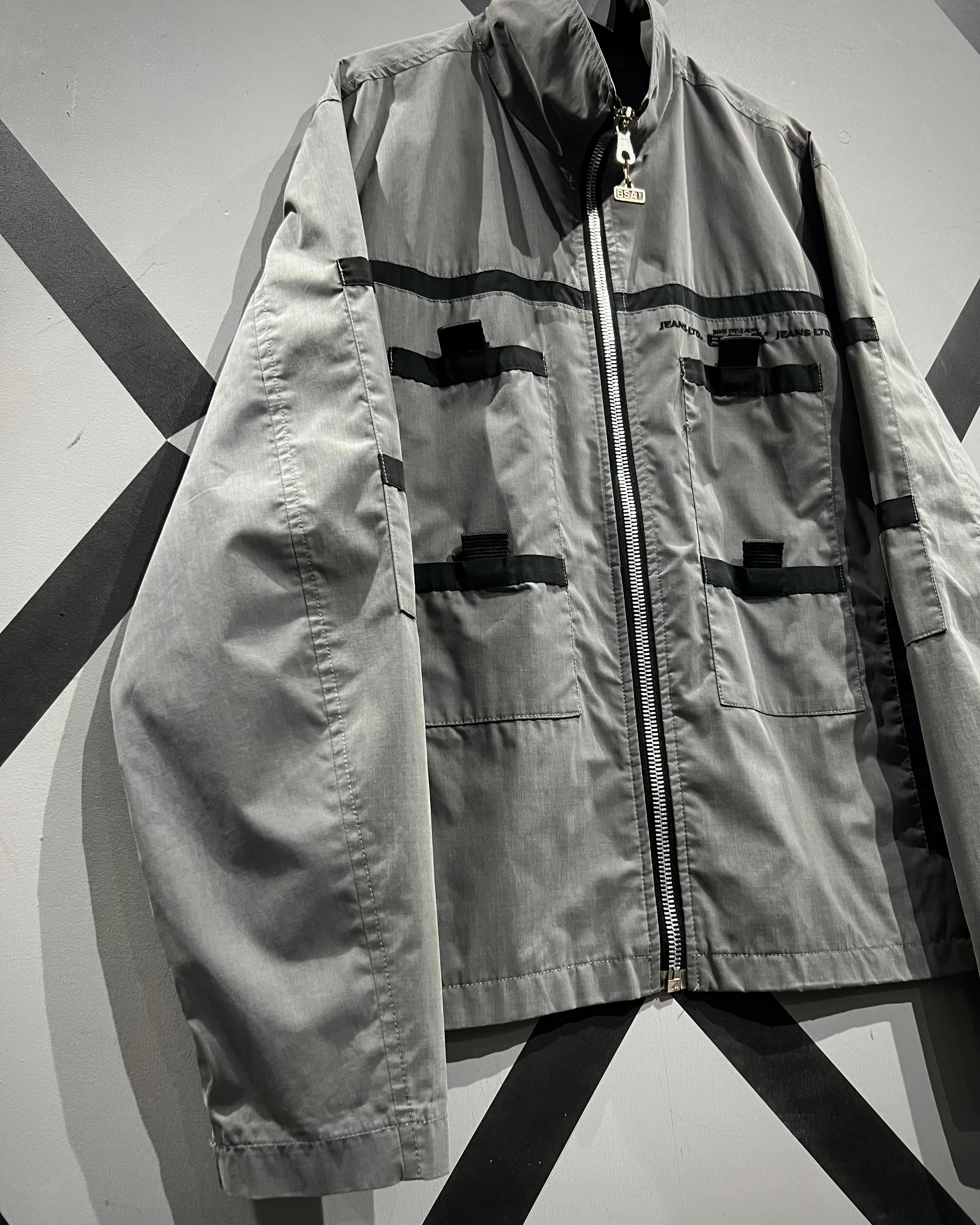 腕部にまで配置されたポケットや、ブラックのテープで構成されたディテールワークが秀逸。さりげなくも主張あるラインデザインが、立体感と奥行きを生み出しています。また、ジップには存在感のあるメタルパーツを採用し、無機質なグレーとのコントラストがより一層クールな印象を強めています。