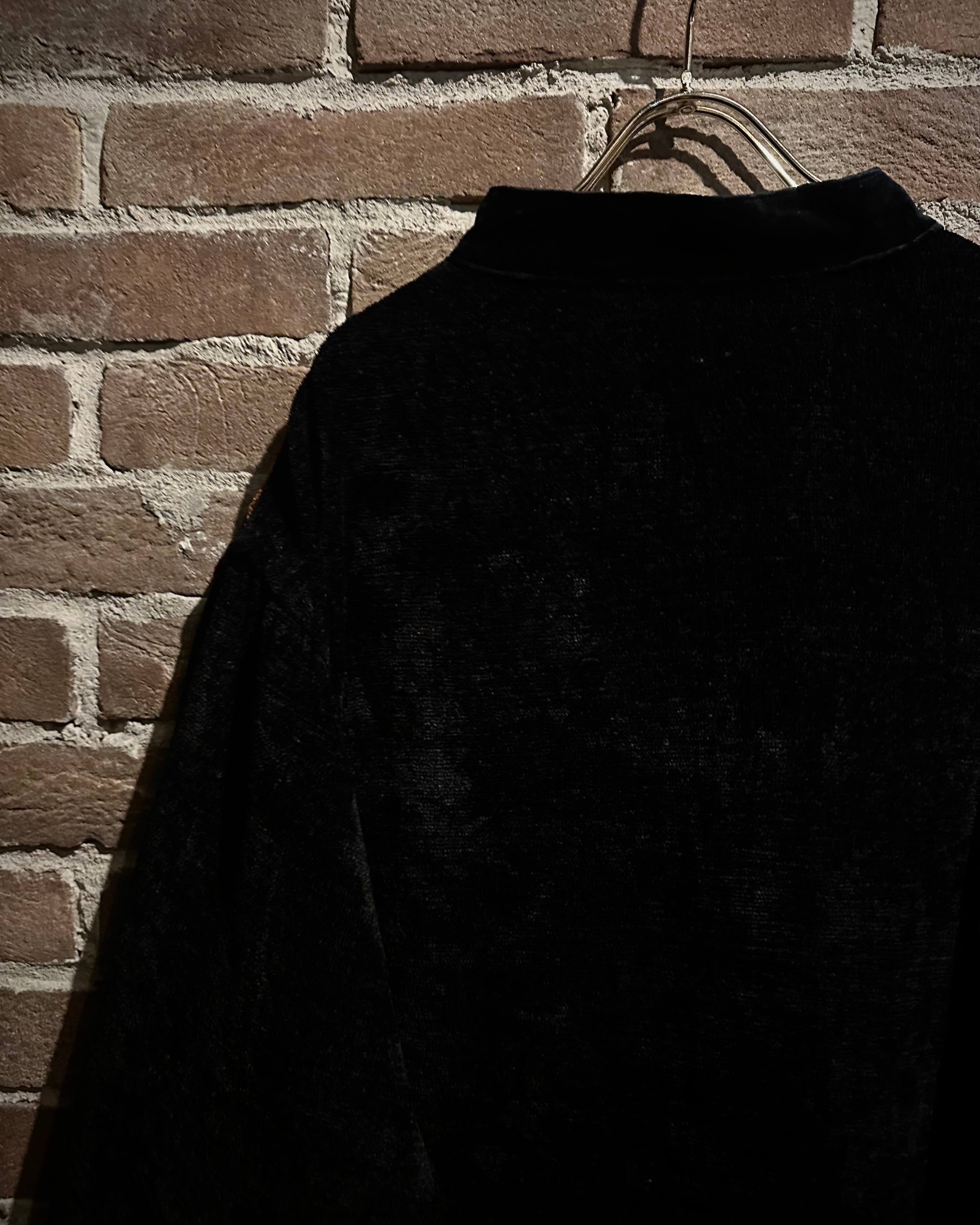 重厚感と艶を併せ持つベロアの深みある質感に、光の当たり方で陰影を生むシェニール、そして繊細な柄を織り込んだジャガードのパネルワークが見事に調和した1着です。