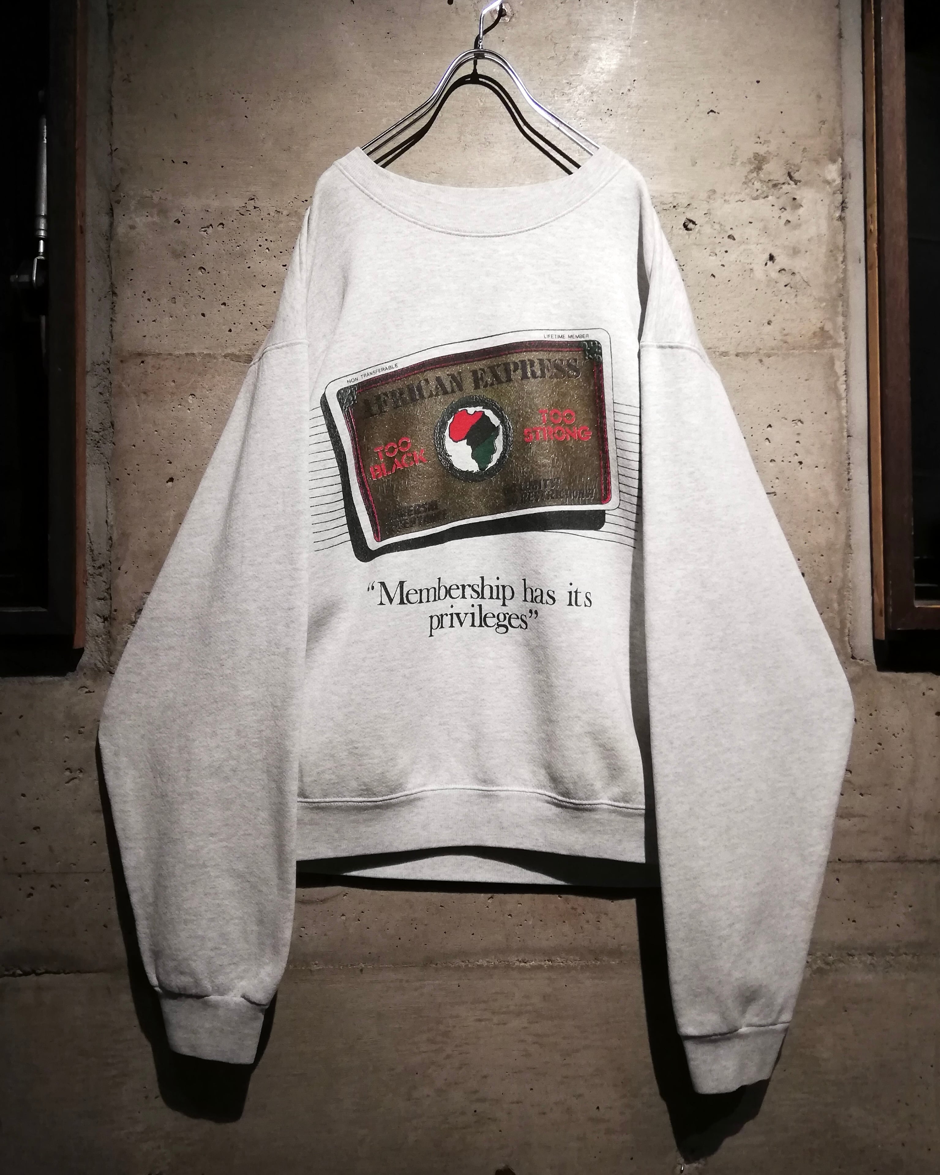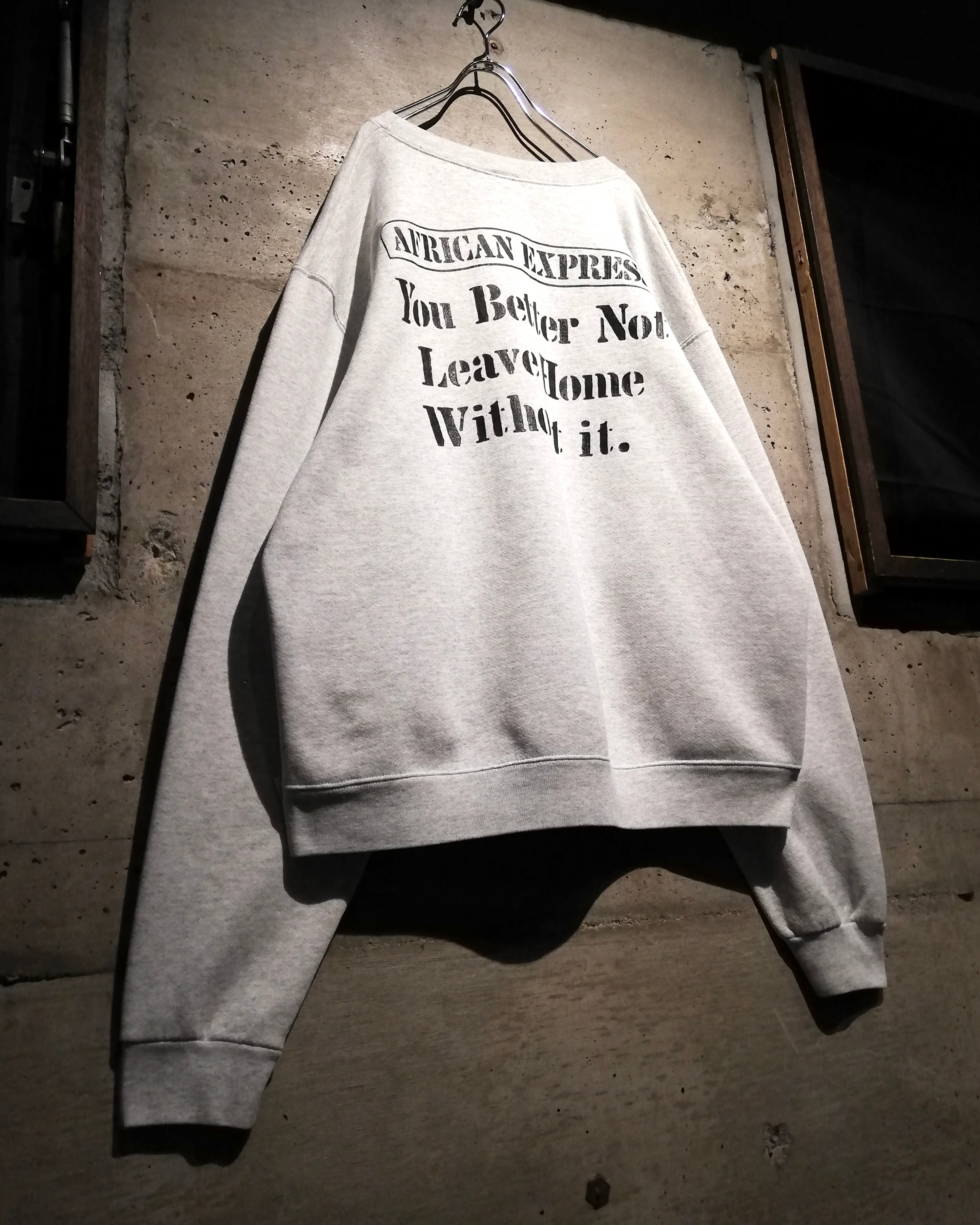 アメリカン・エキスプレスならぬ、“AFRICAN EXPRESS”のカードのグラフィックを載せた、ユーモラスかつカルチャー性を感じさせるスウェット。