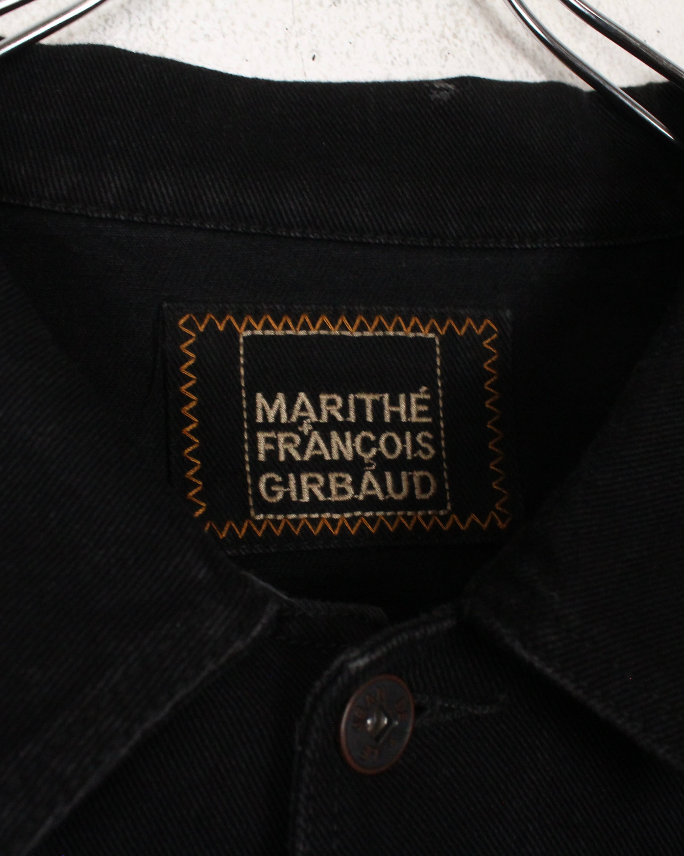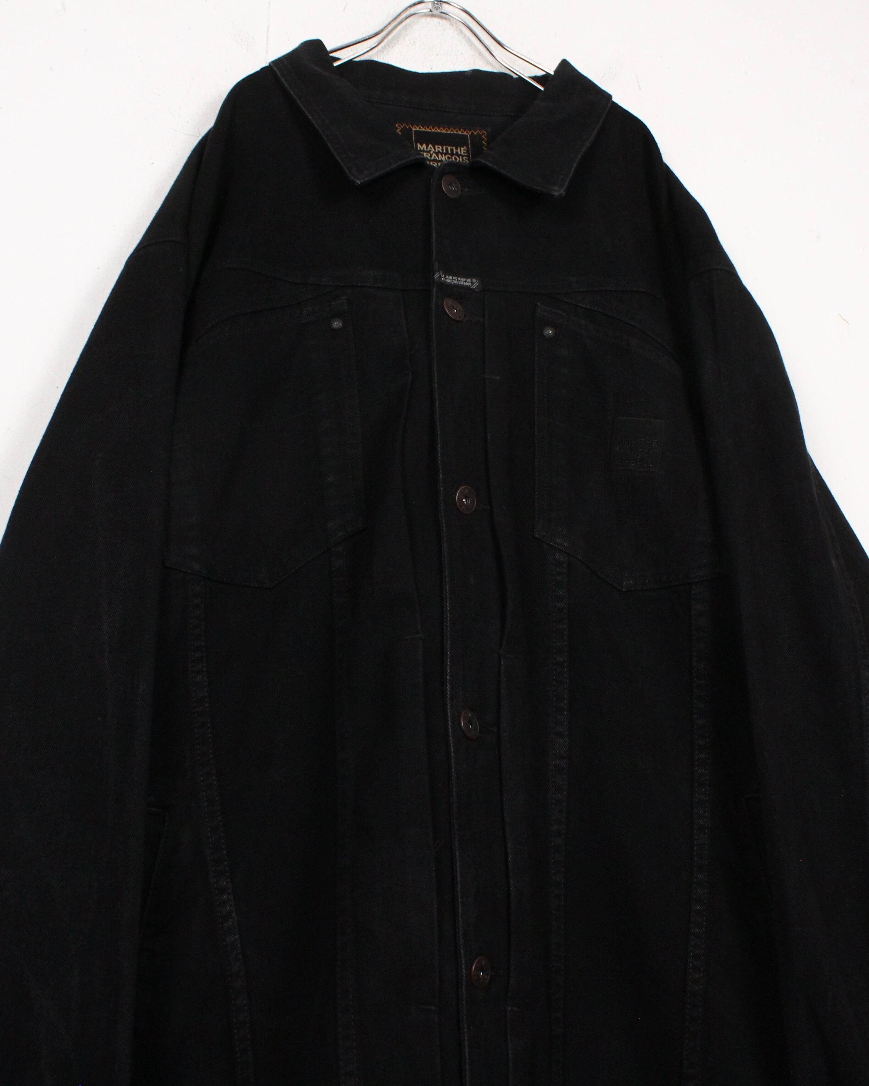 "MARITHE FRANCOIS GIRBAUD"のアーカイブの中でも稀少なブラックデニム仕様。デザイン、シルエット、素材感のすべてが高次元でまとまった、ブランドの哲学を感じられるスペシャルなデニムジャケットです。